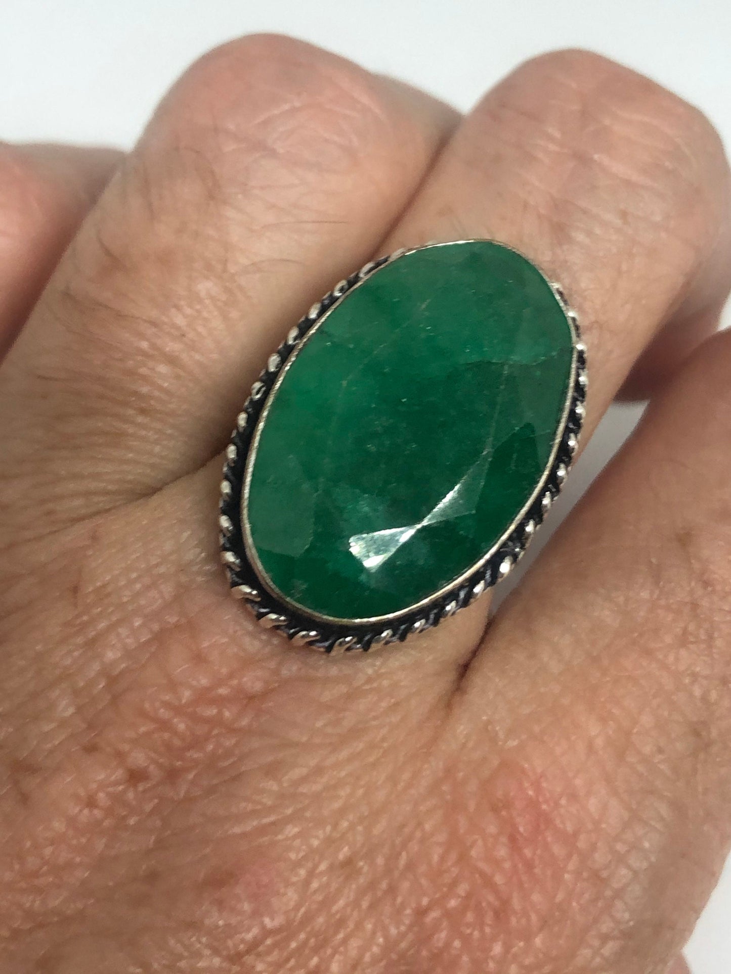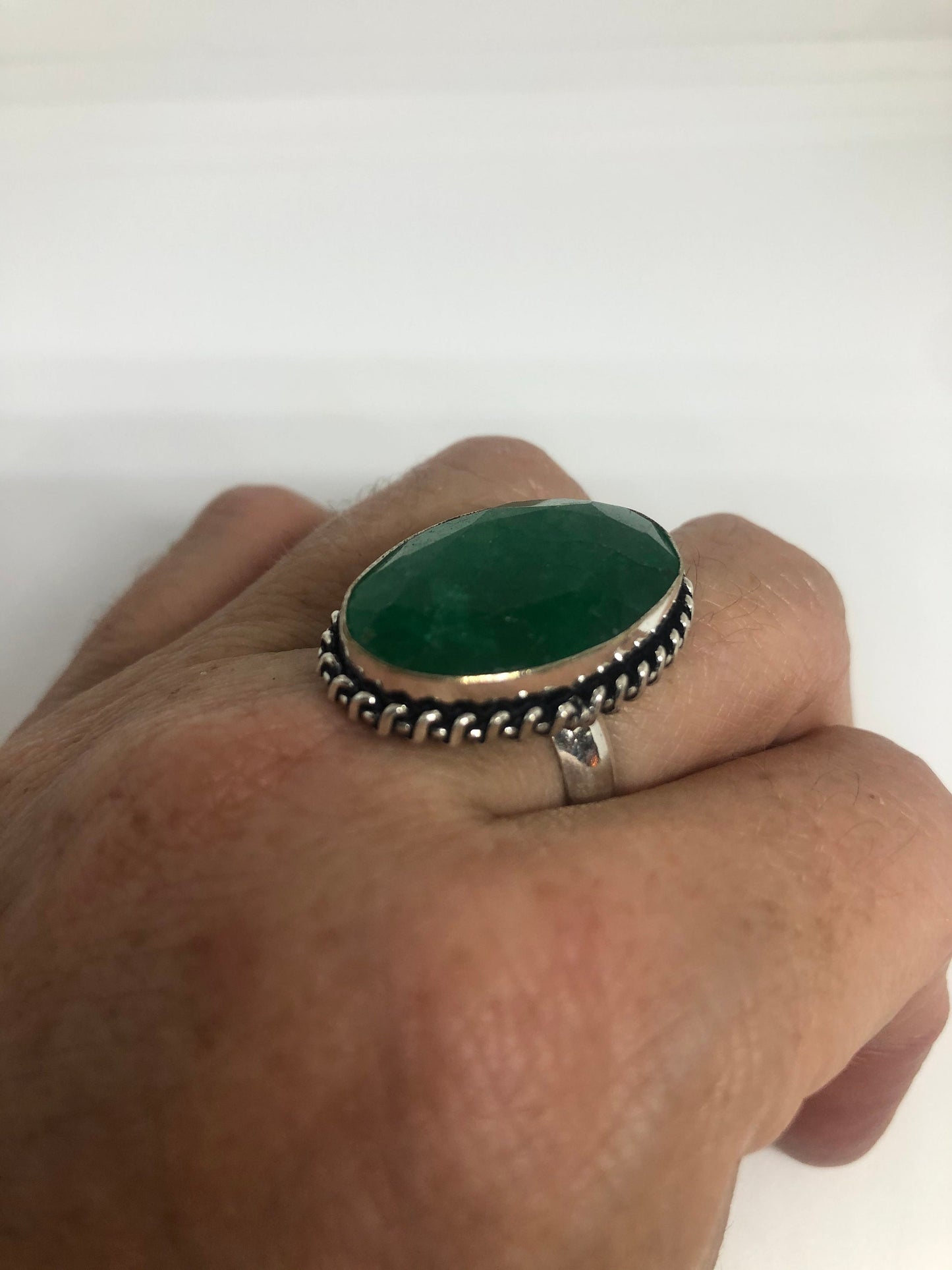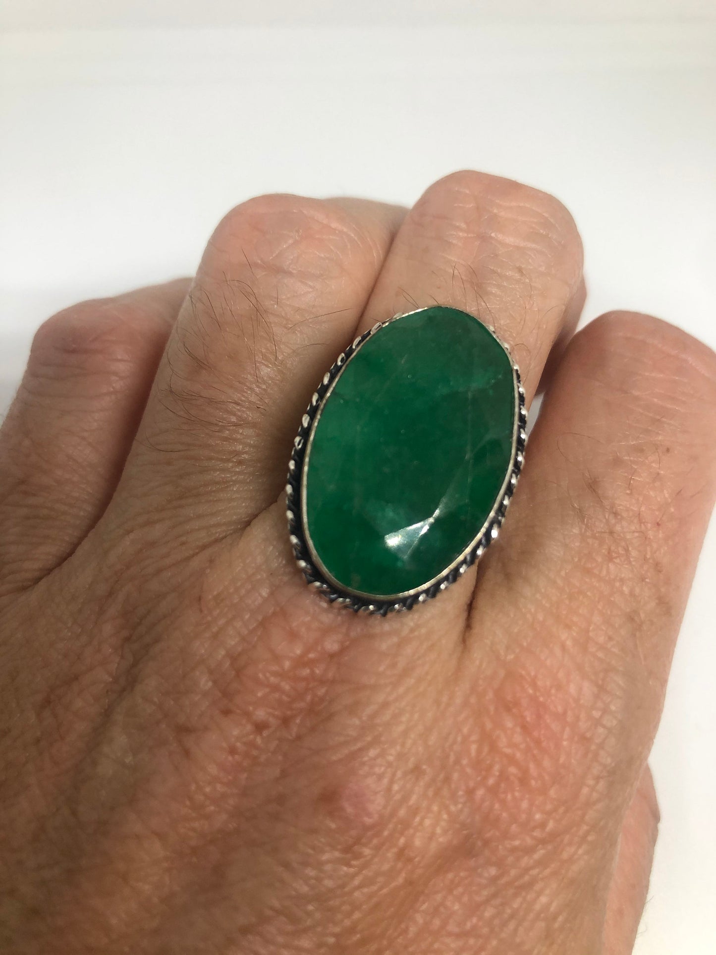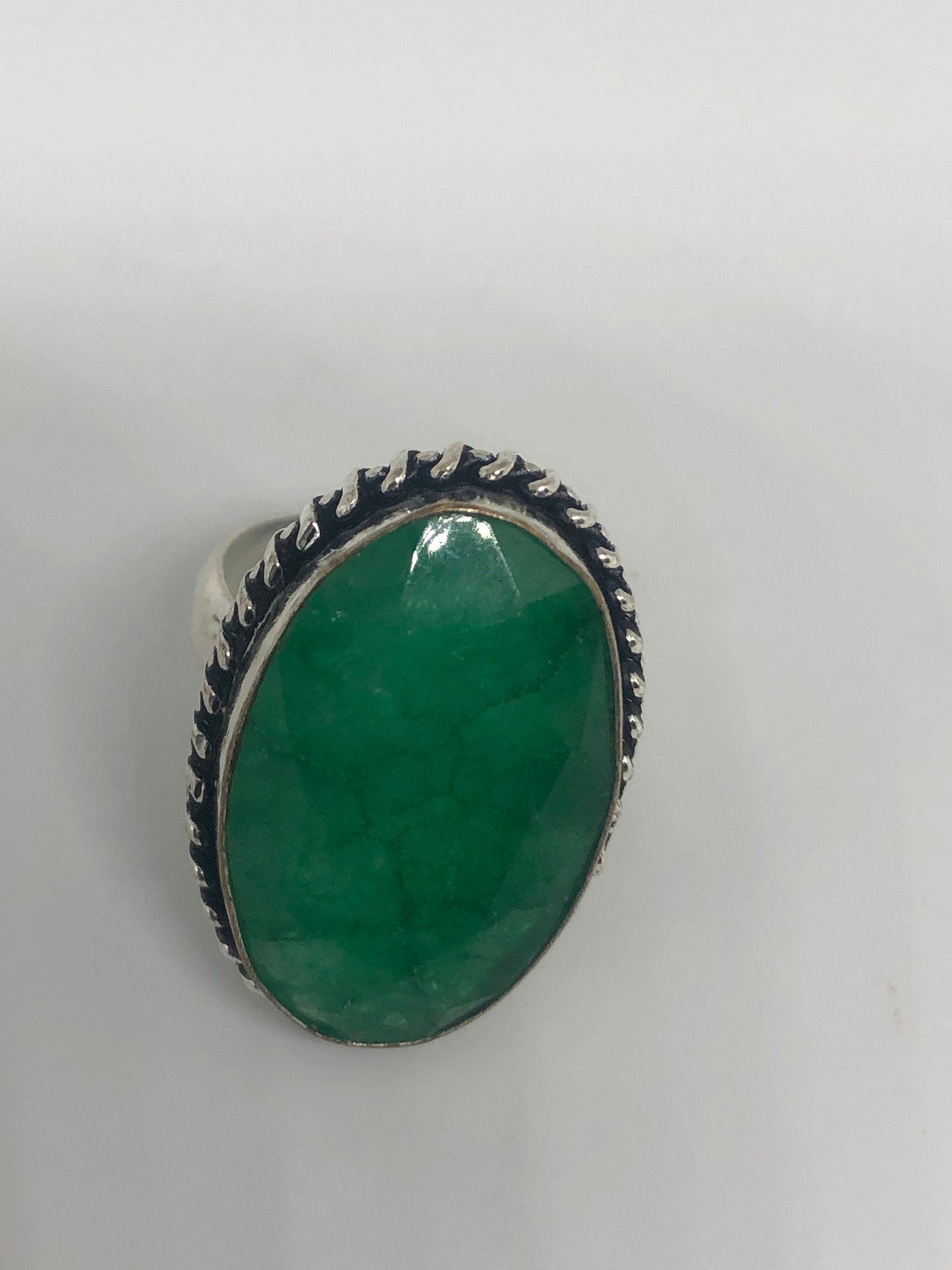 Vintage Green Raw Emerald Silver Bronze Statement Boho Ring