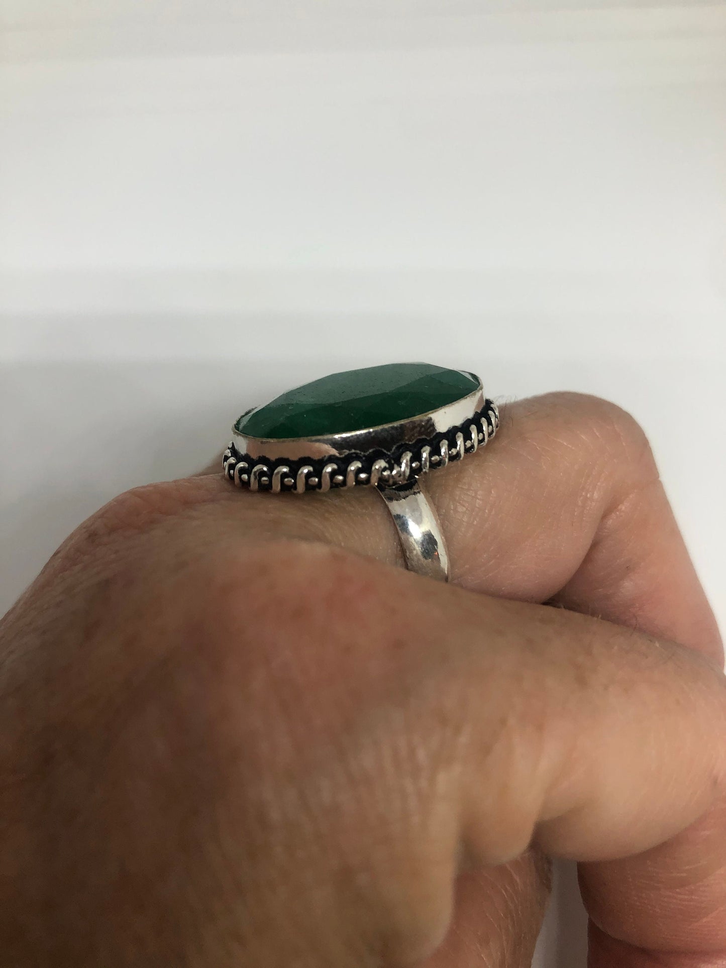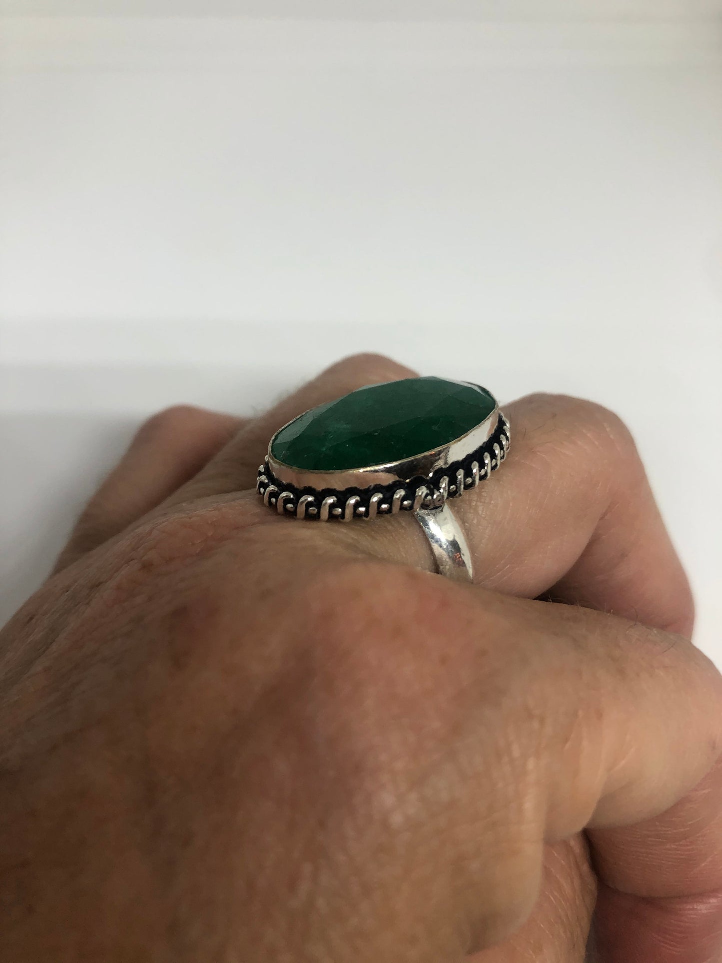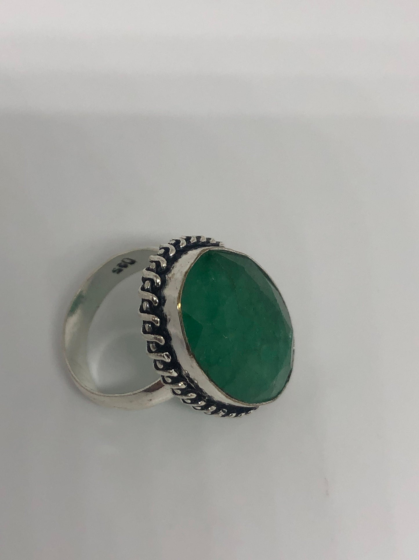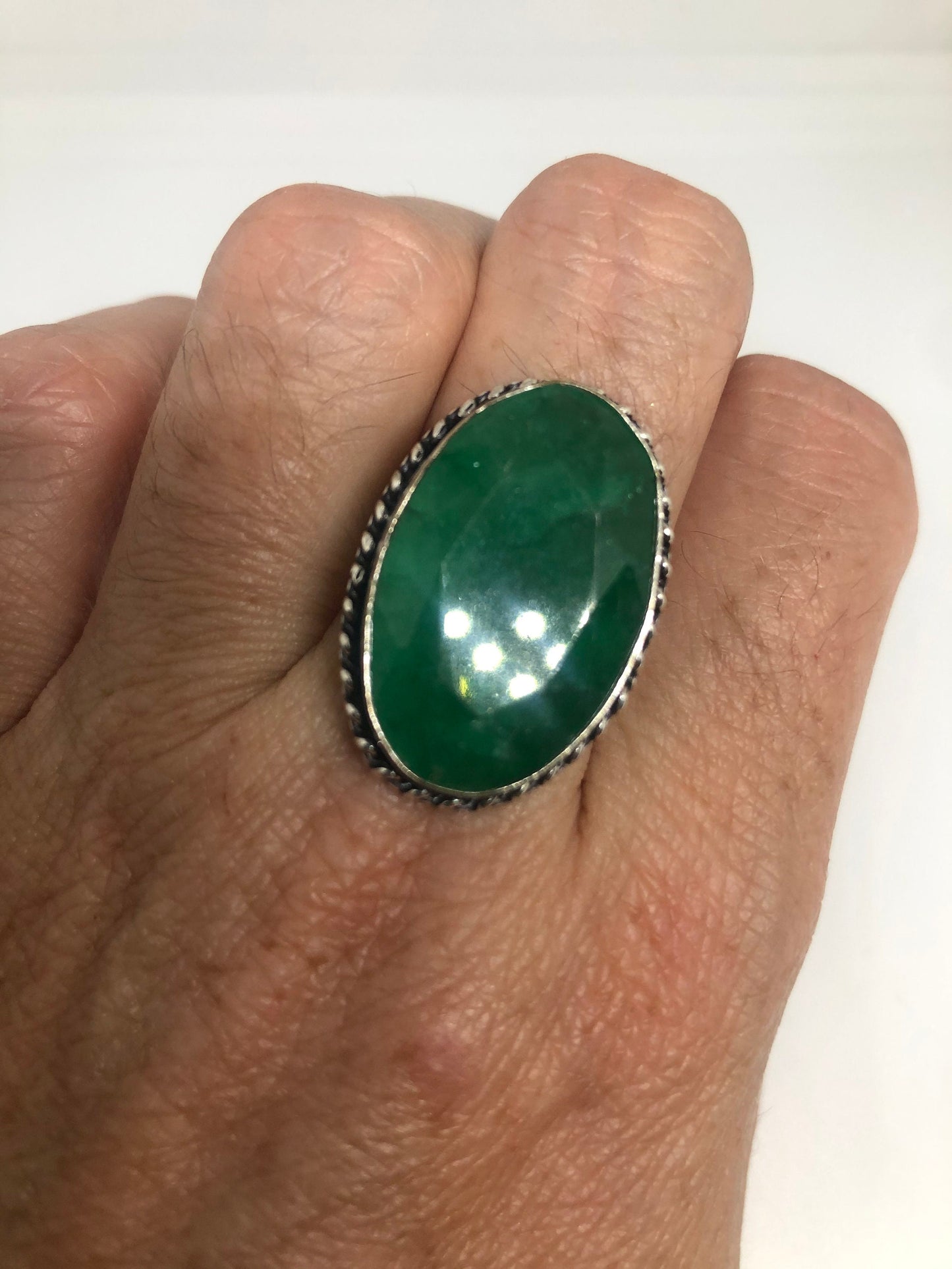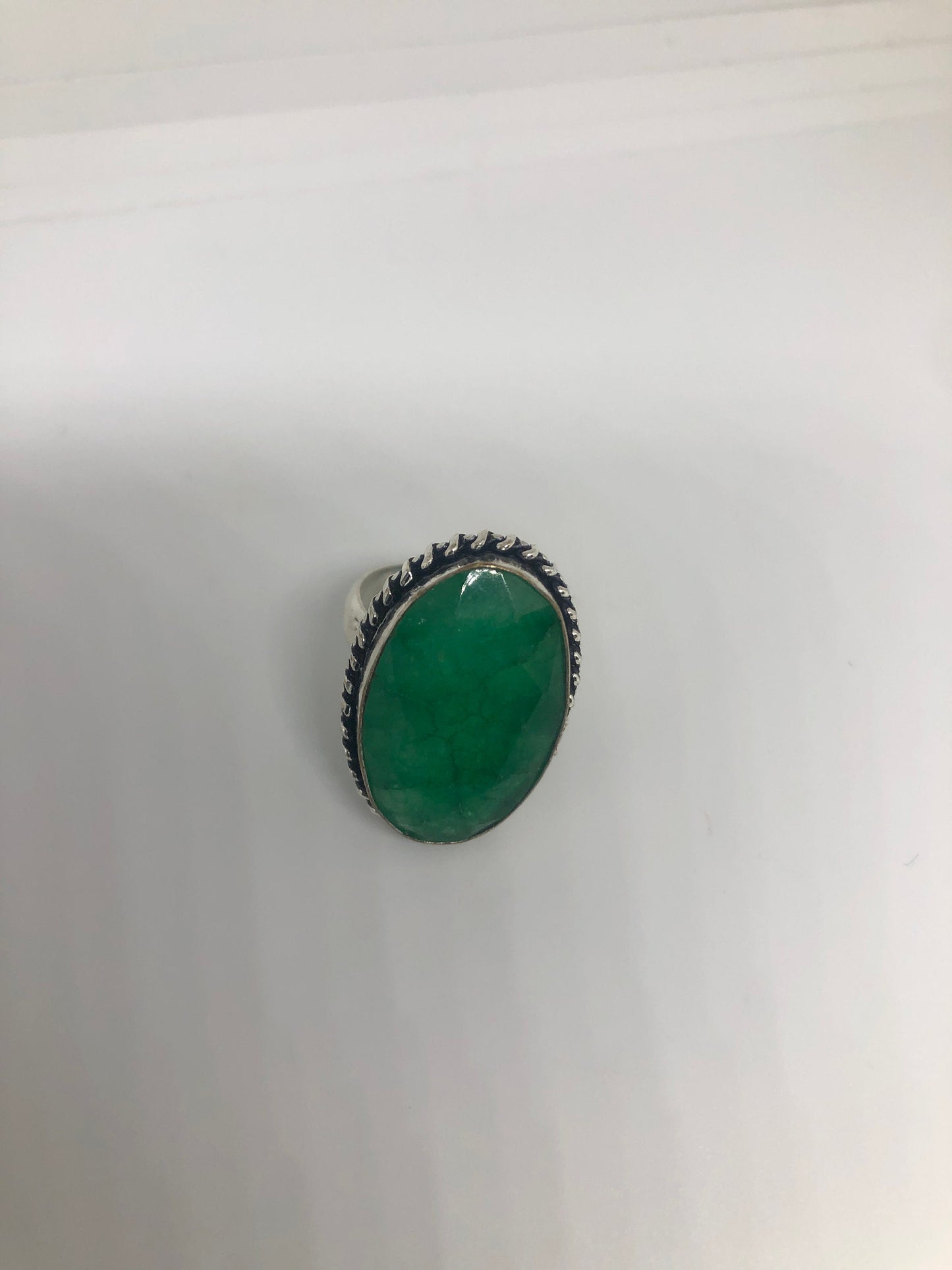 Vintage Green Raw Emerald Silver Bronze Statement Boho Ring