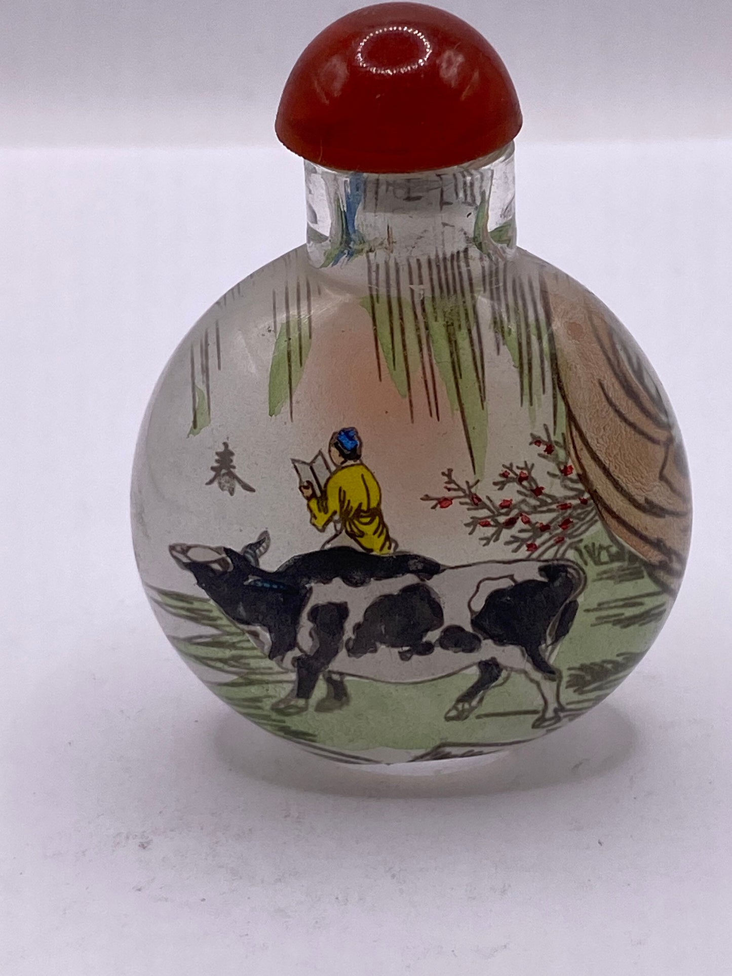 Vintage Hand Painted Glass Bottle Snuff Perfume Flask