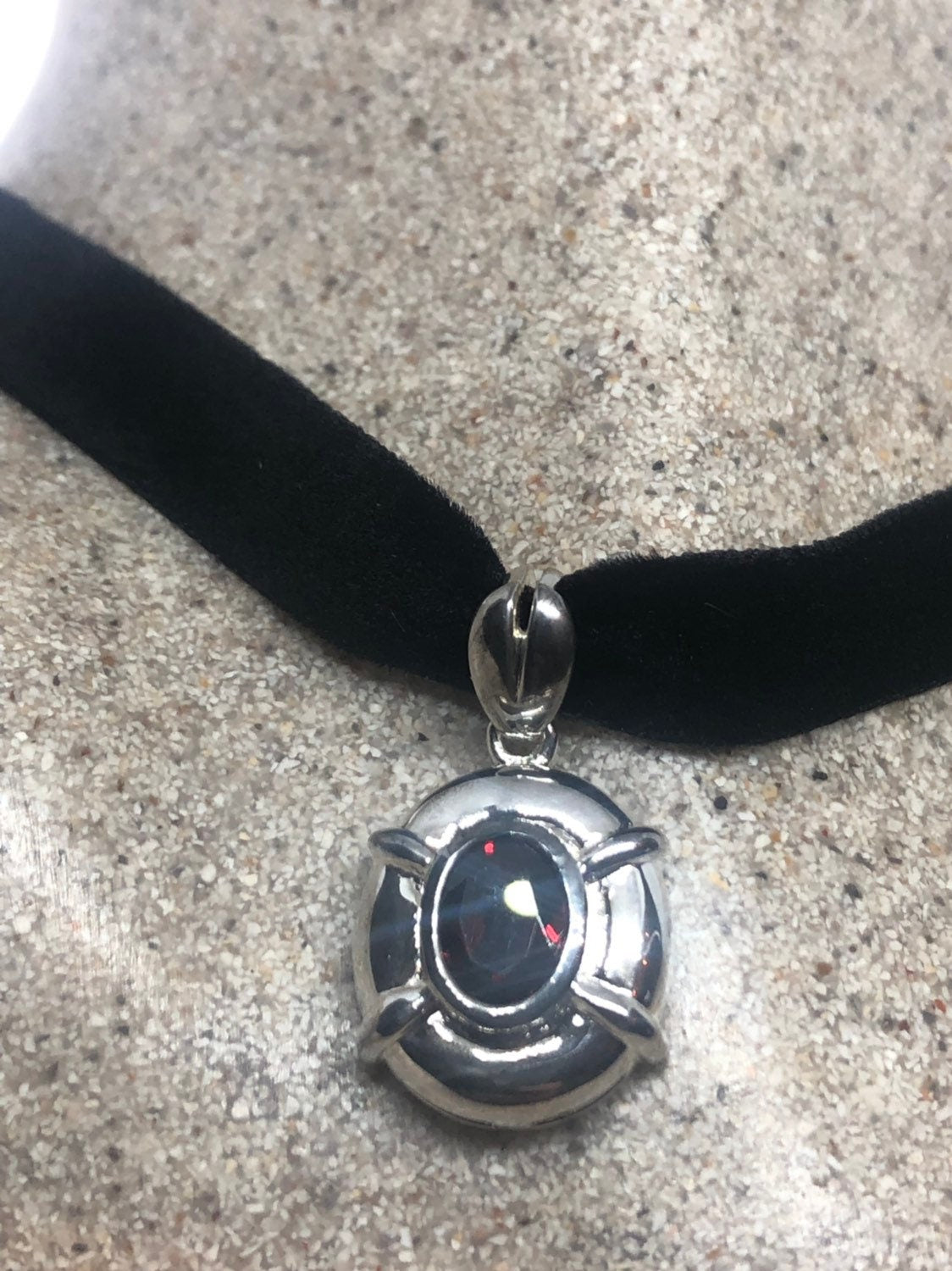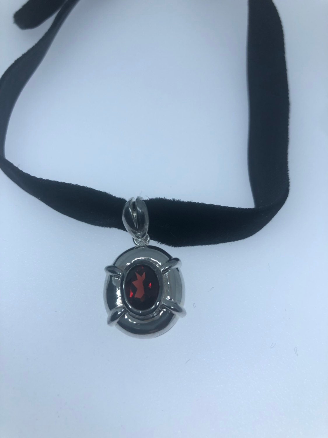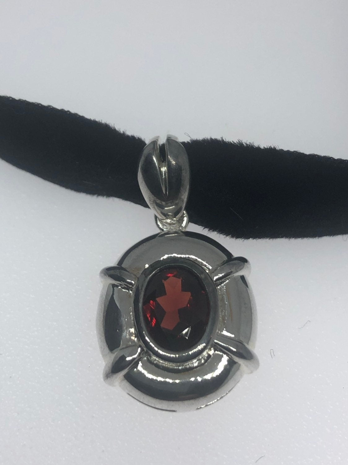 Vintage Handmade 925 Sterling Silver Genuine Garnet Antique Pendant Necklace