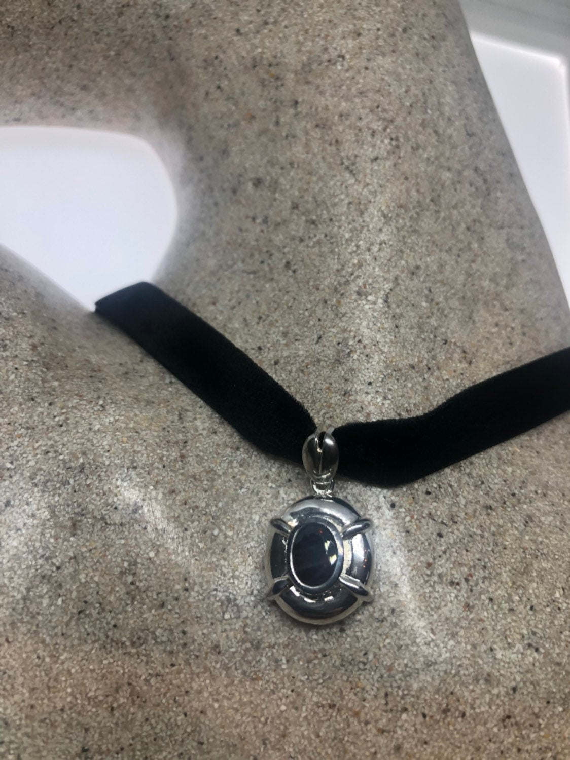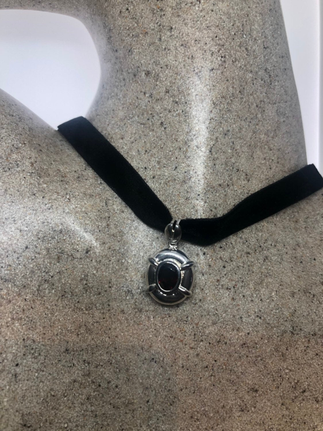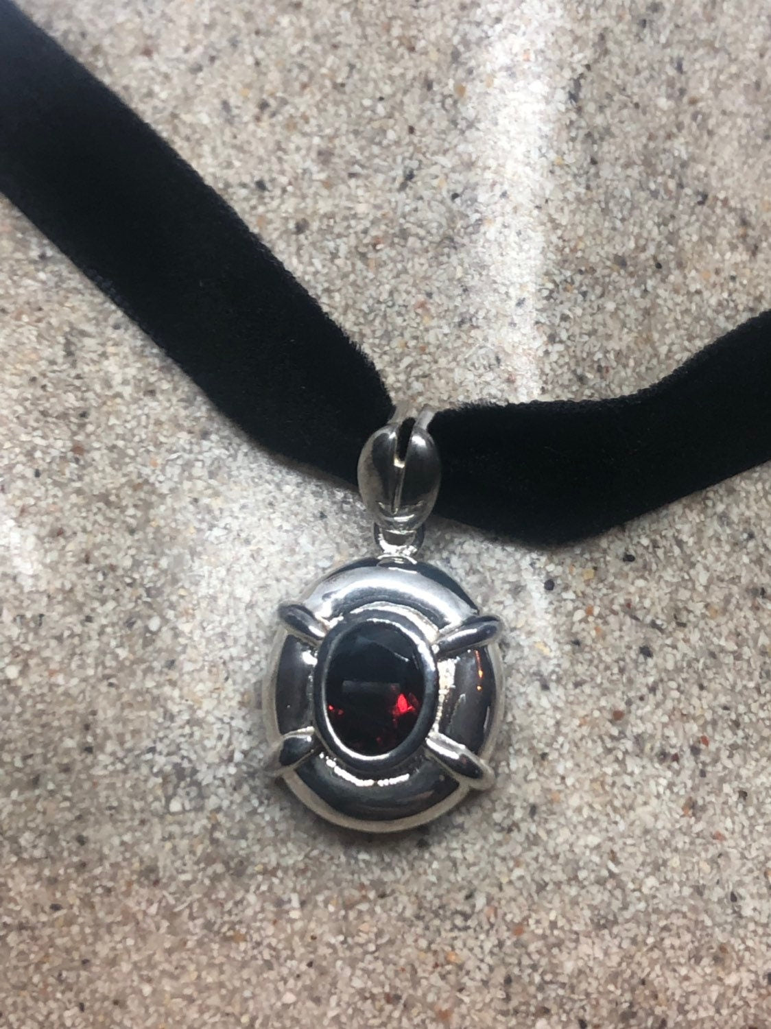 Vintage Handmade 925 Sterling Silver Genuine Garnet Antique Pendant Necklace