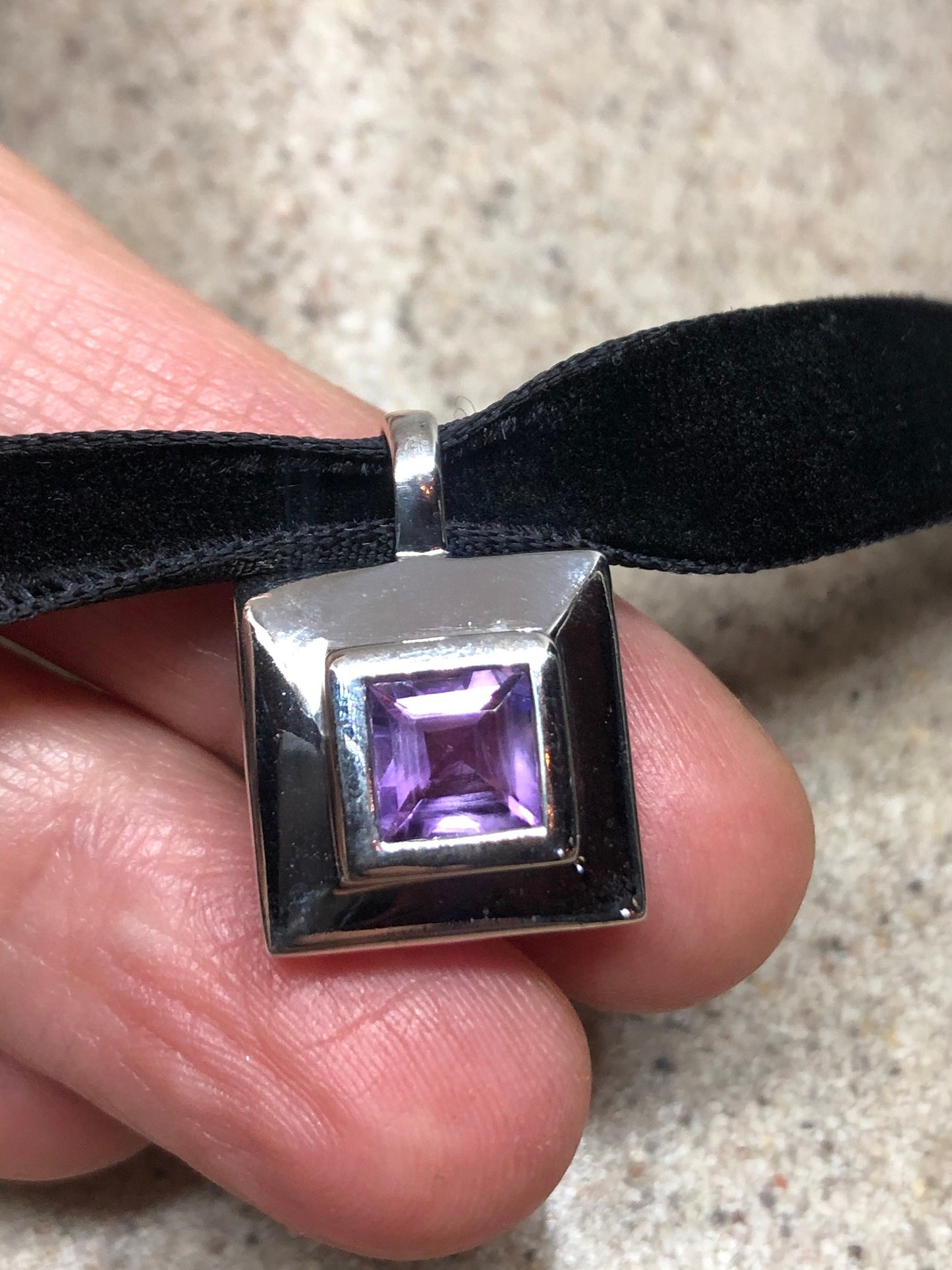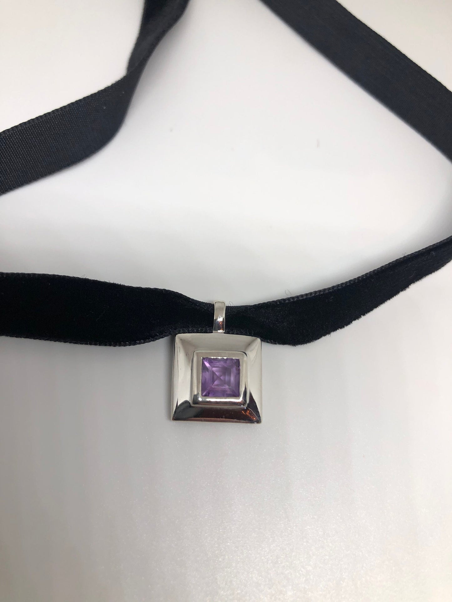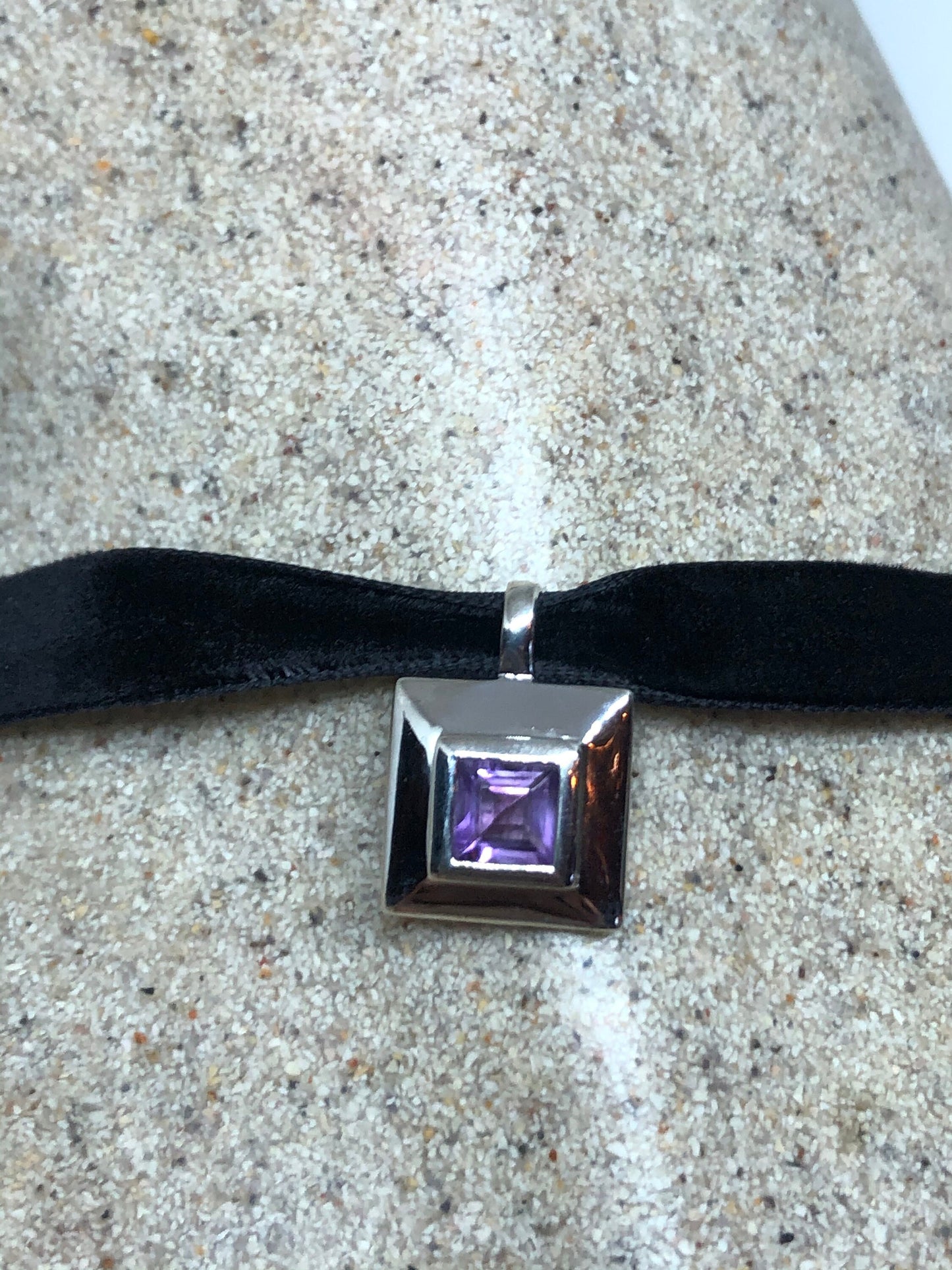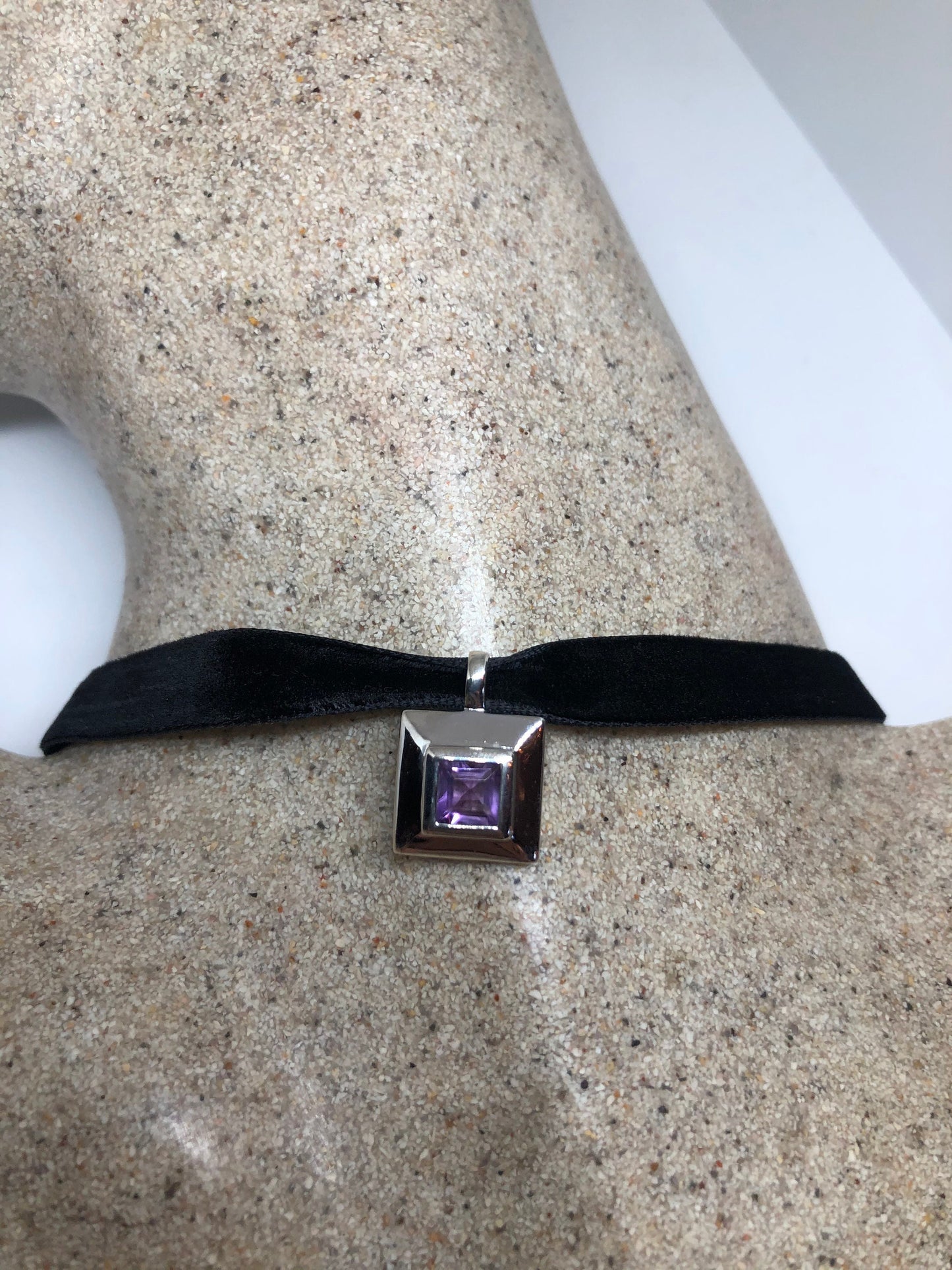 Vintage Handmade 925 Sterling Silver Genuine Amethyst Choker Antique Pendant Necklace