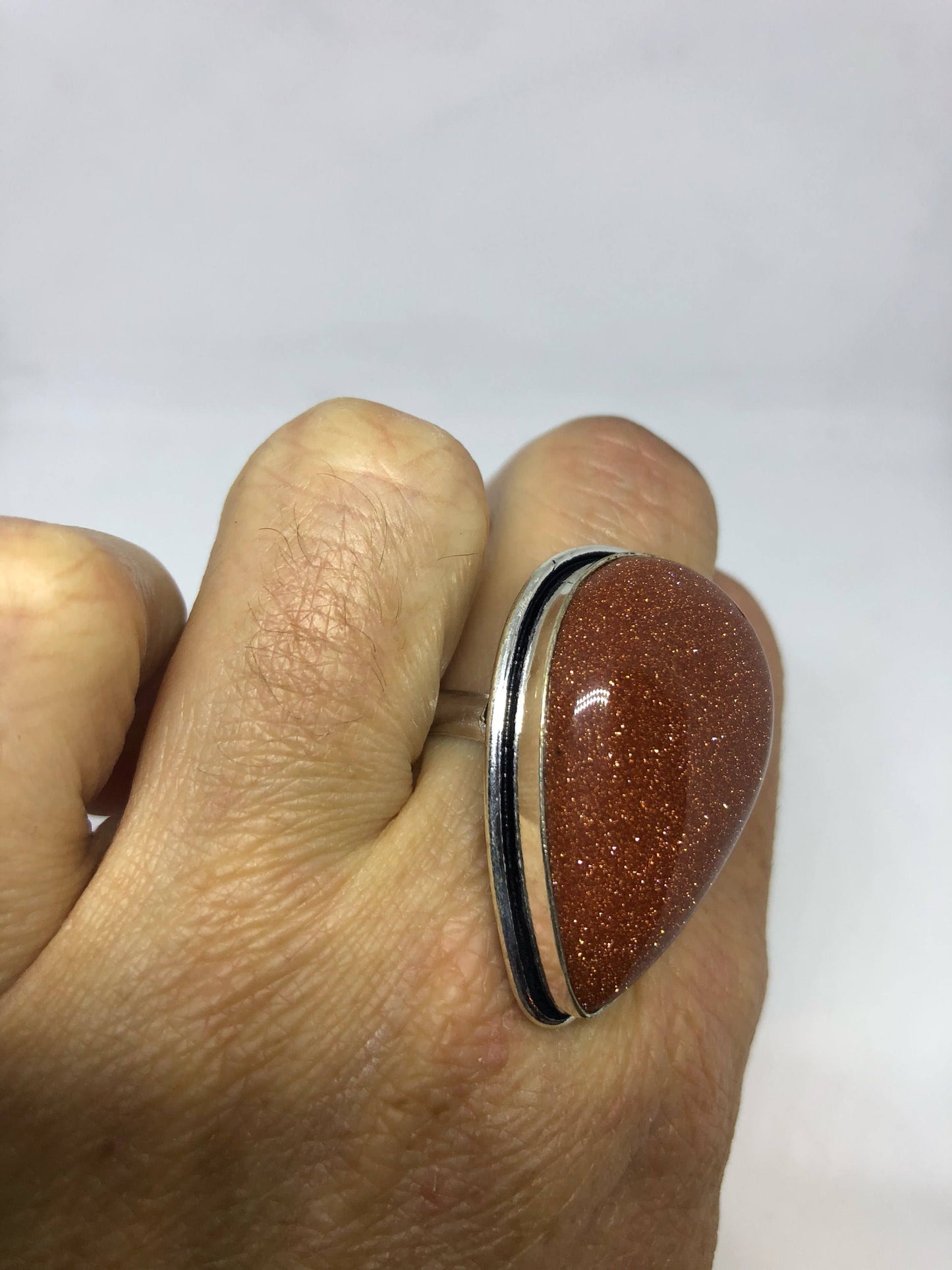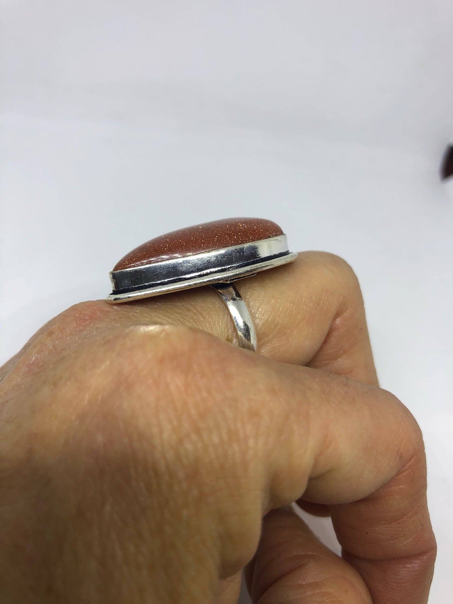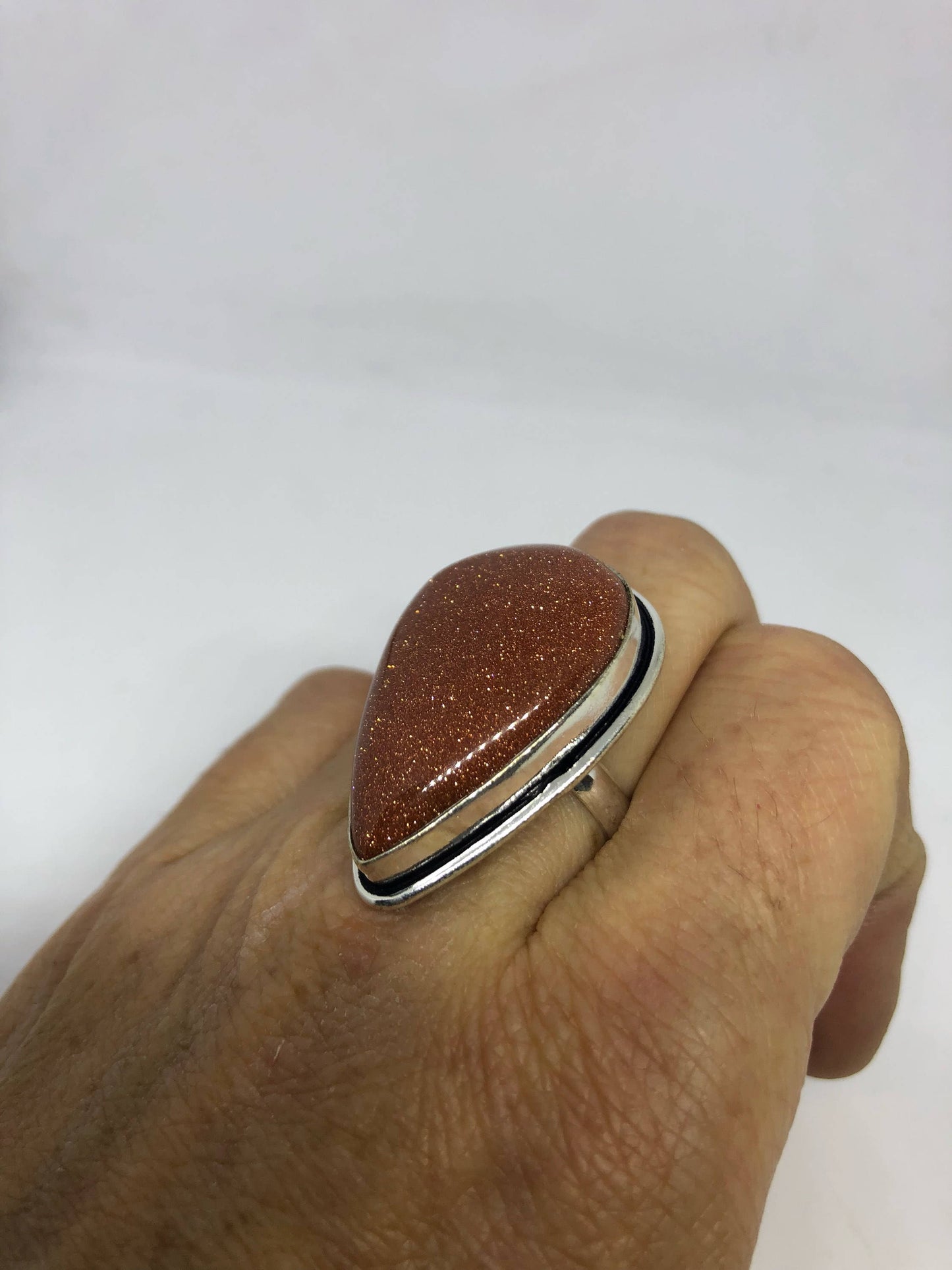Vintage Handmade Deep Gold Sandstone Setting Silver Ring