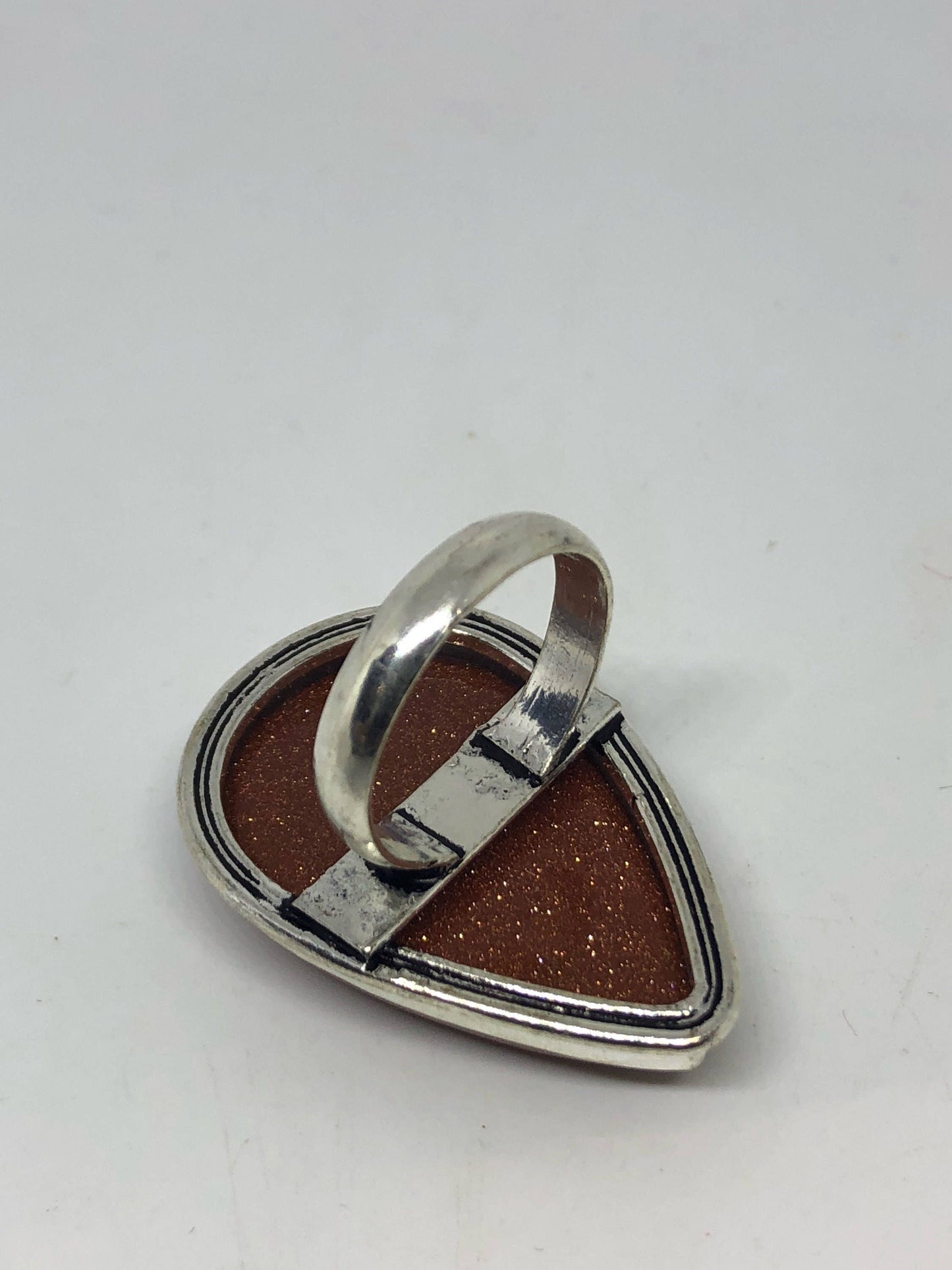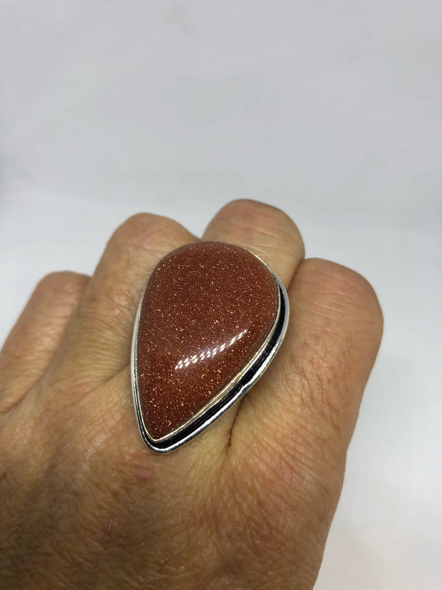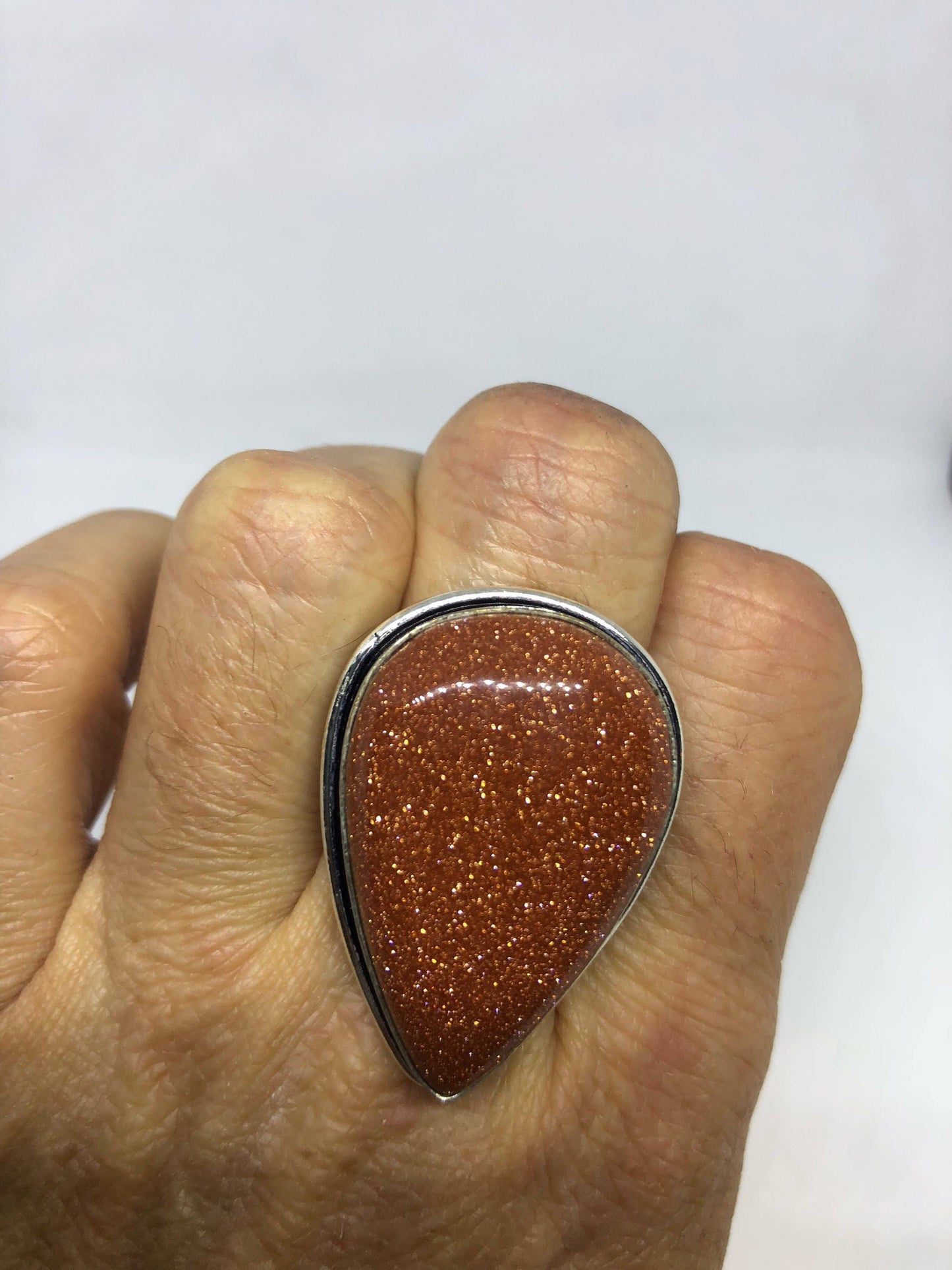 Vintage Handmade Deep Gold Sandstone Setting Silver Ring