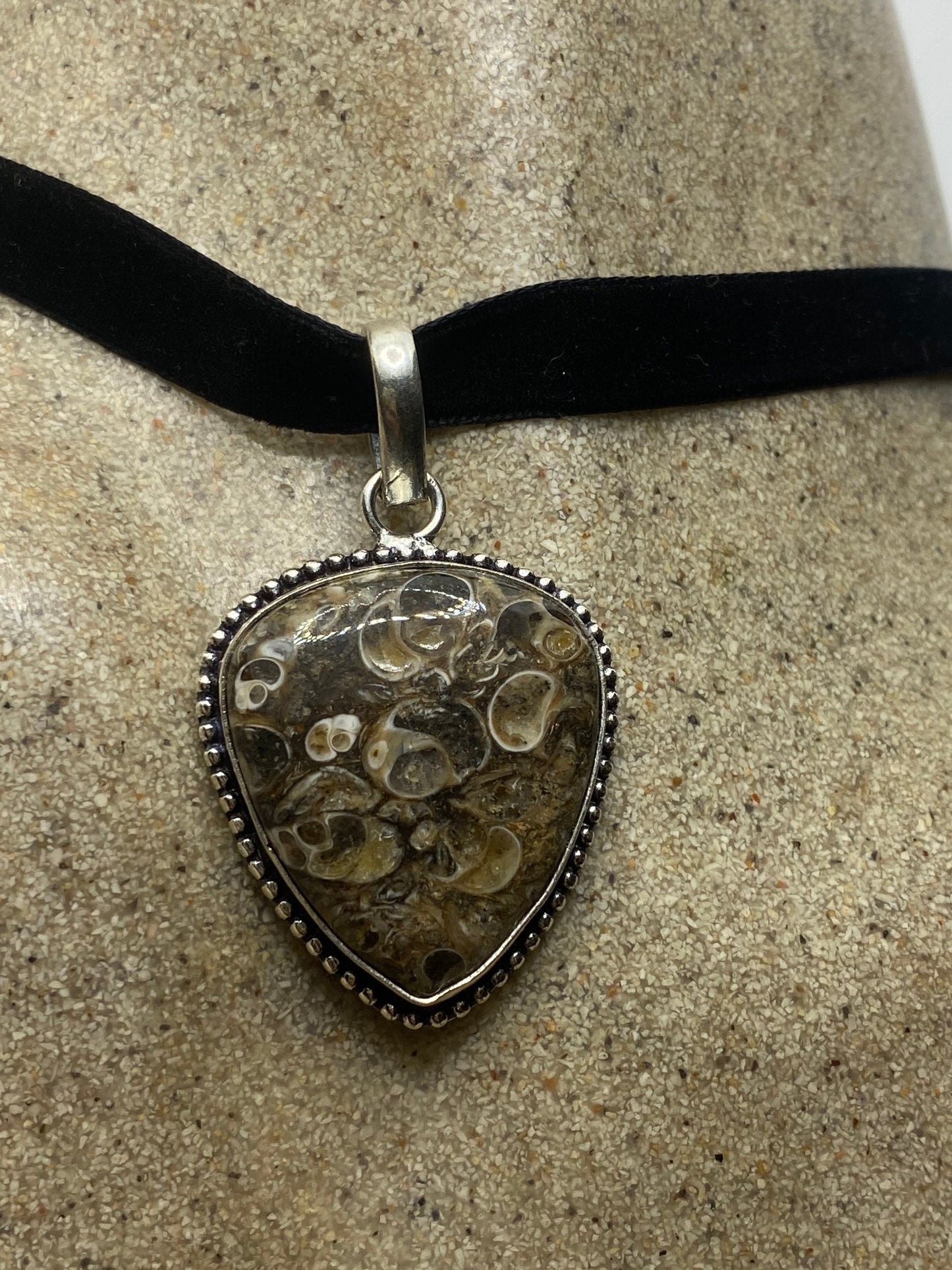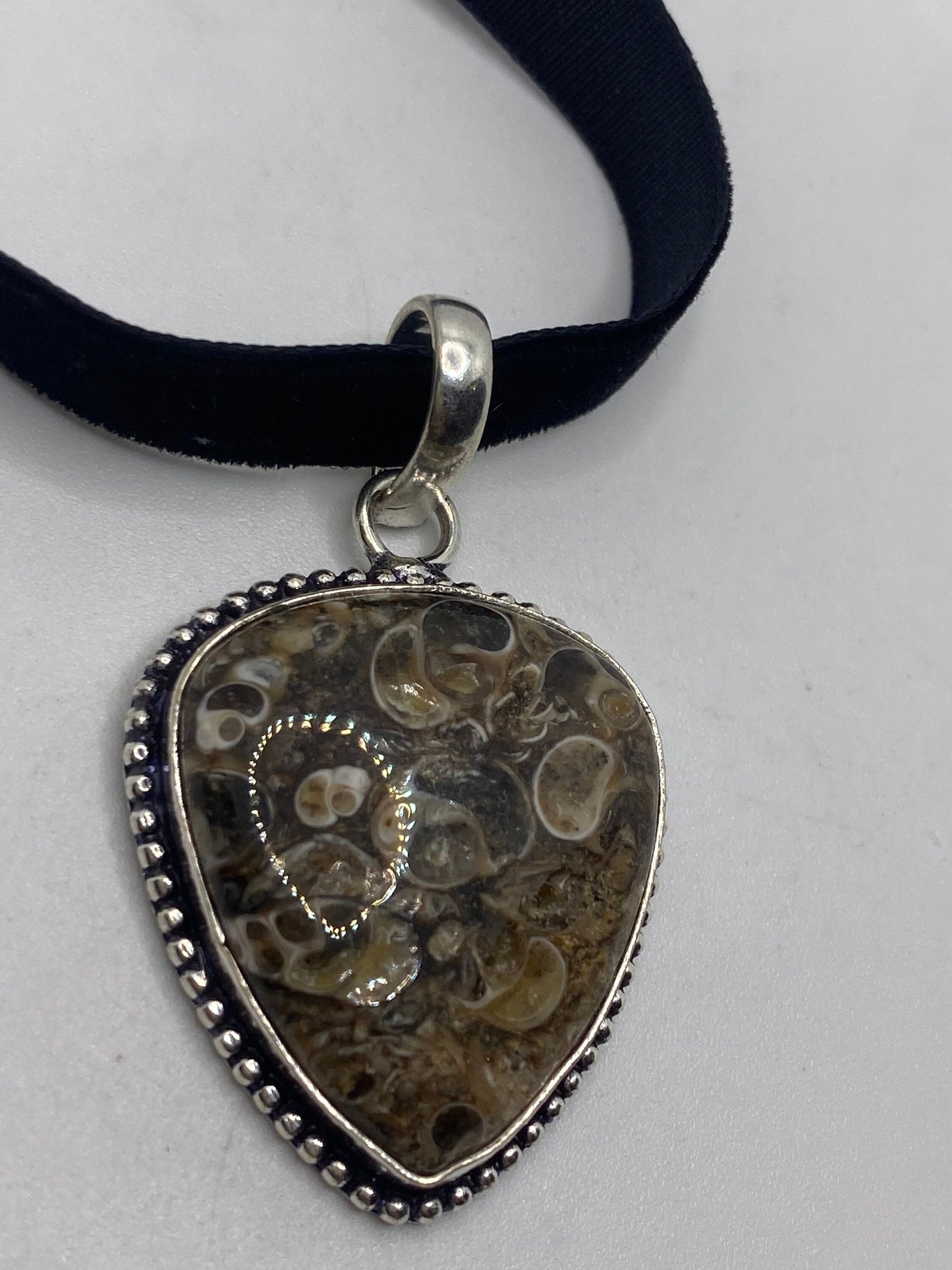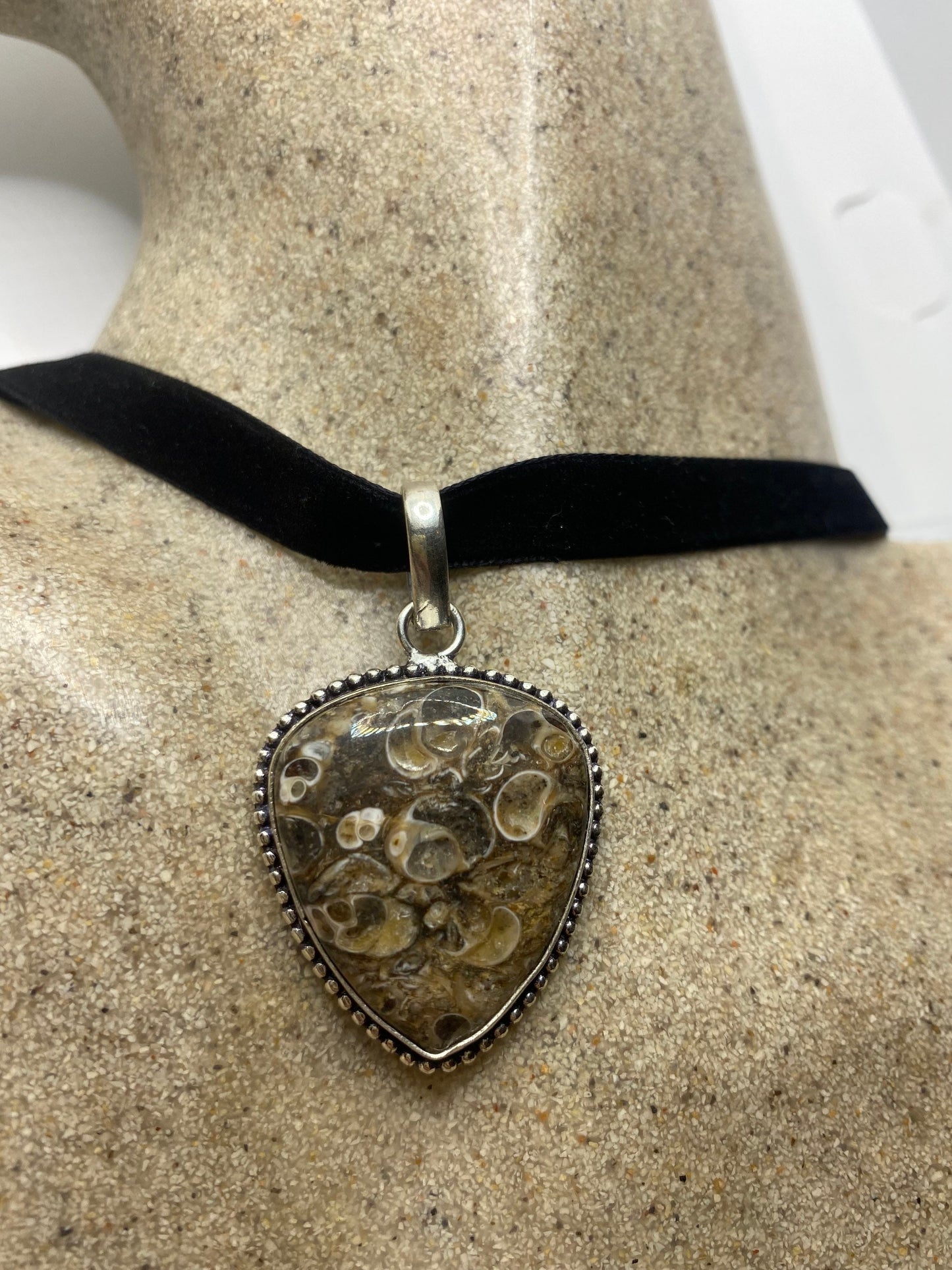 Vintage Handmade Genuine Fossil agate choker Pendant Necklace