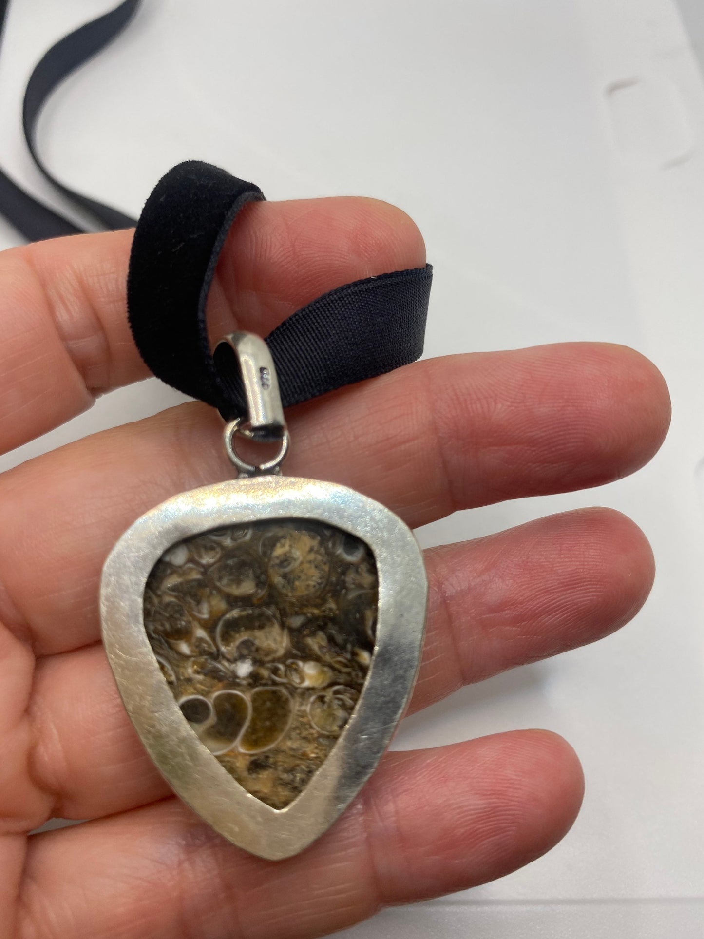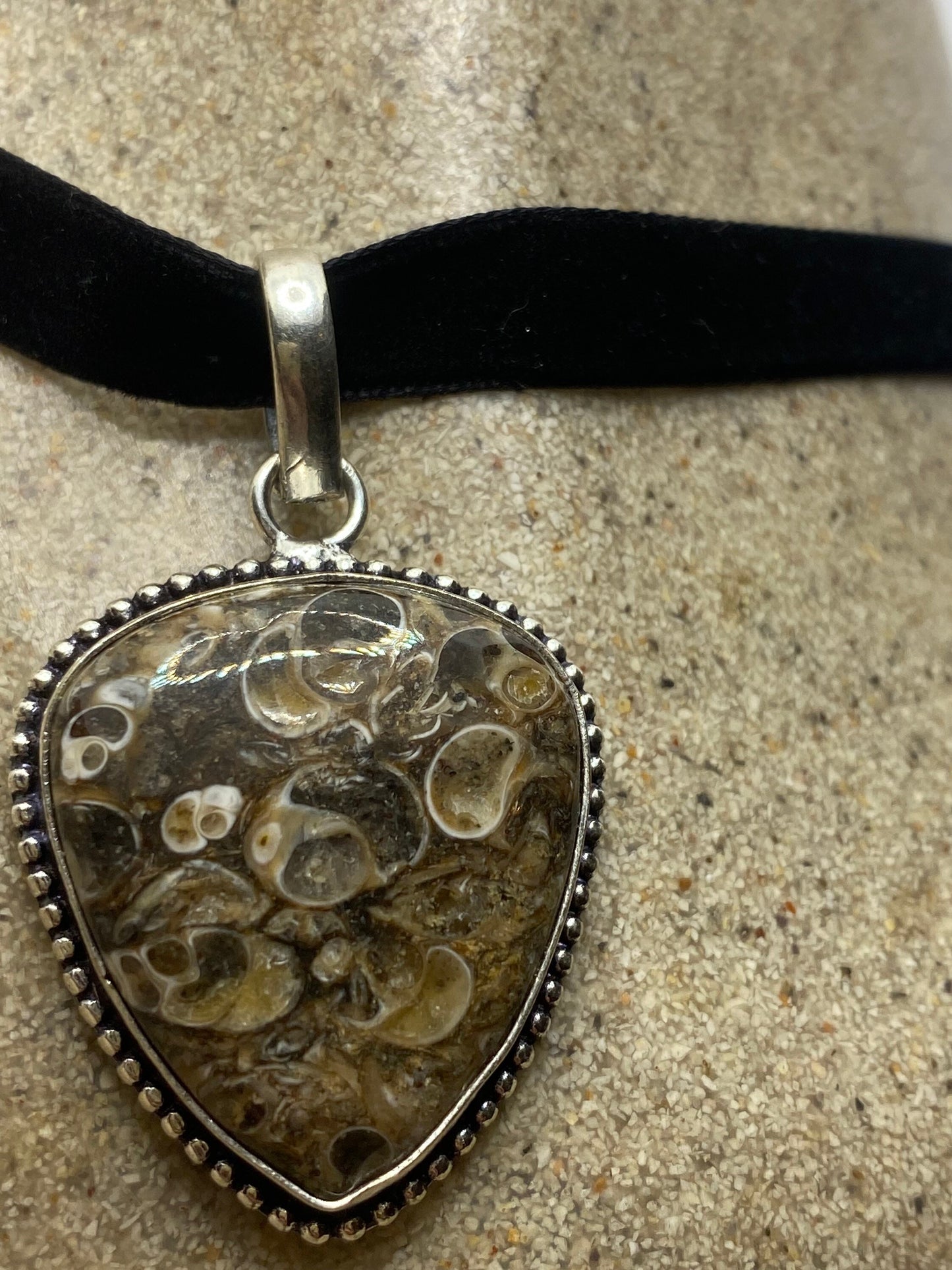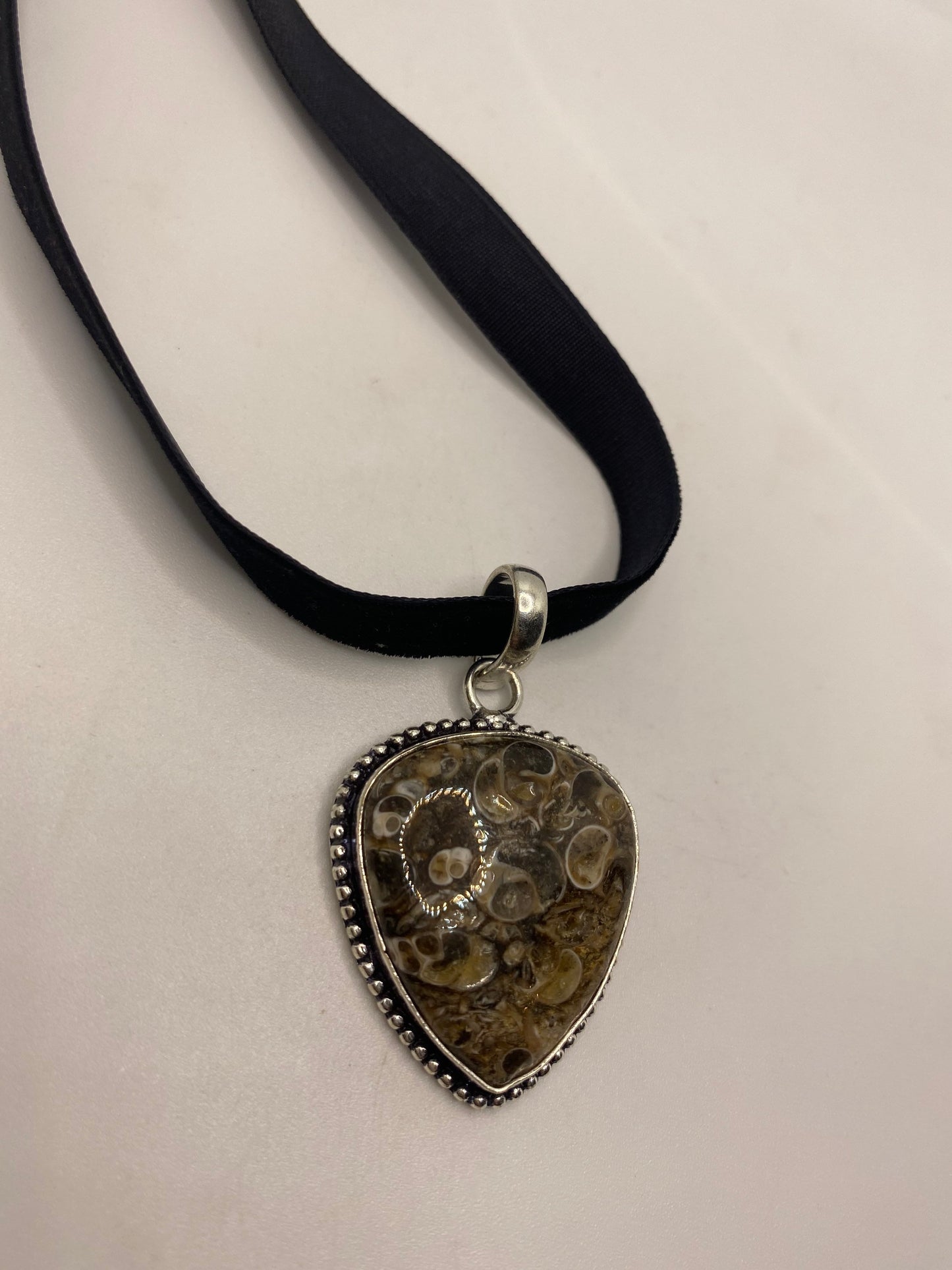 Vintage Handmade Genuine Fossil agate Choker Pendant Necklace