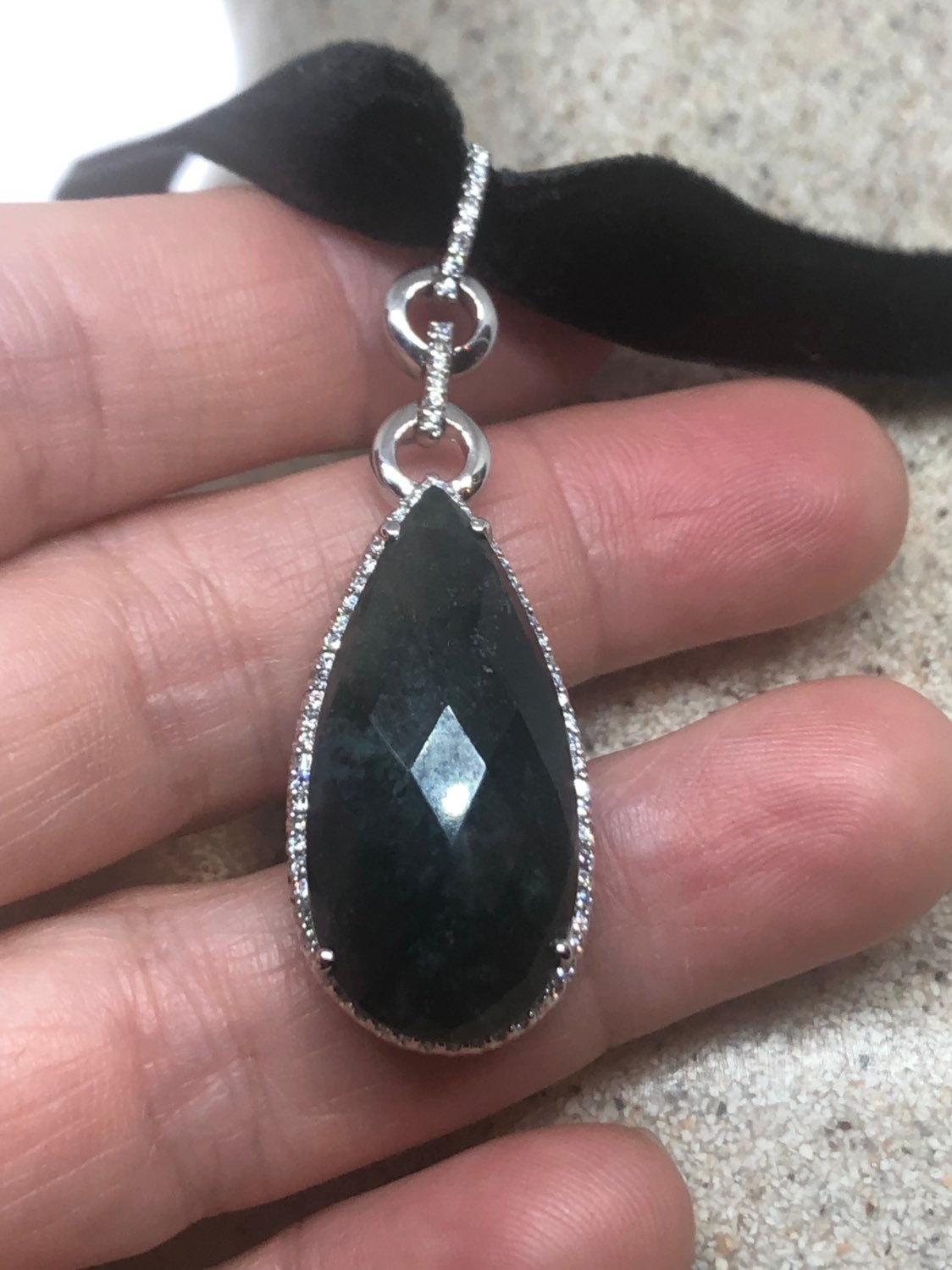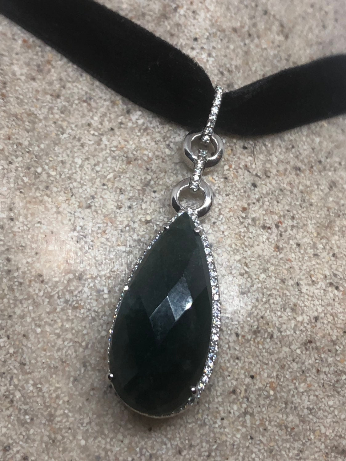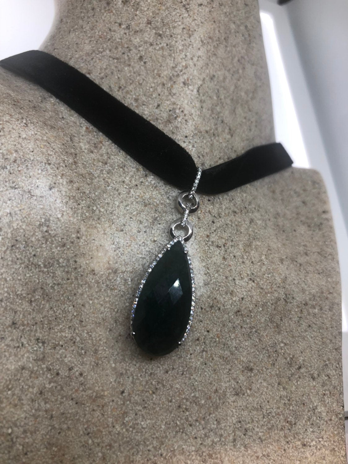 Vintage Handmade Jade 925 Sterling Silver Droplet Pendant