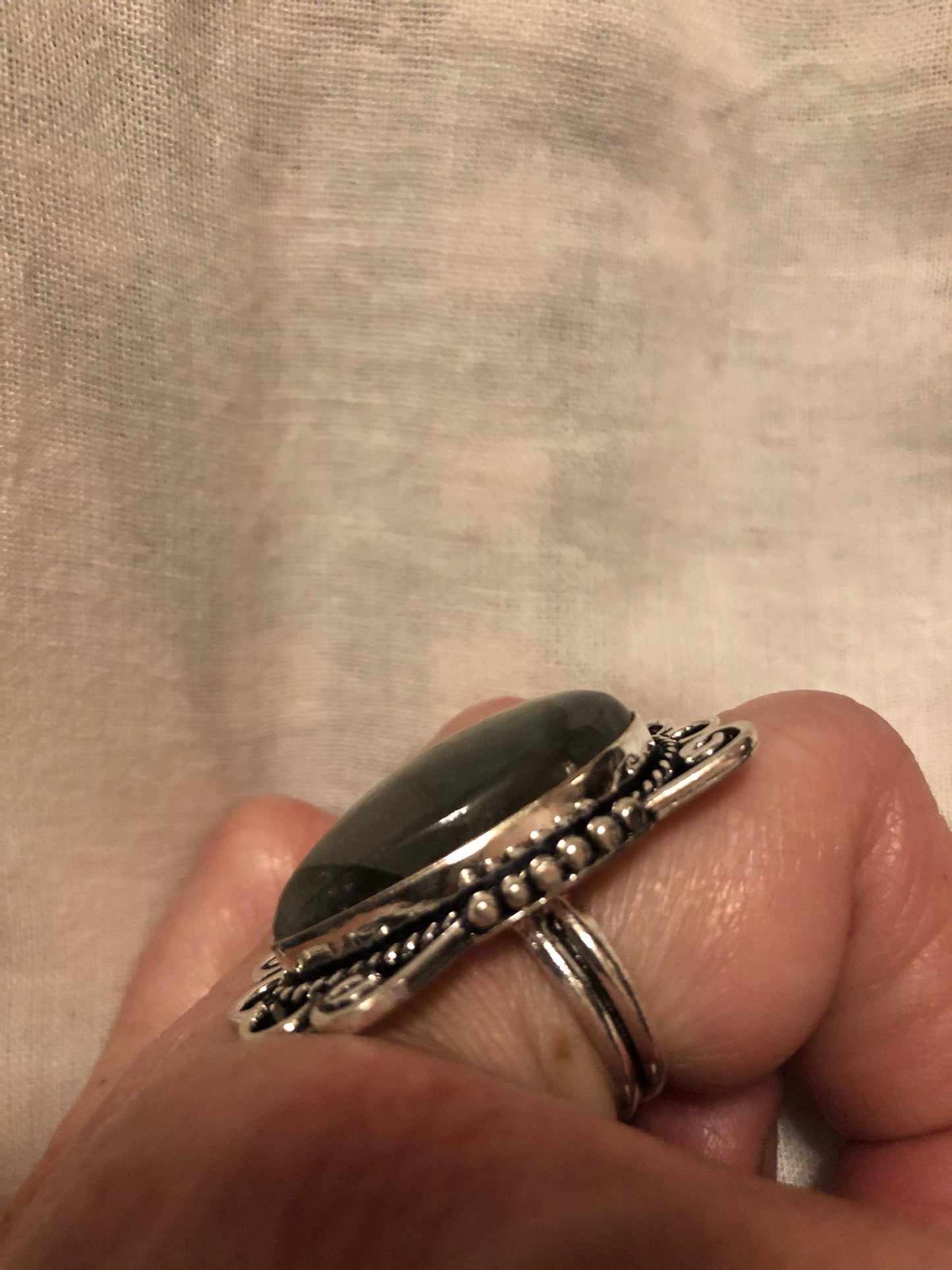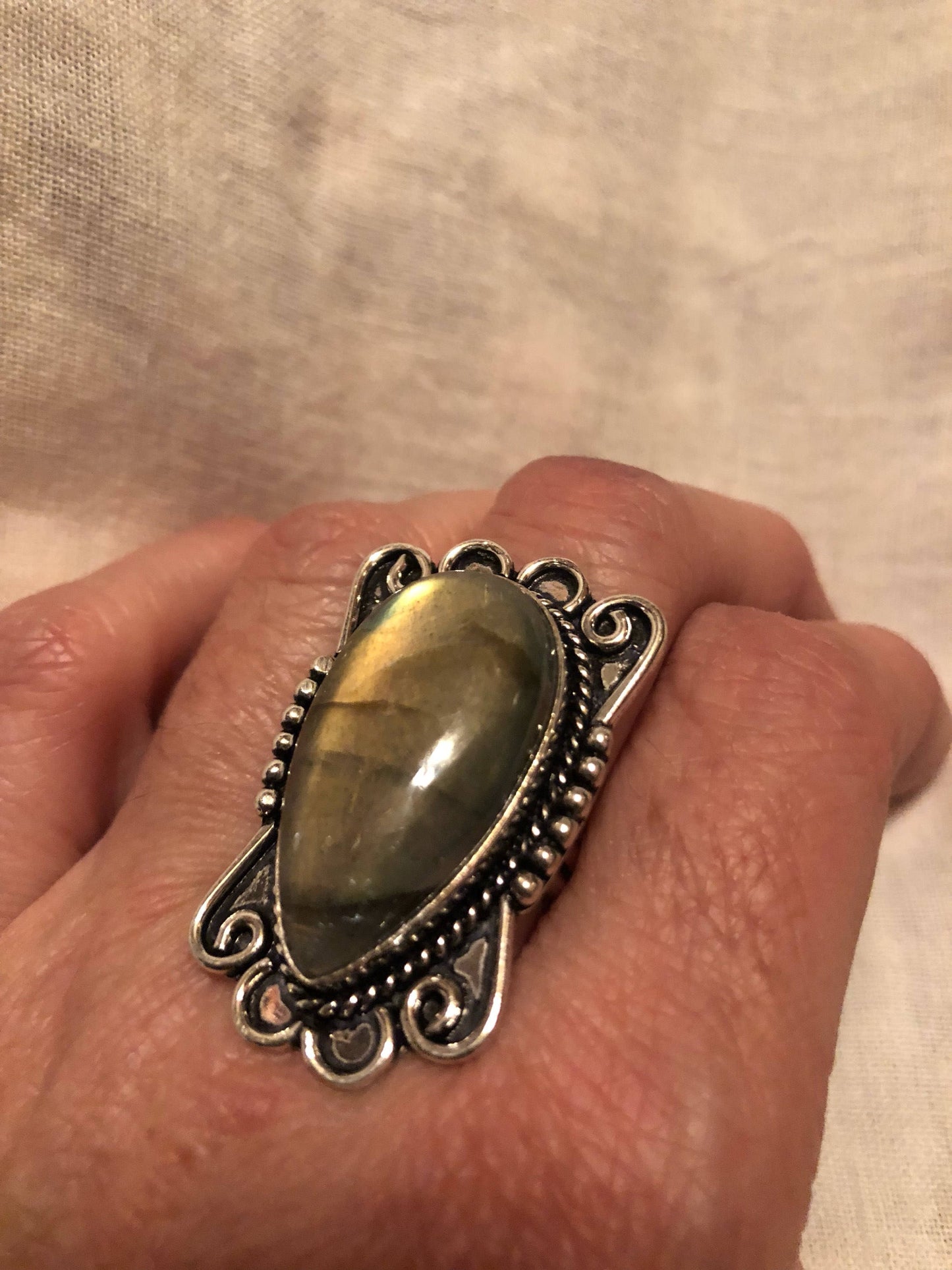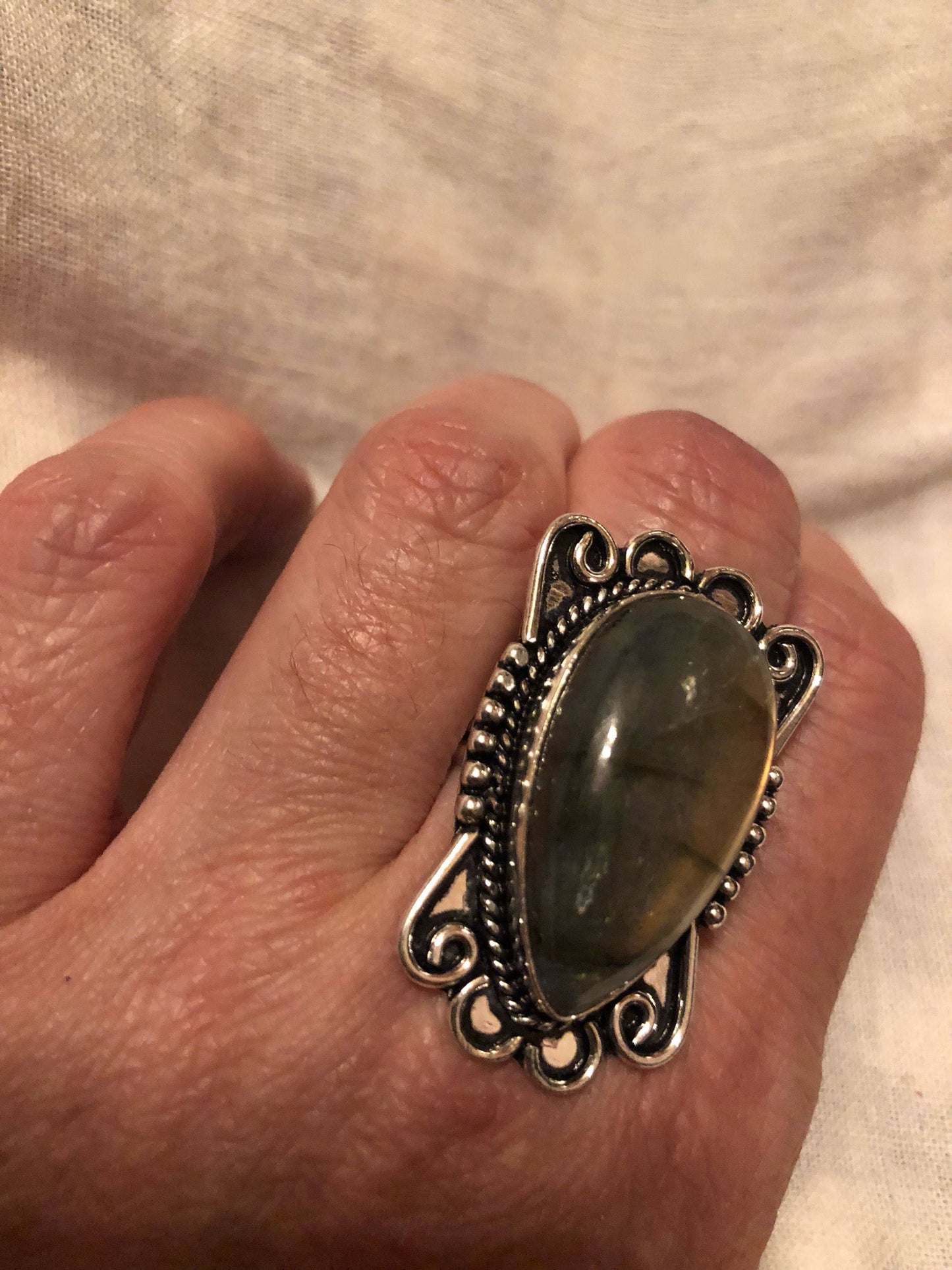 Vintage Large Blue Green Labradorite Stone Silver Ring