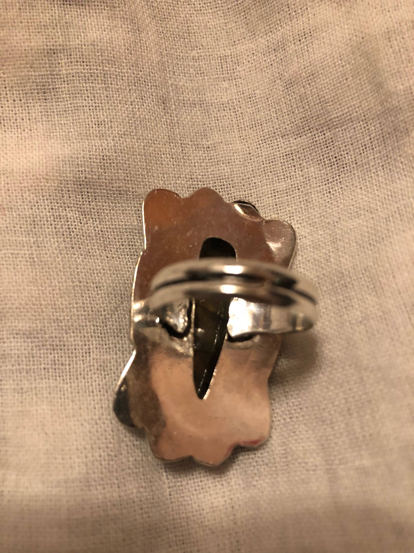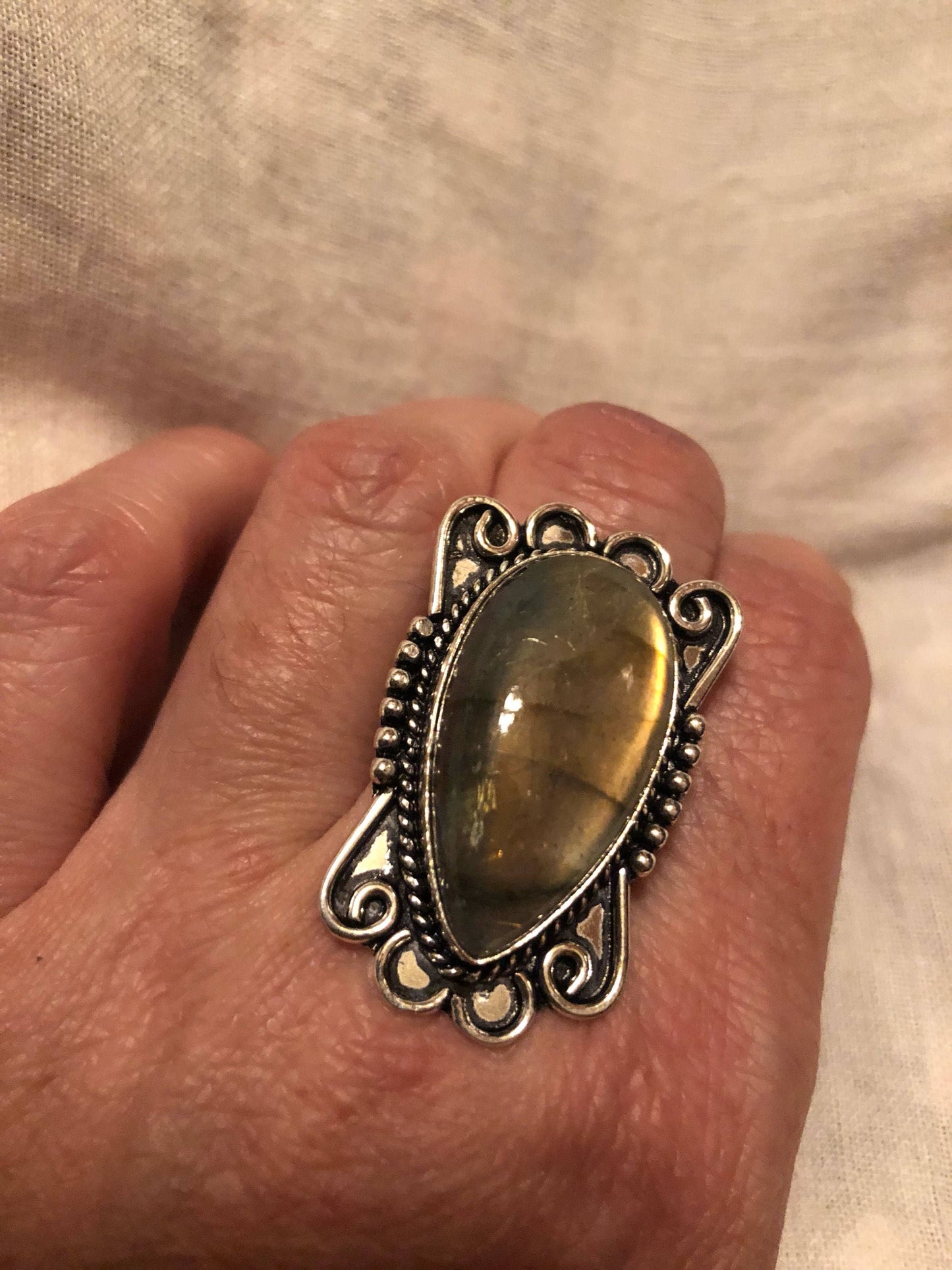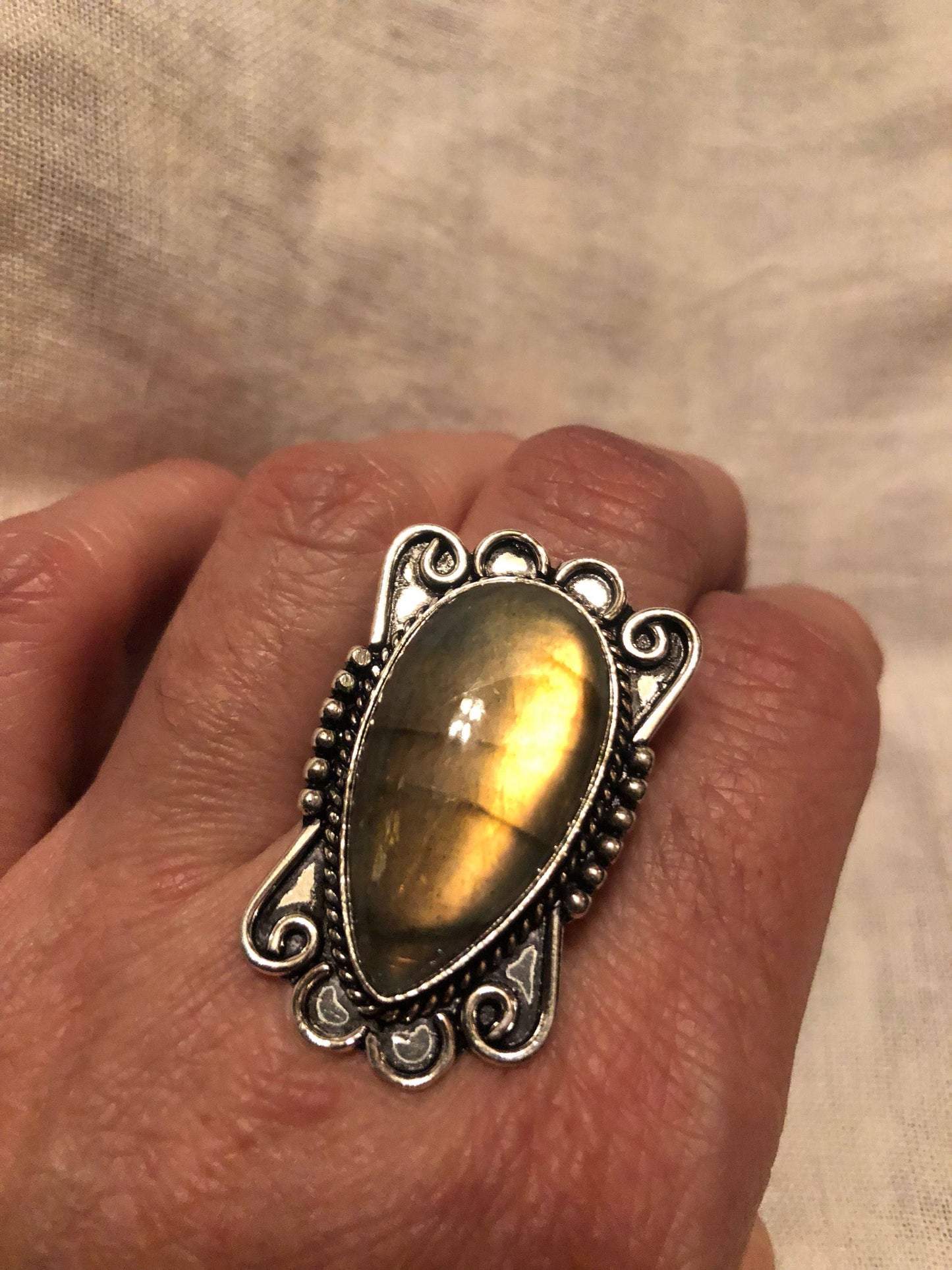 Vintage Large Blue Green Labradorite Stone Silver Ring