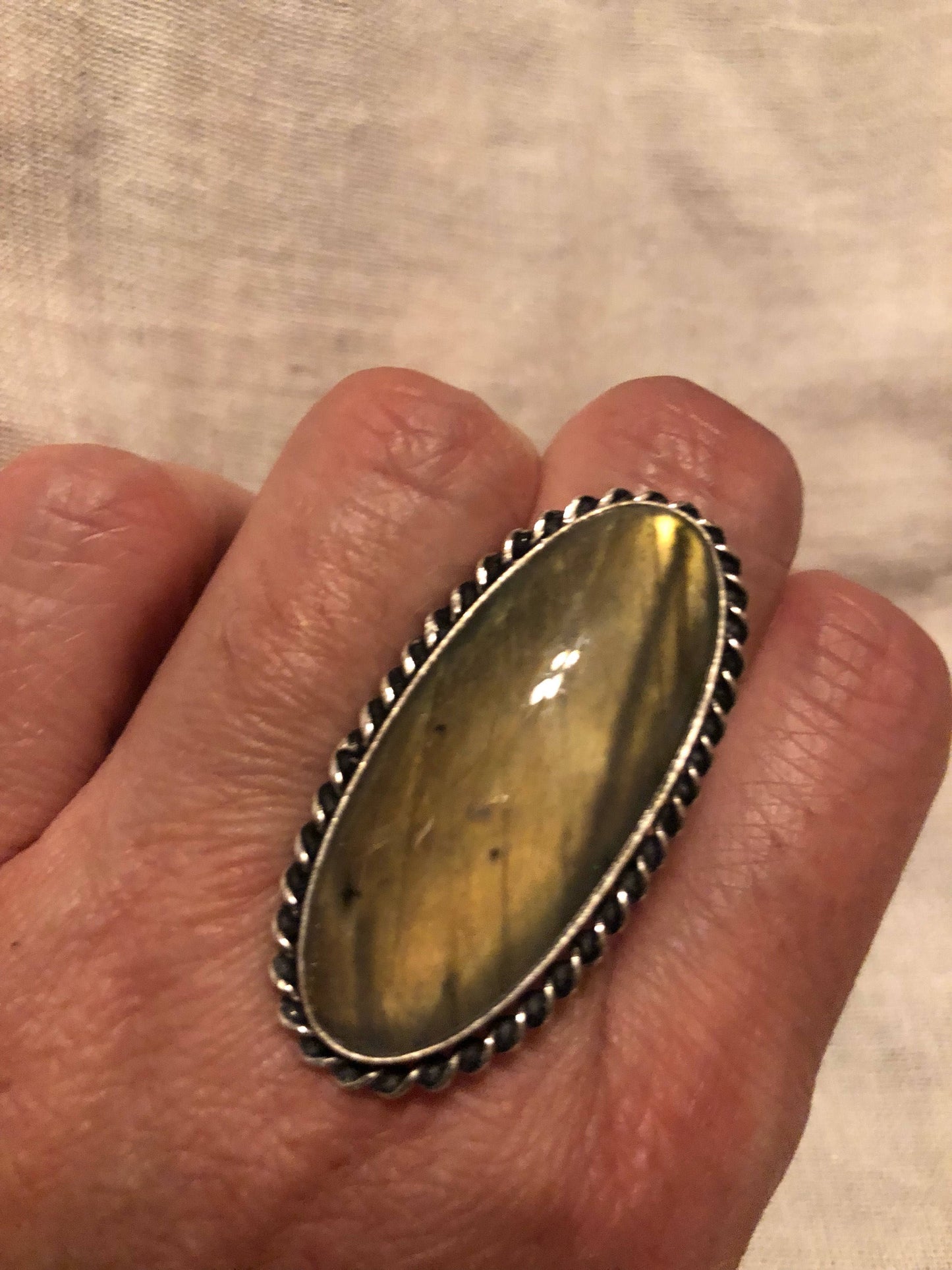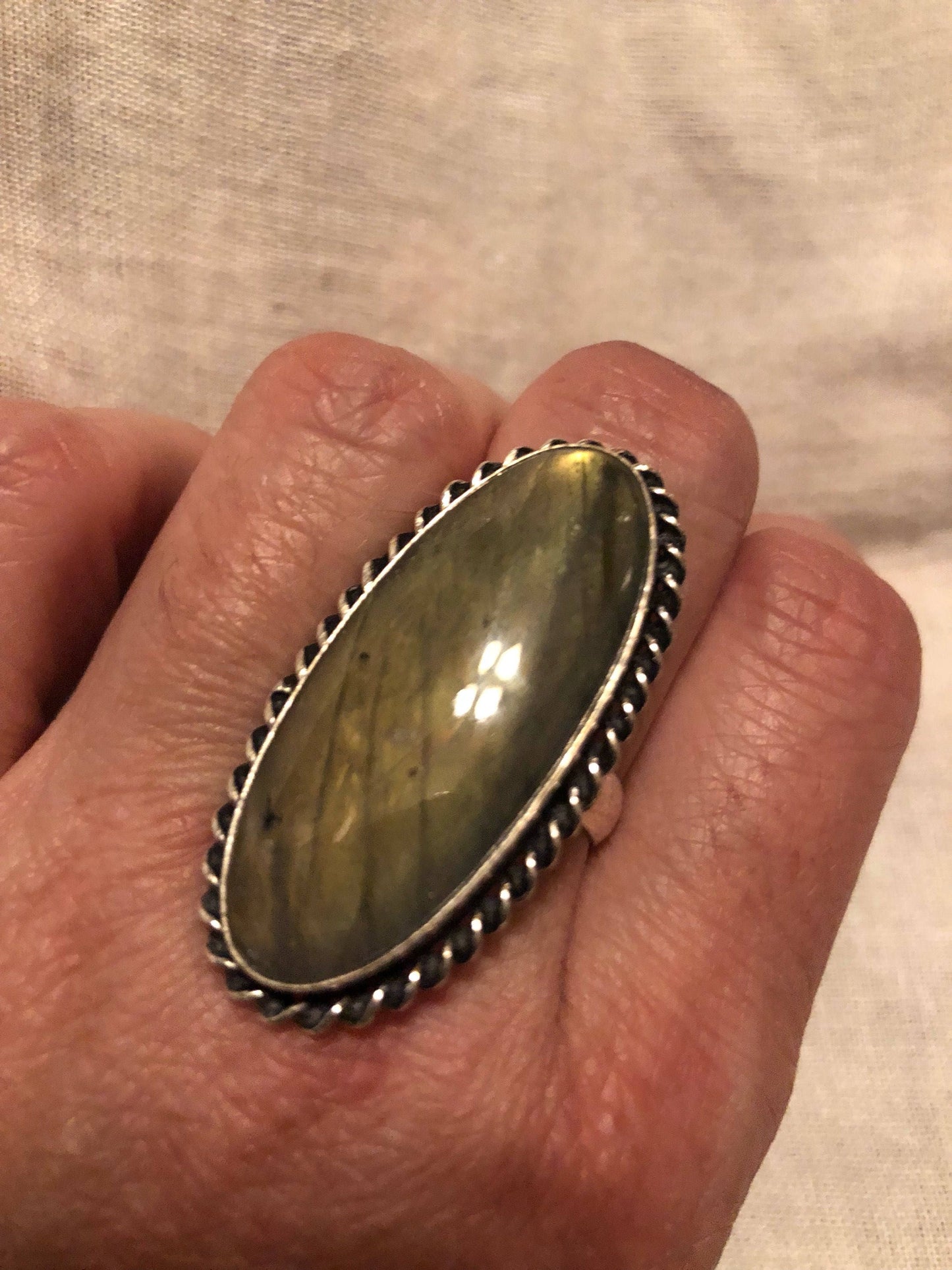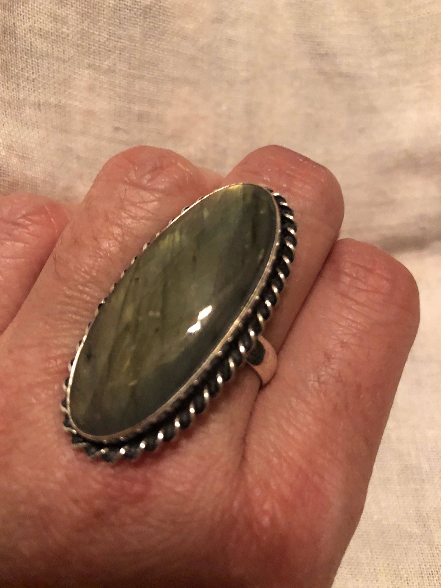 Vintage Large Blue Green Labradorite Stone Silver Ring
