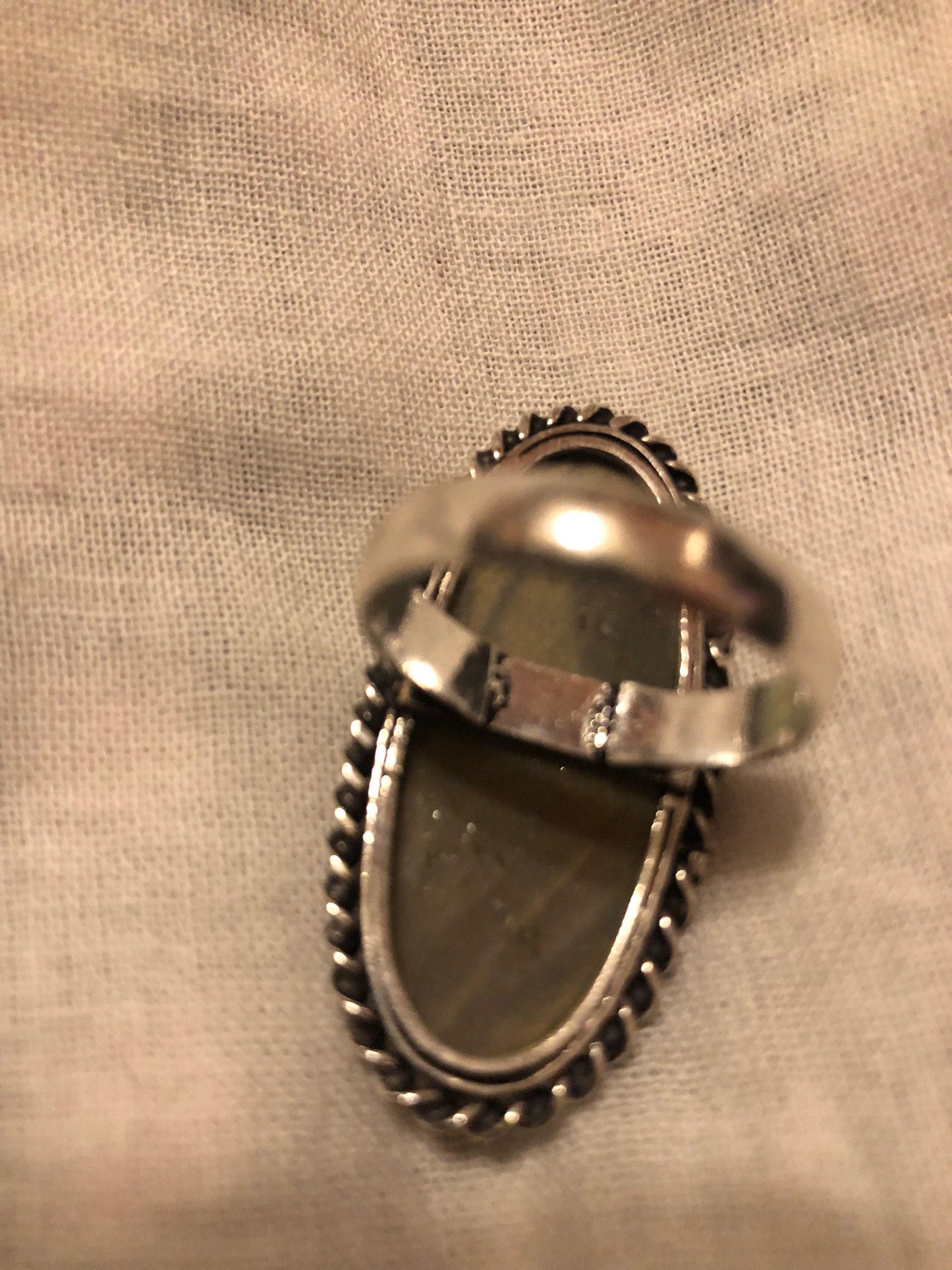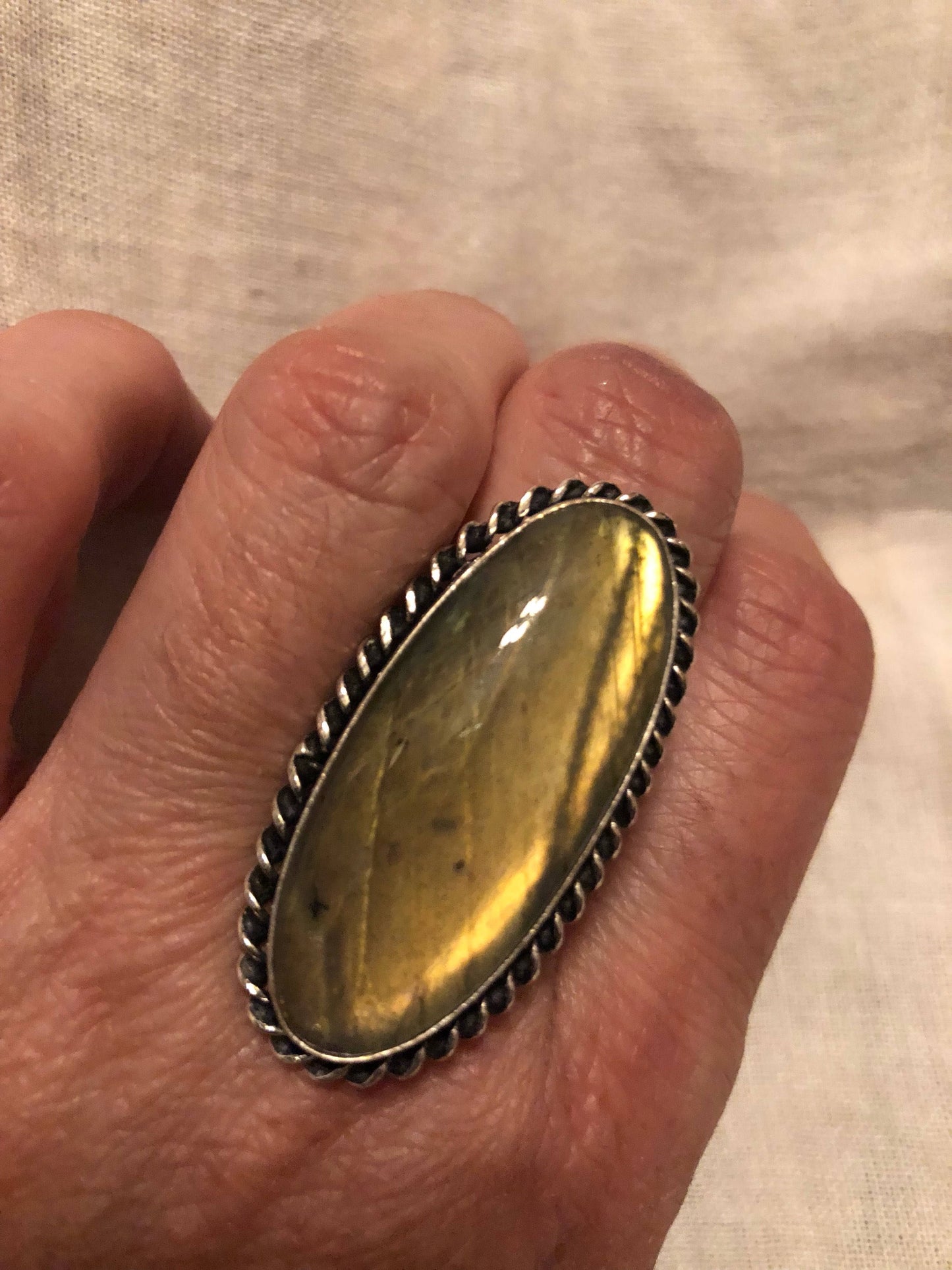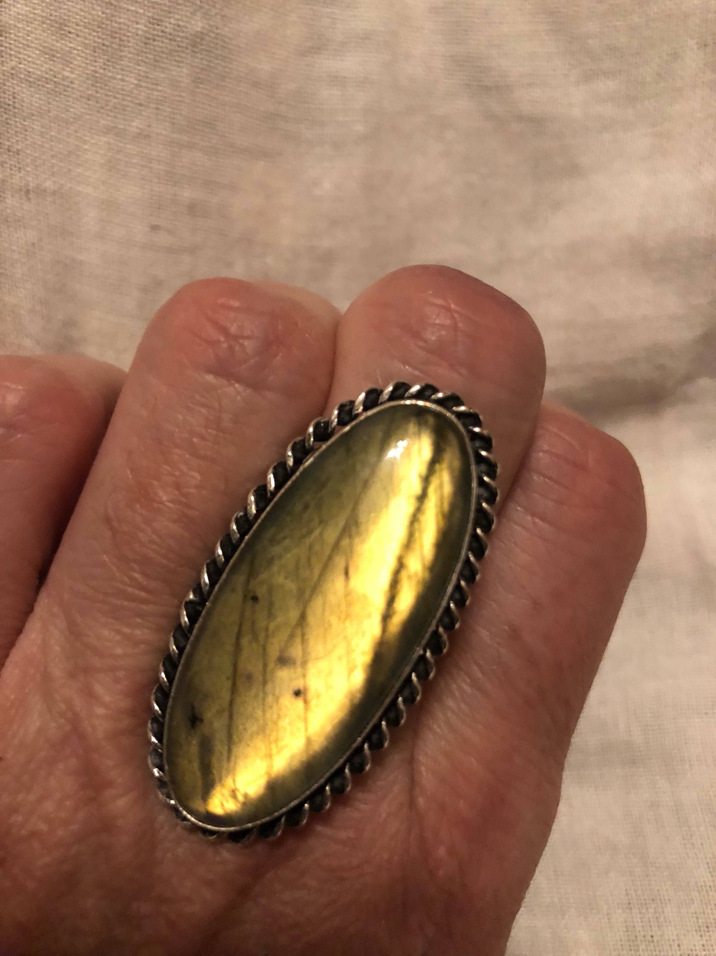 Vintage Large Blue Green Labradorite Stone Silver Ring