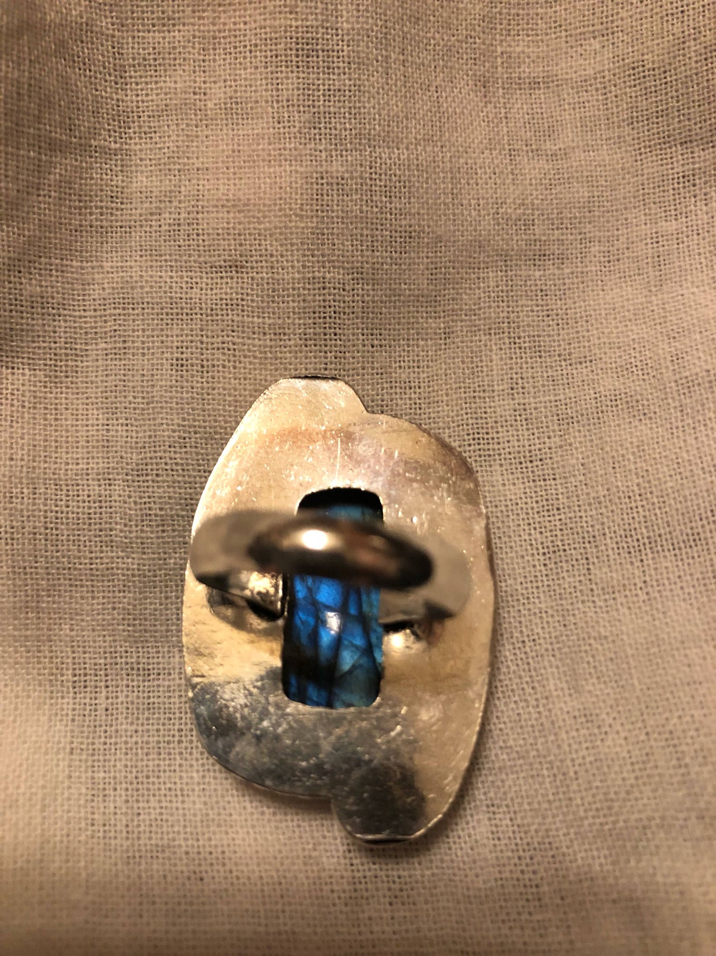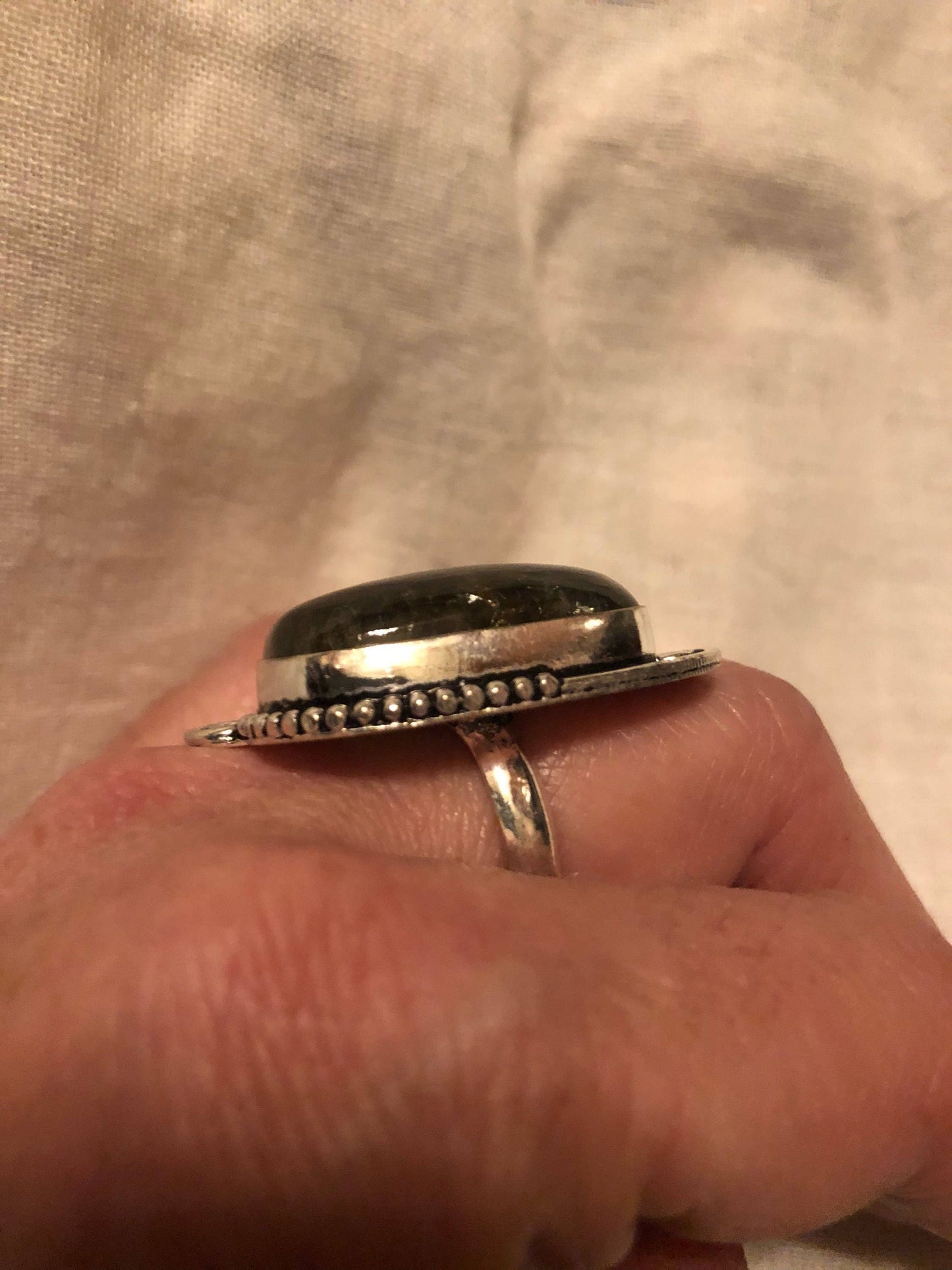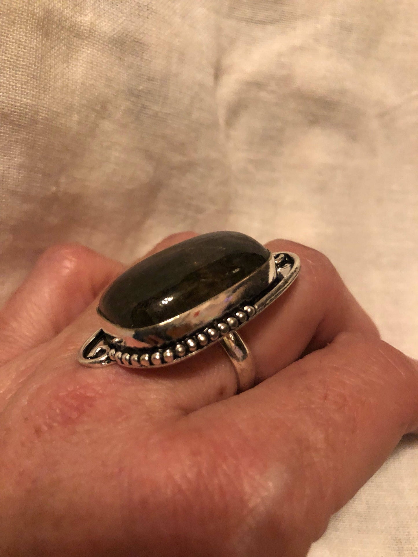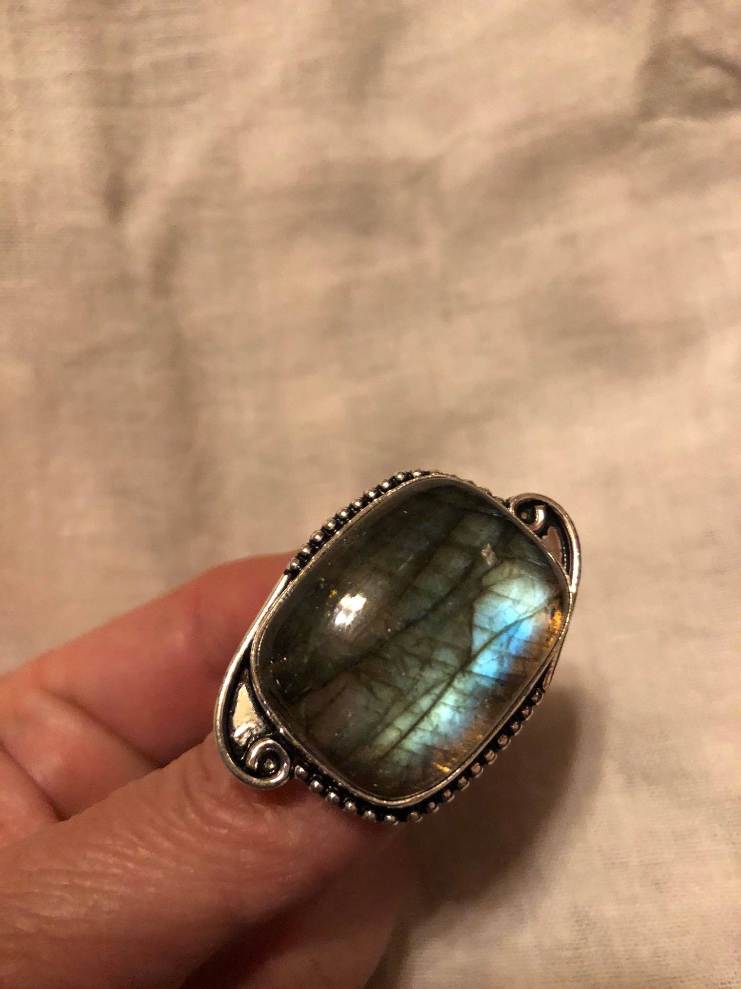 Vintage Large Blue Green Labradorite Stone Silver Ring