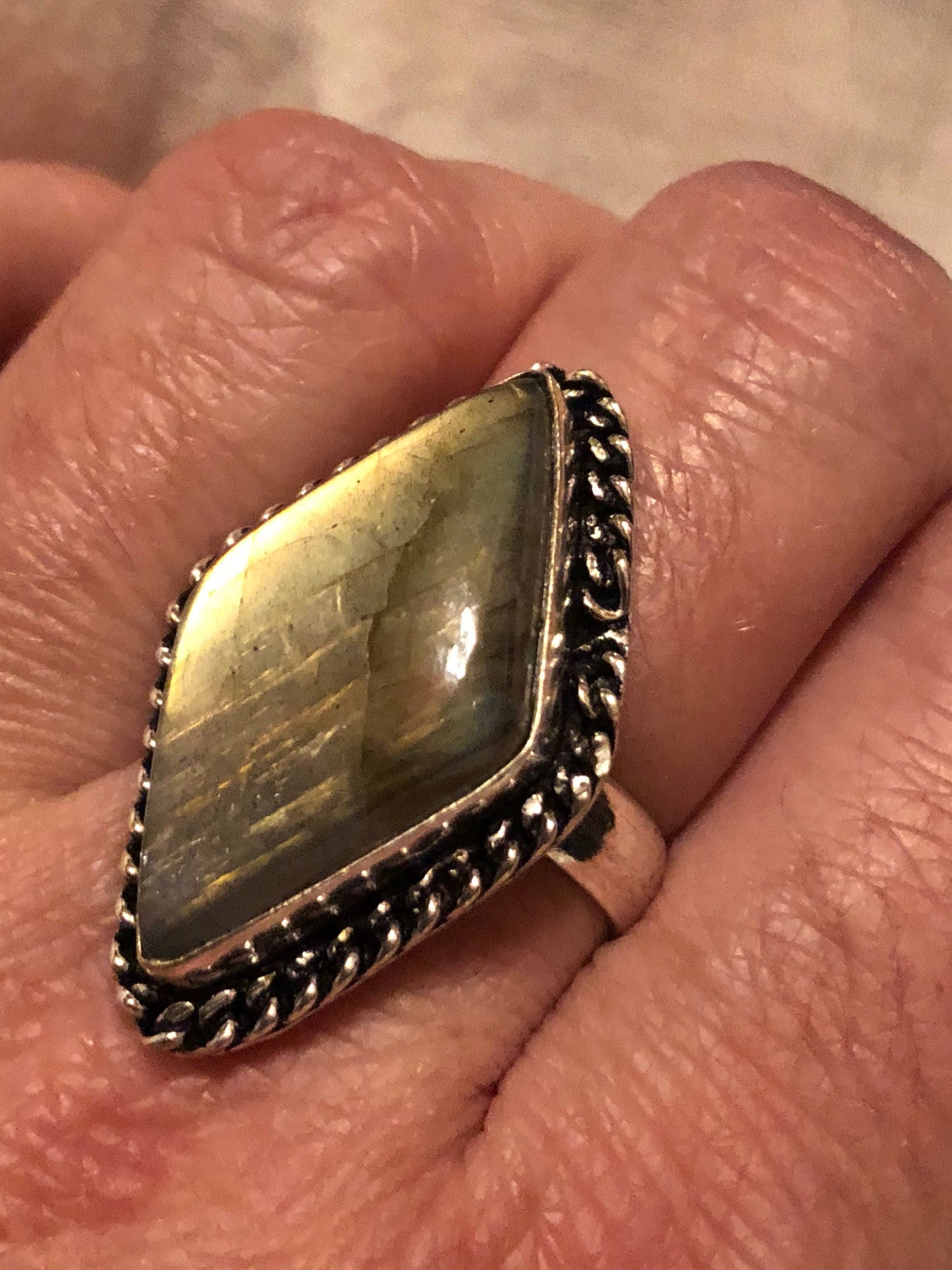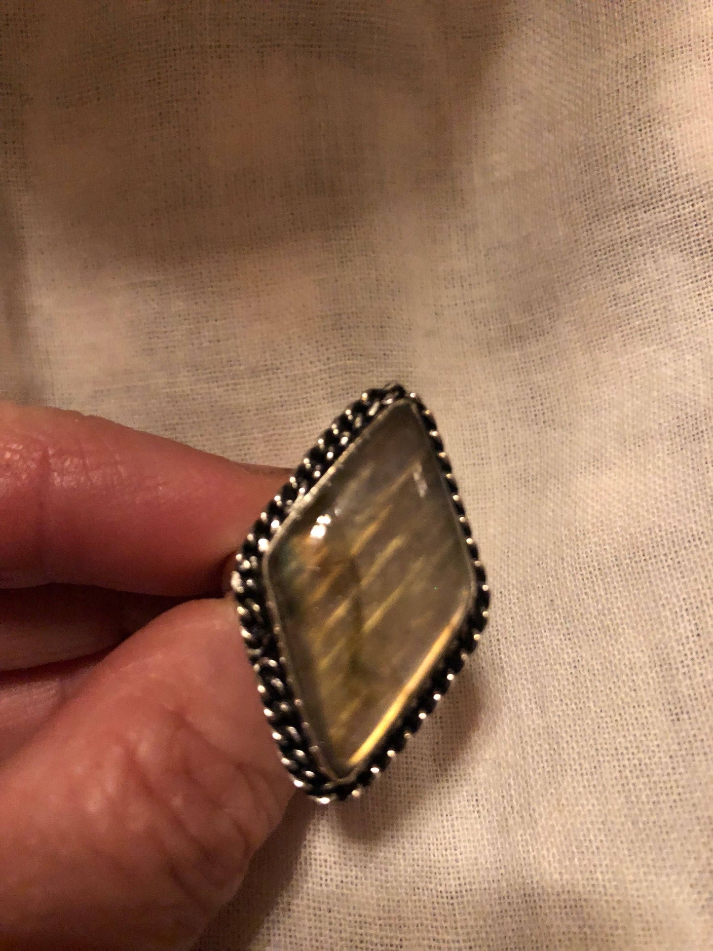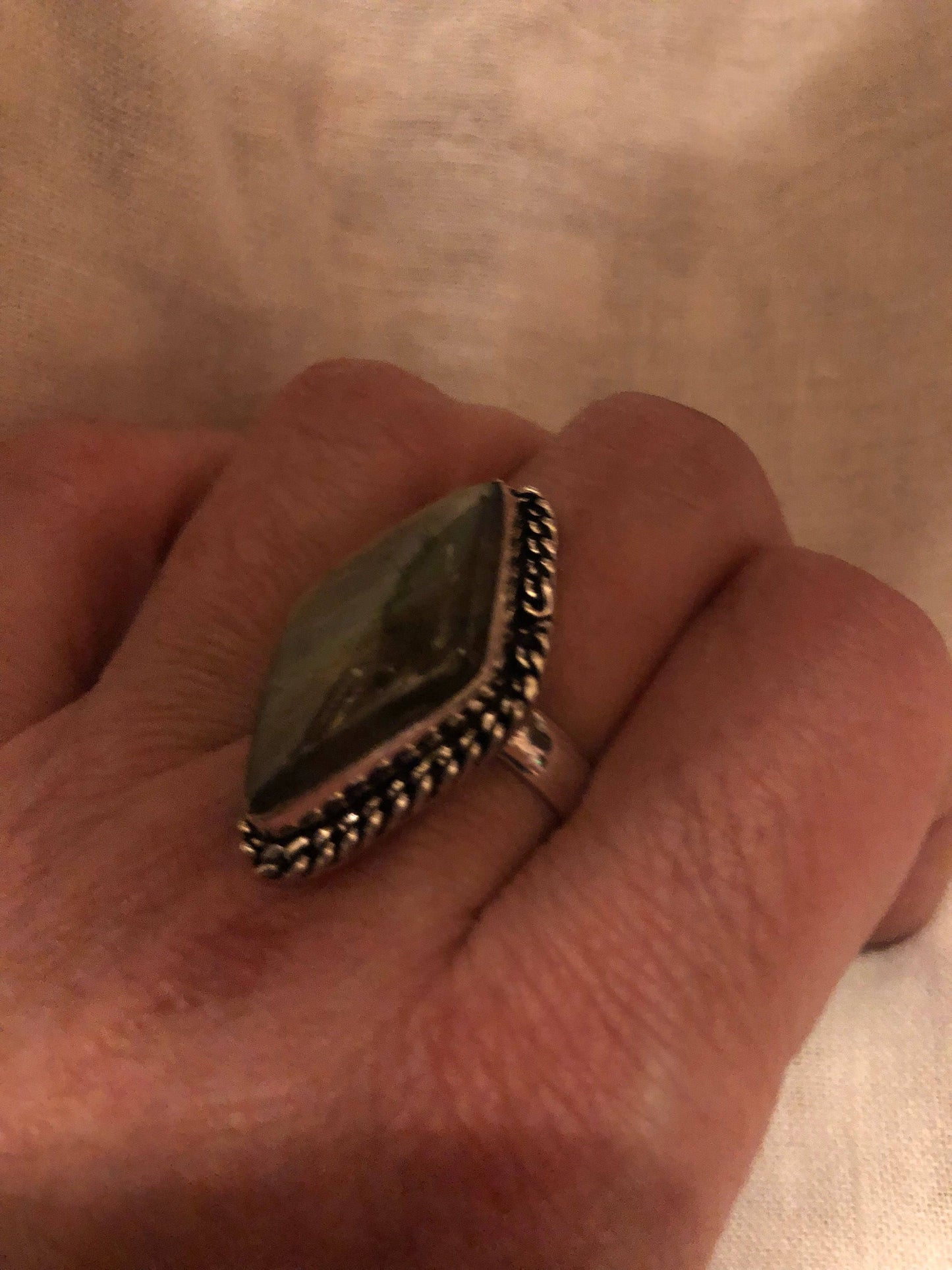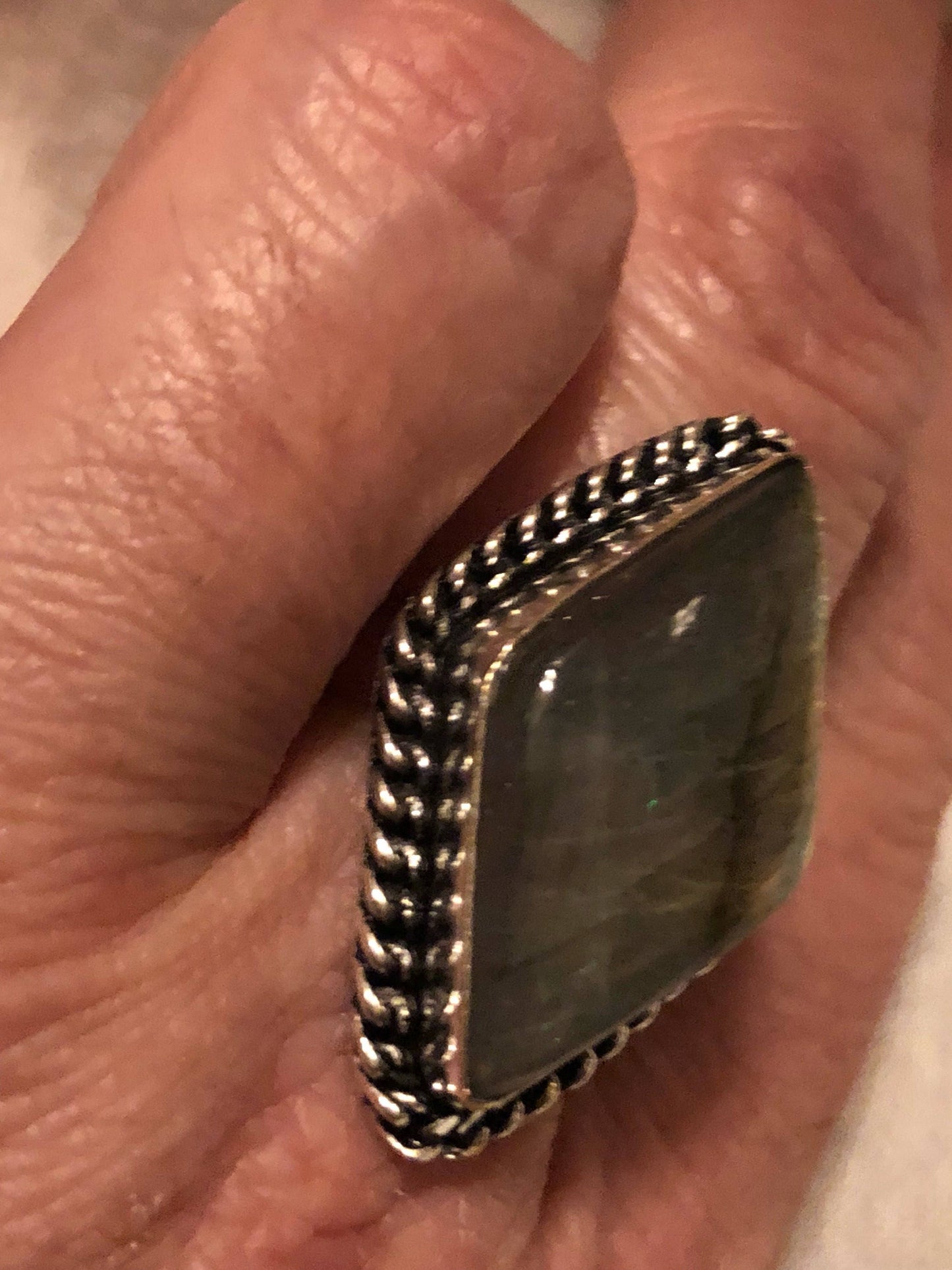 Vintage Large Blue Green Labradorite Stone Silver Ring