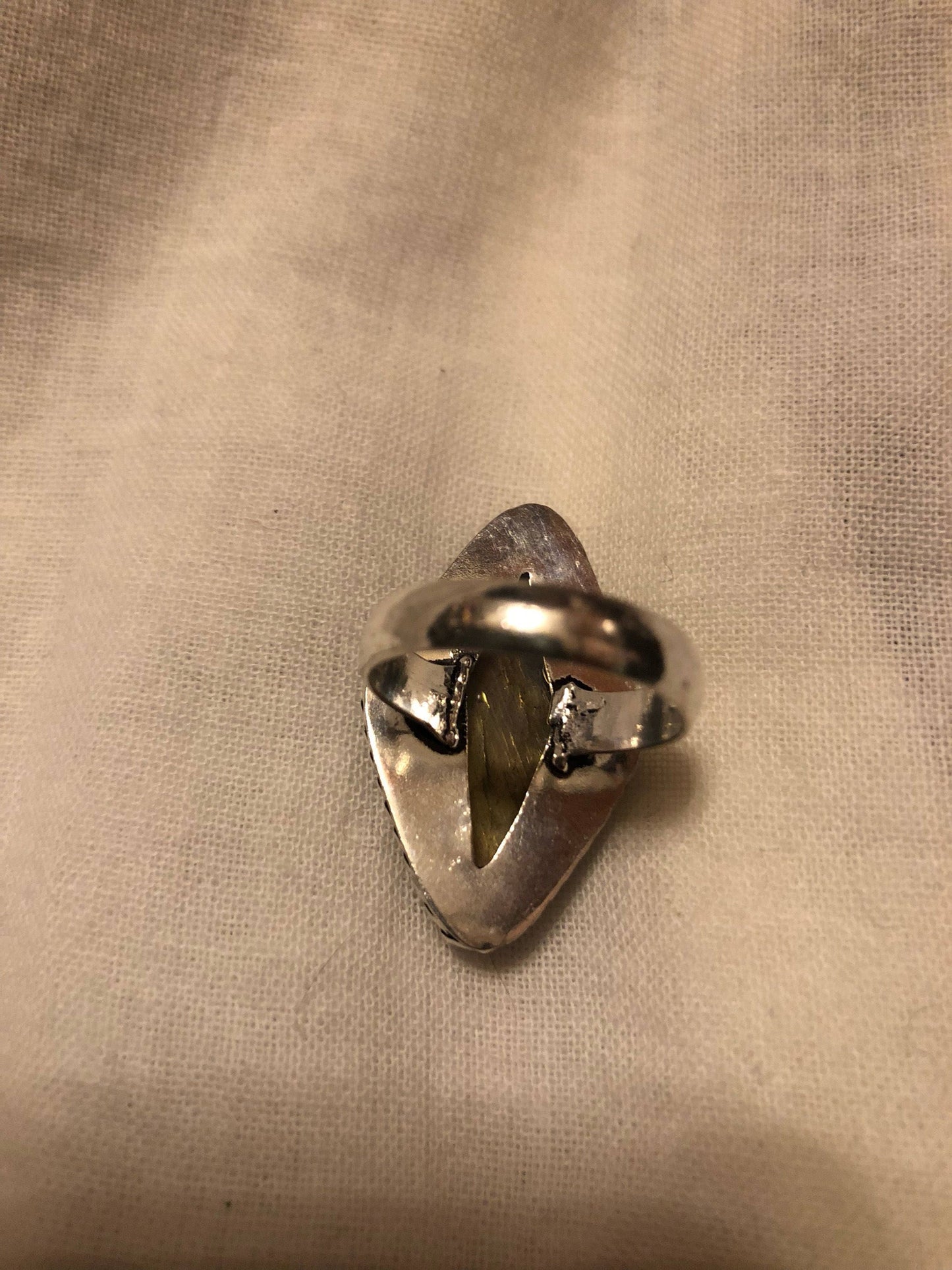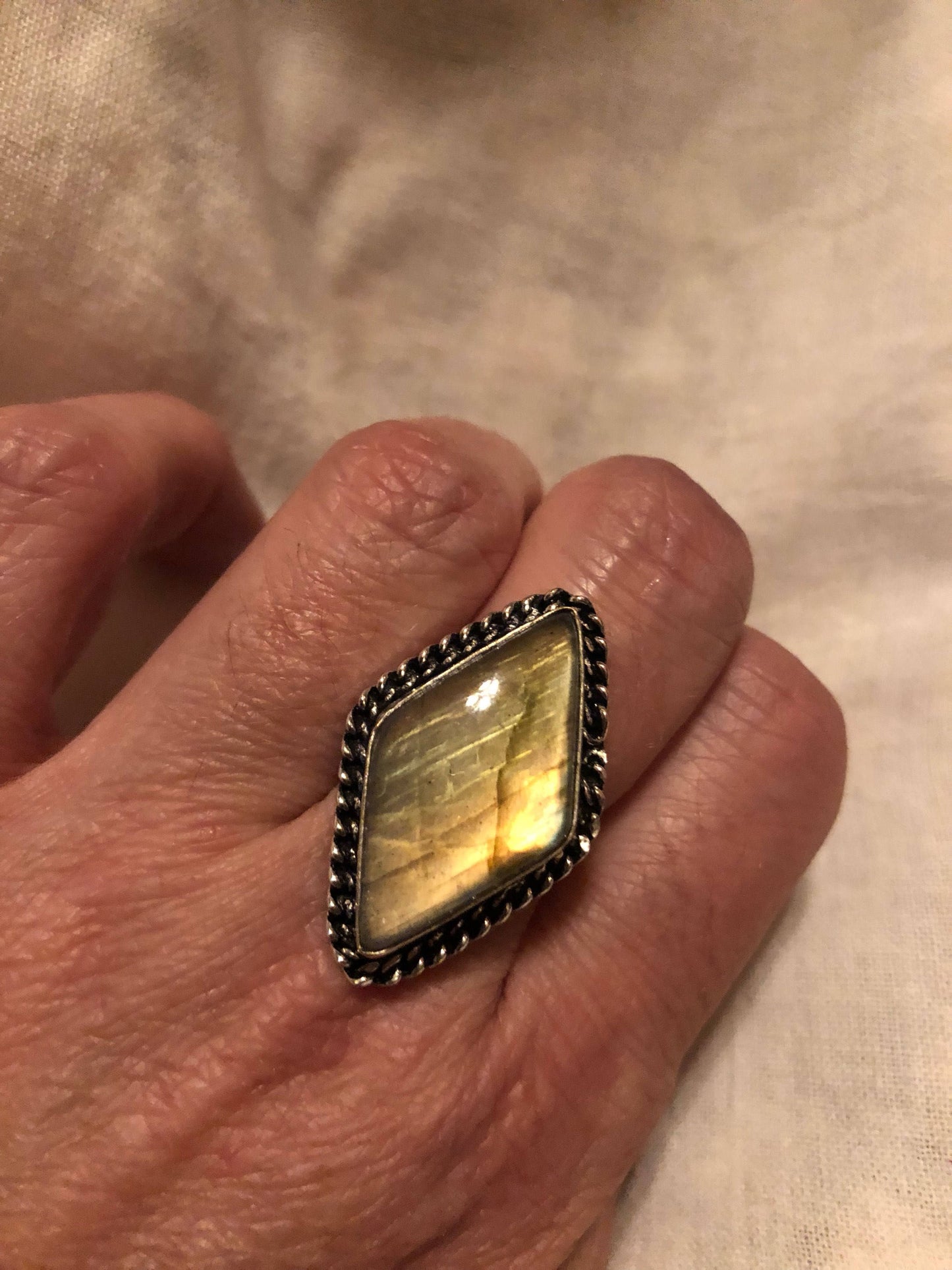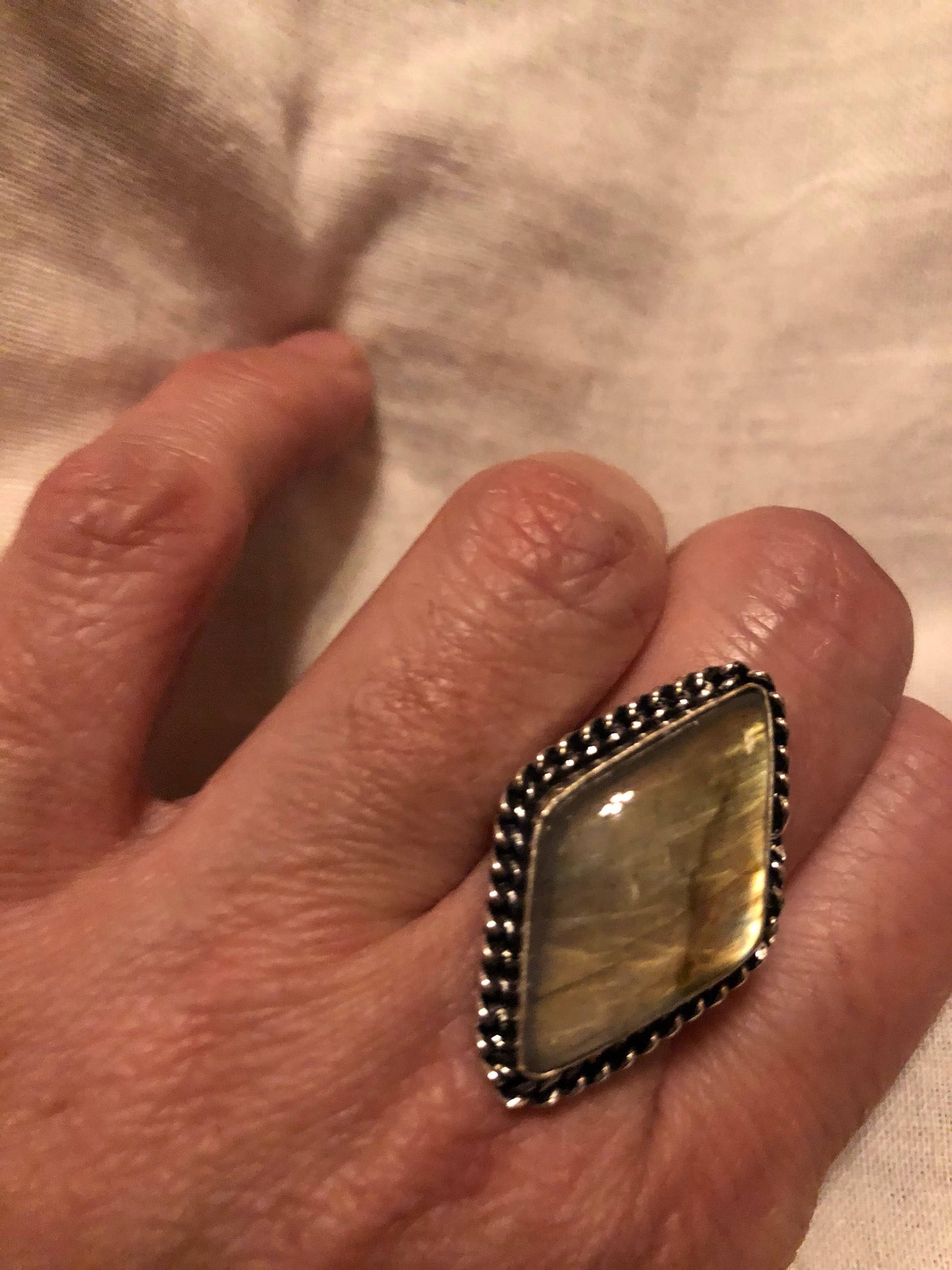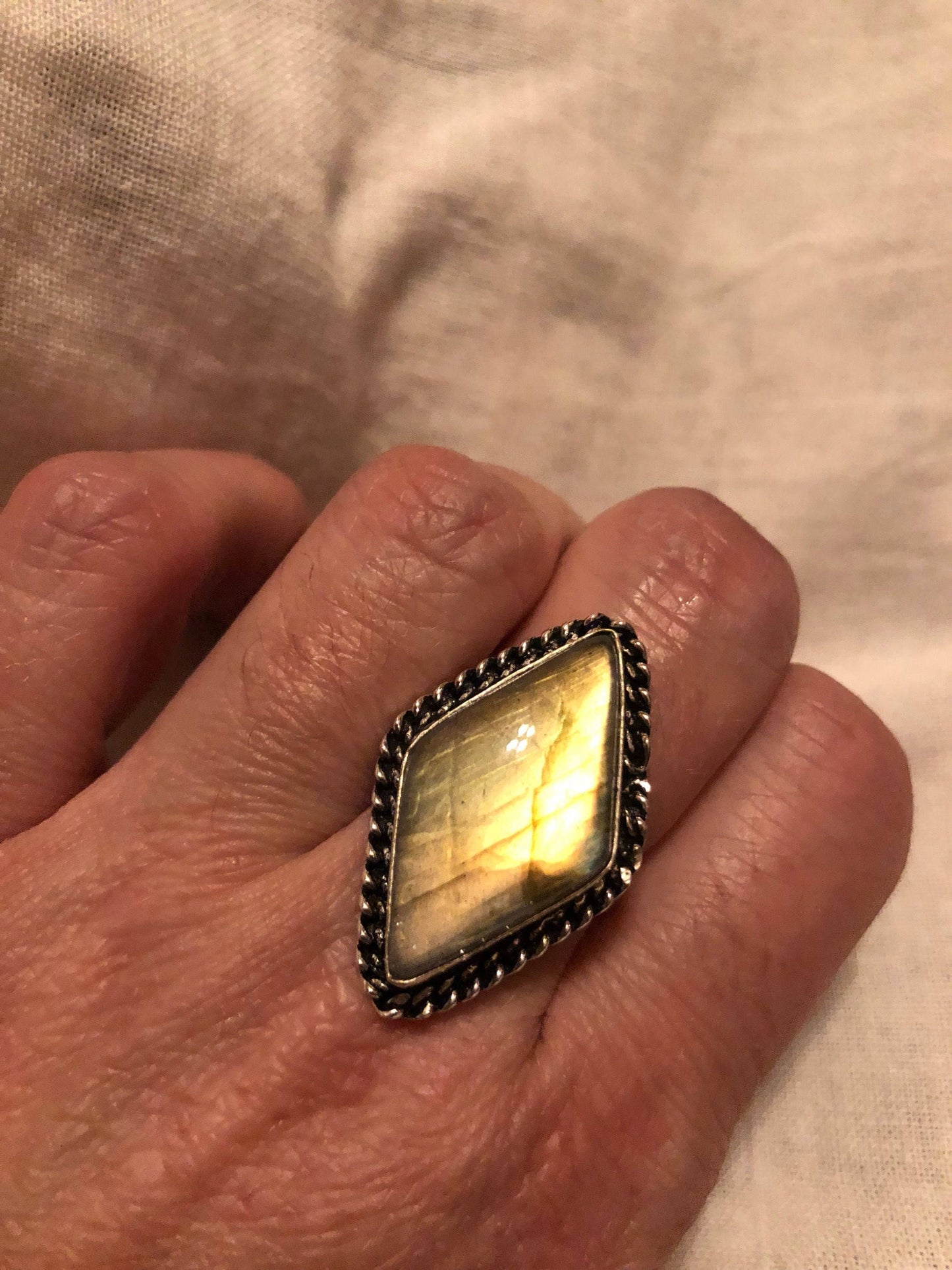 Vintage Large Blue Green Labradorite Stone Silver Ring