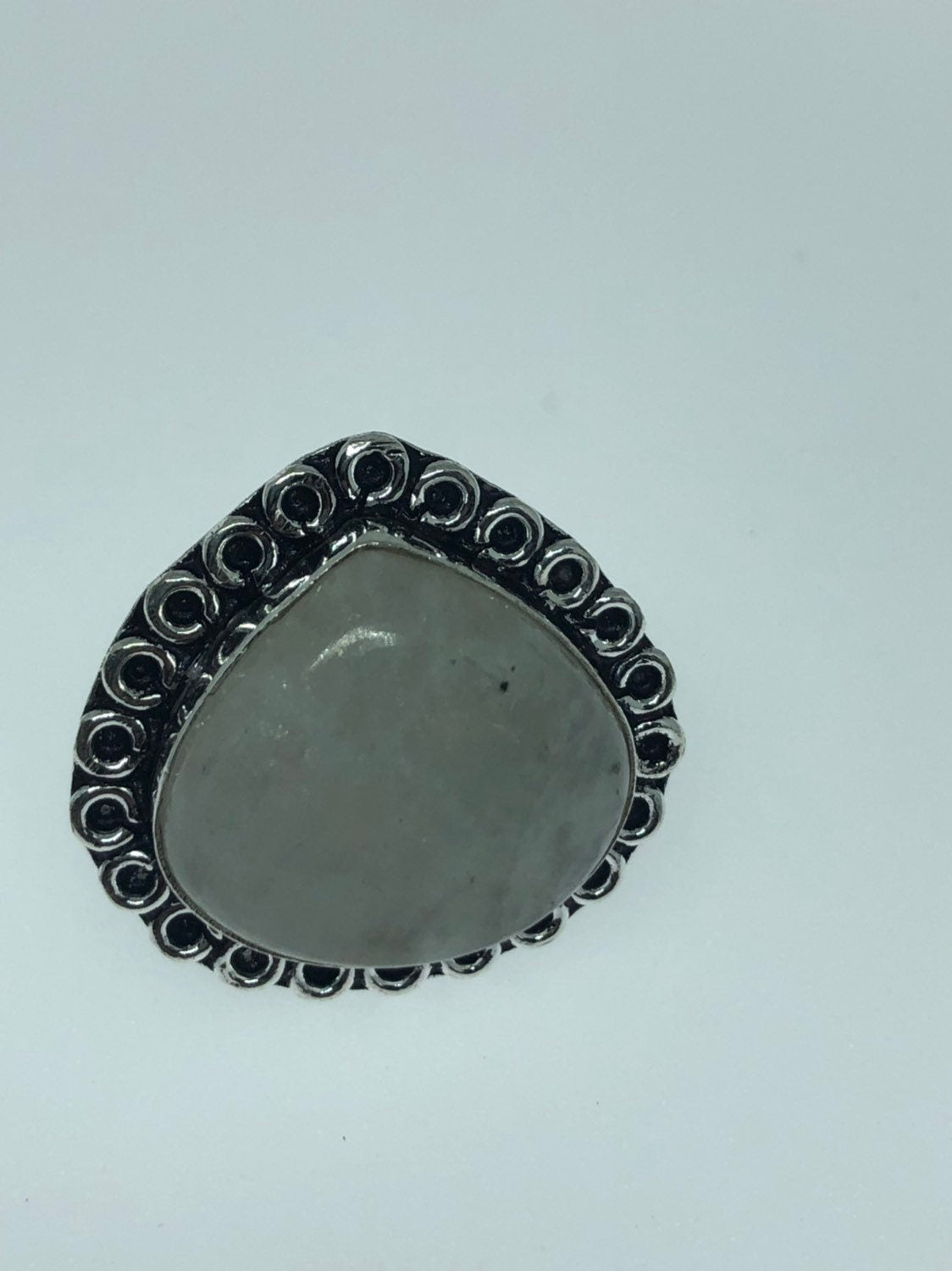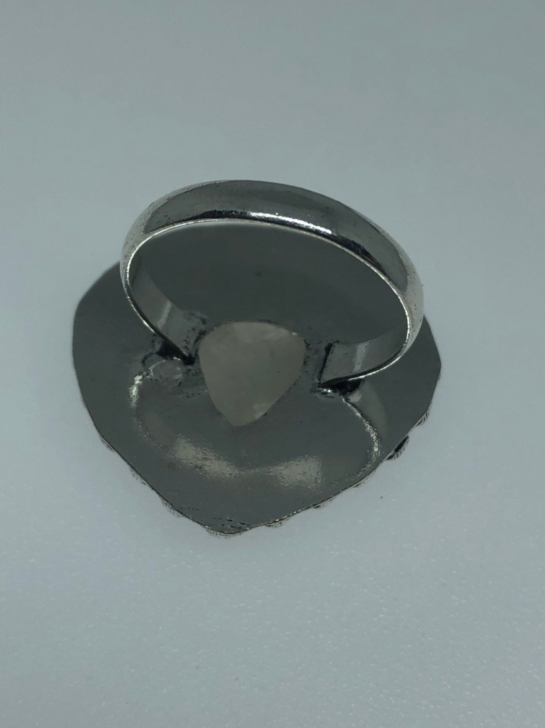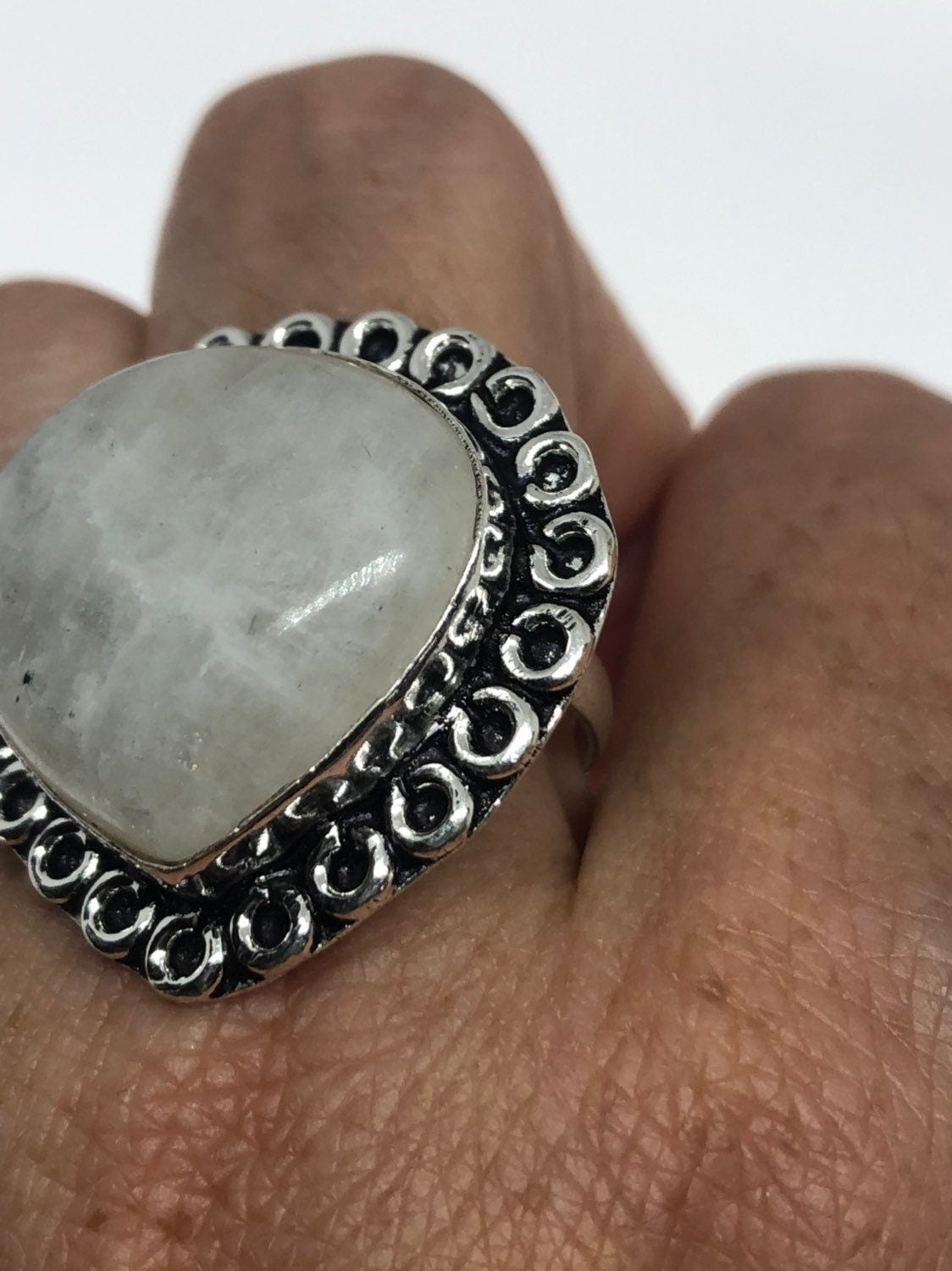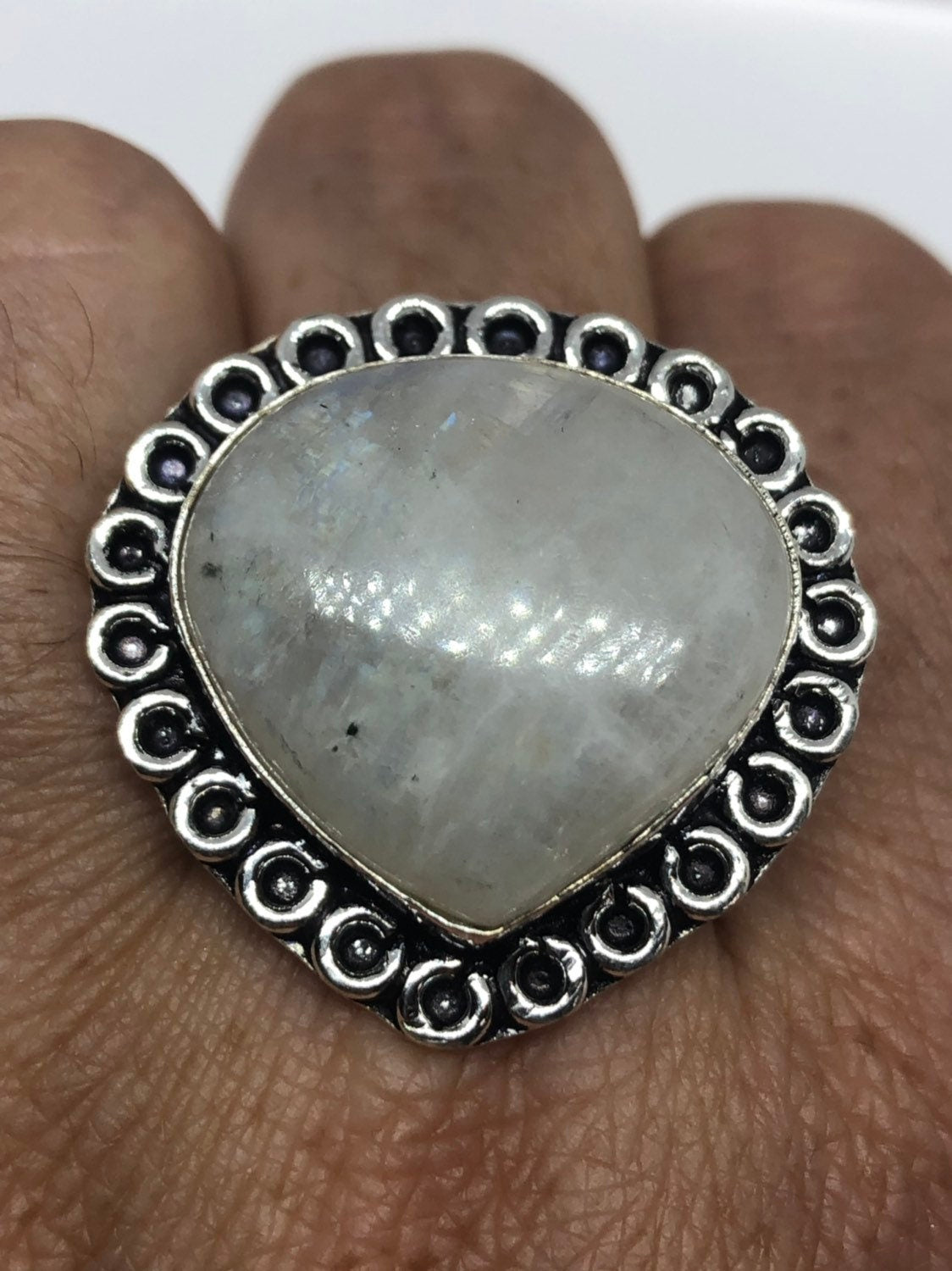 Vintage Large Blue White Rainbow Moonstone Stone Silver Ring