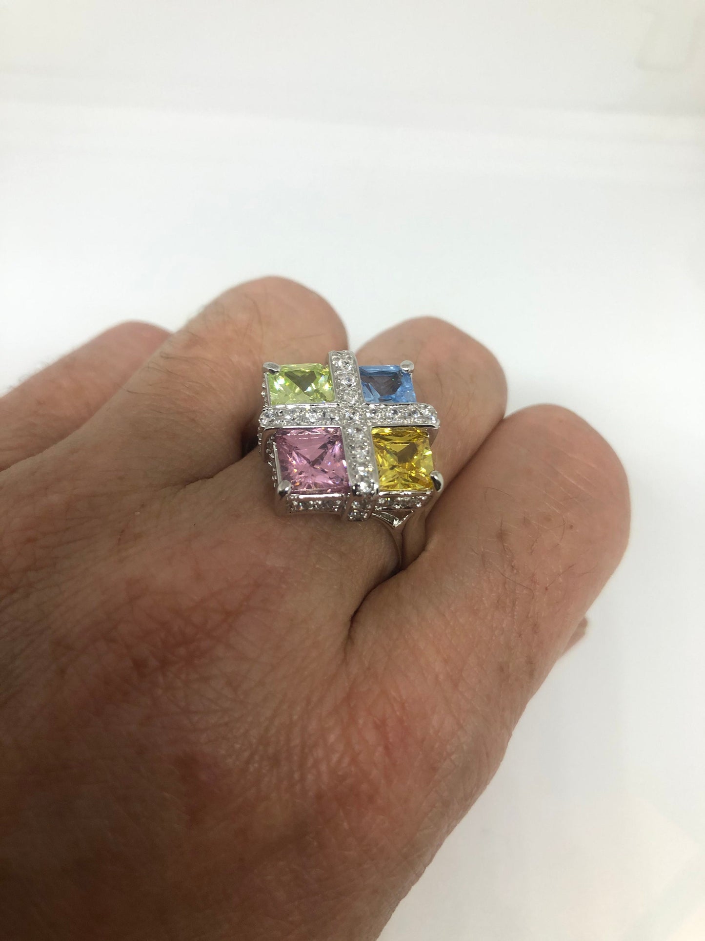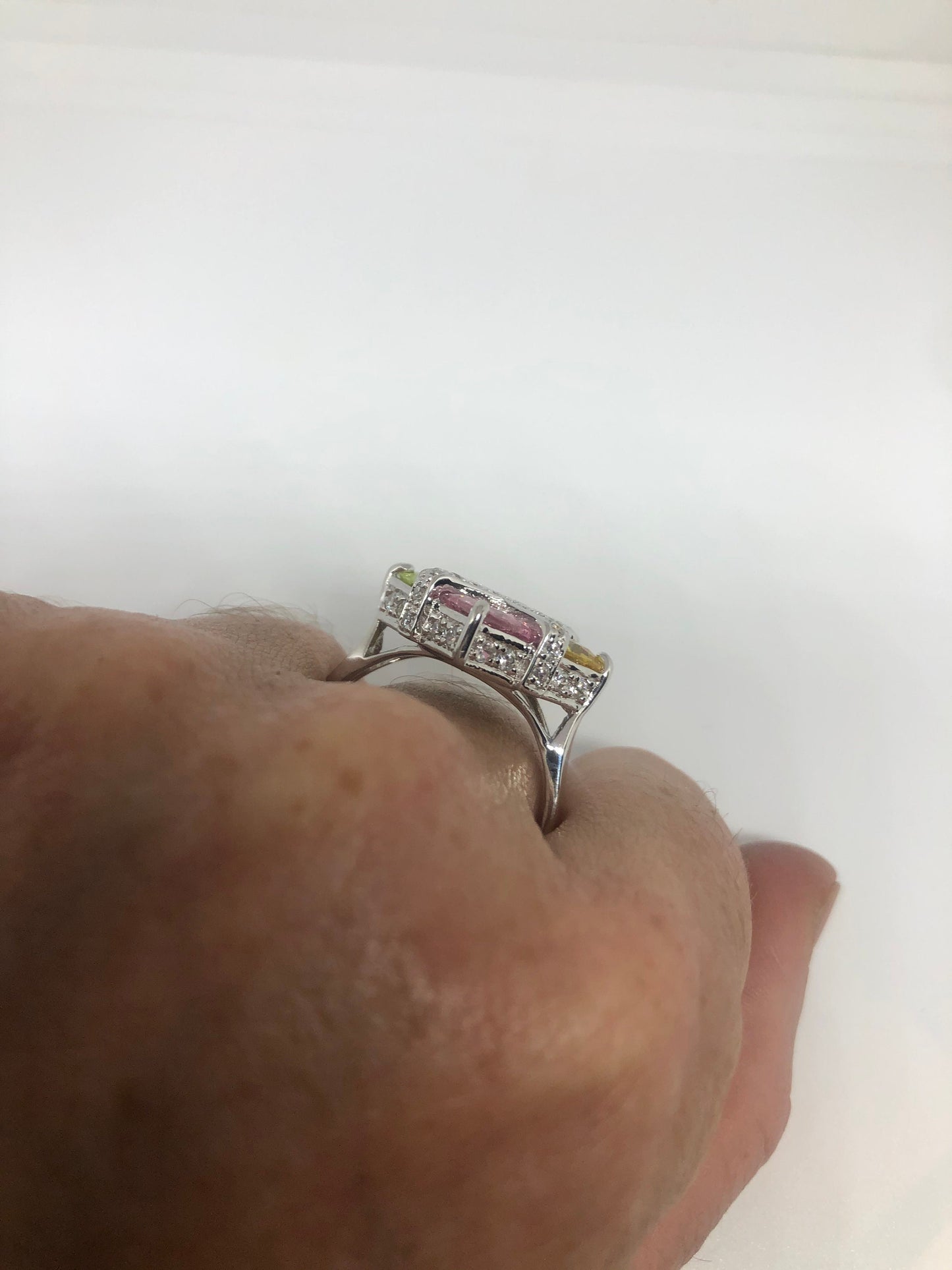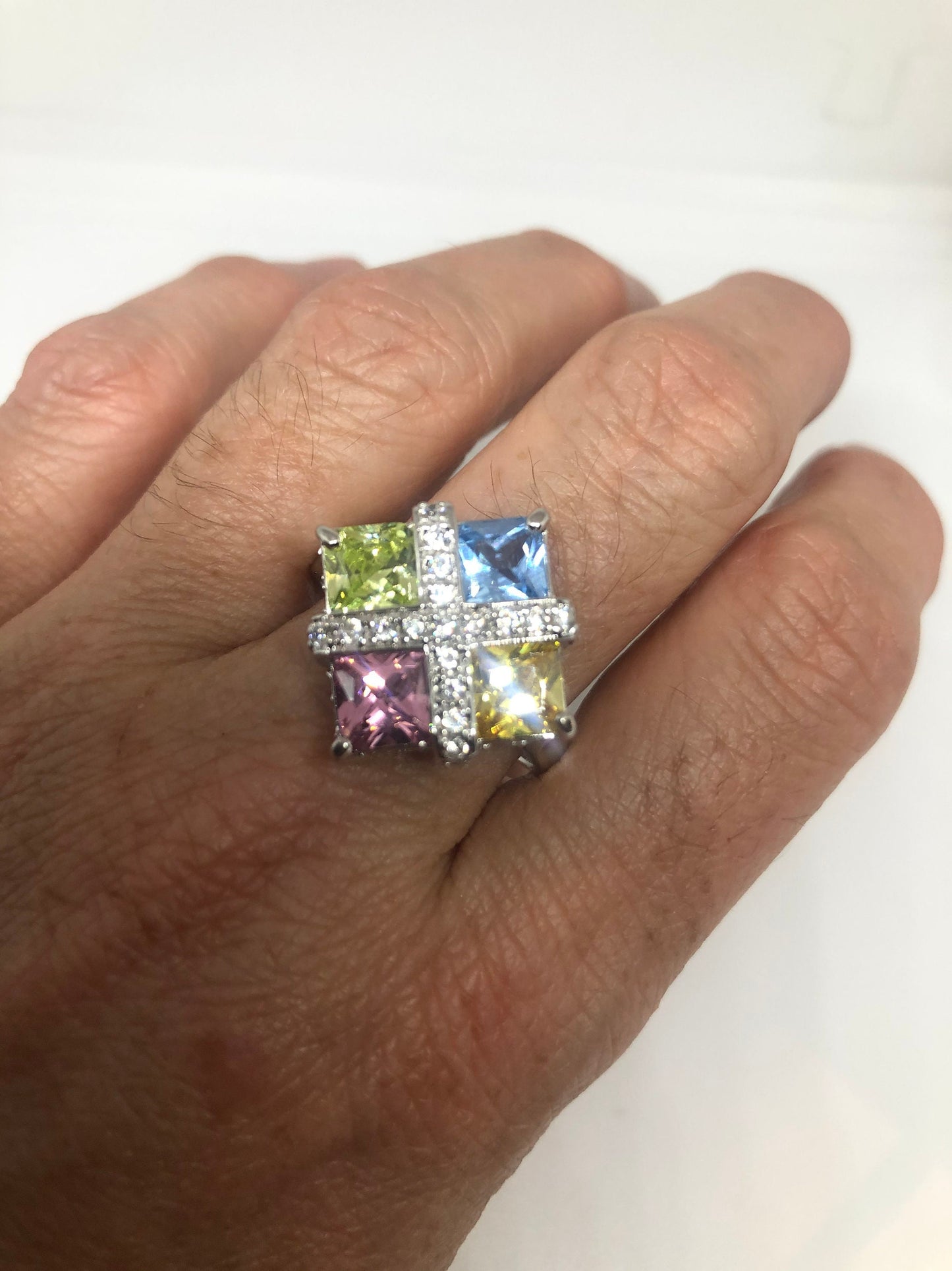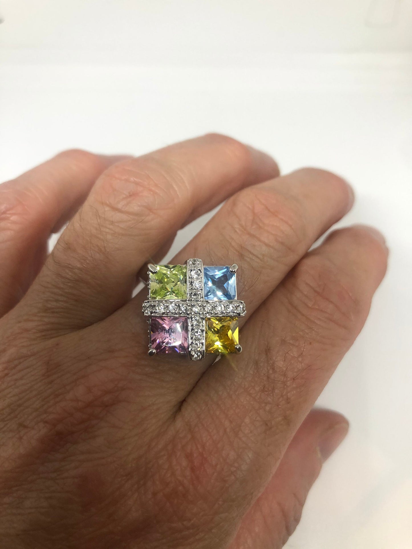 Vintage Mixed Stone 925 Sterling Silver Cocktail Ring Size 11.25