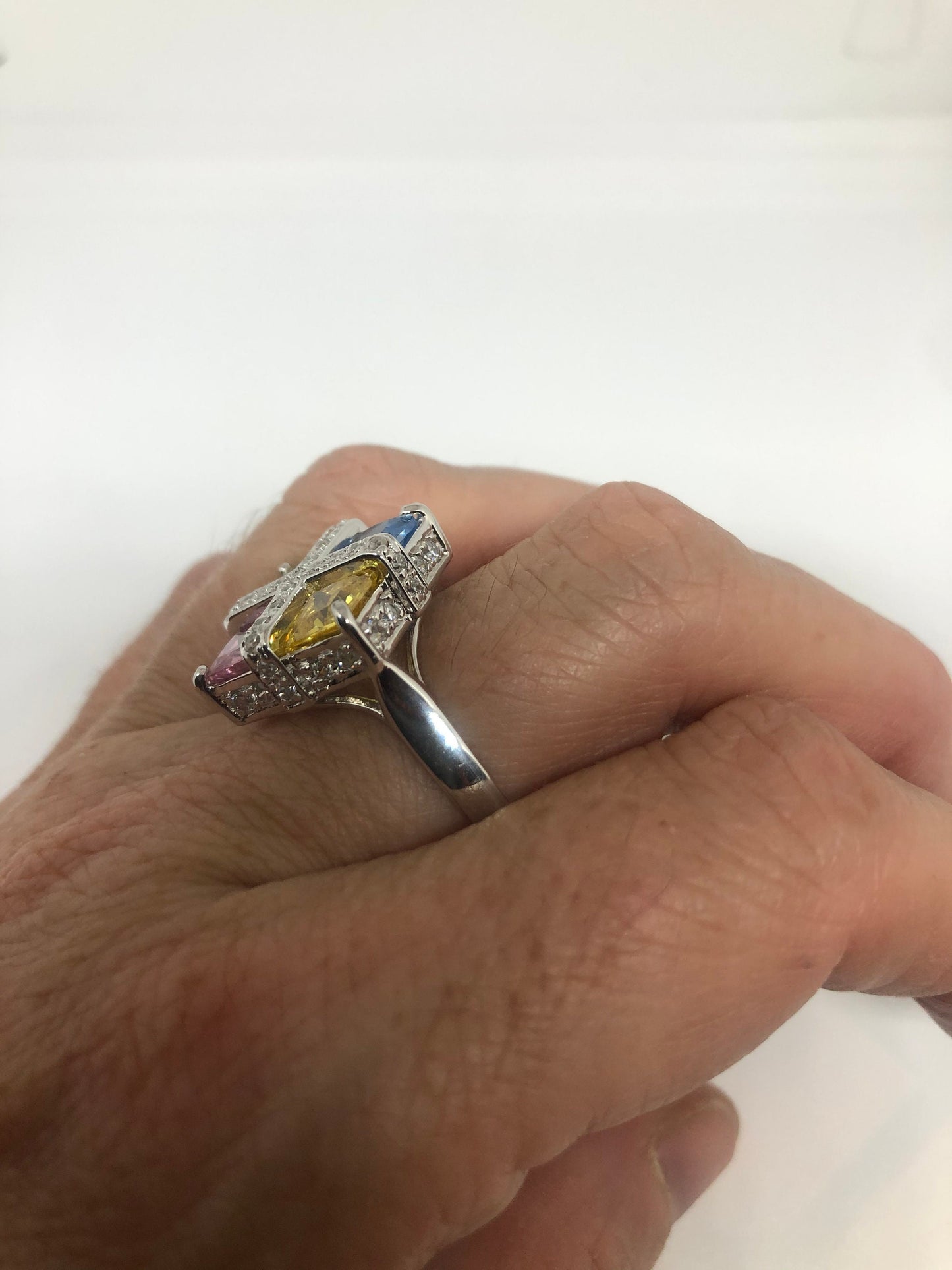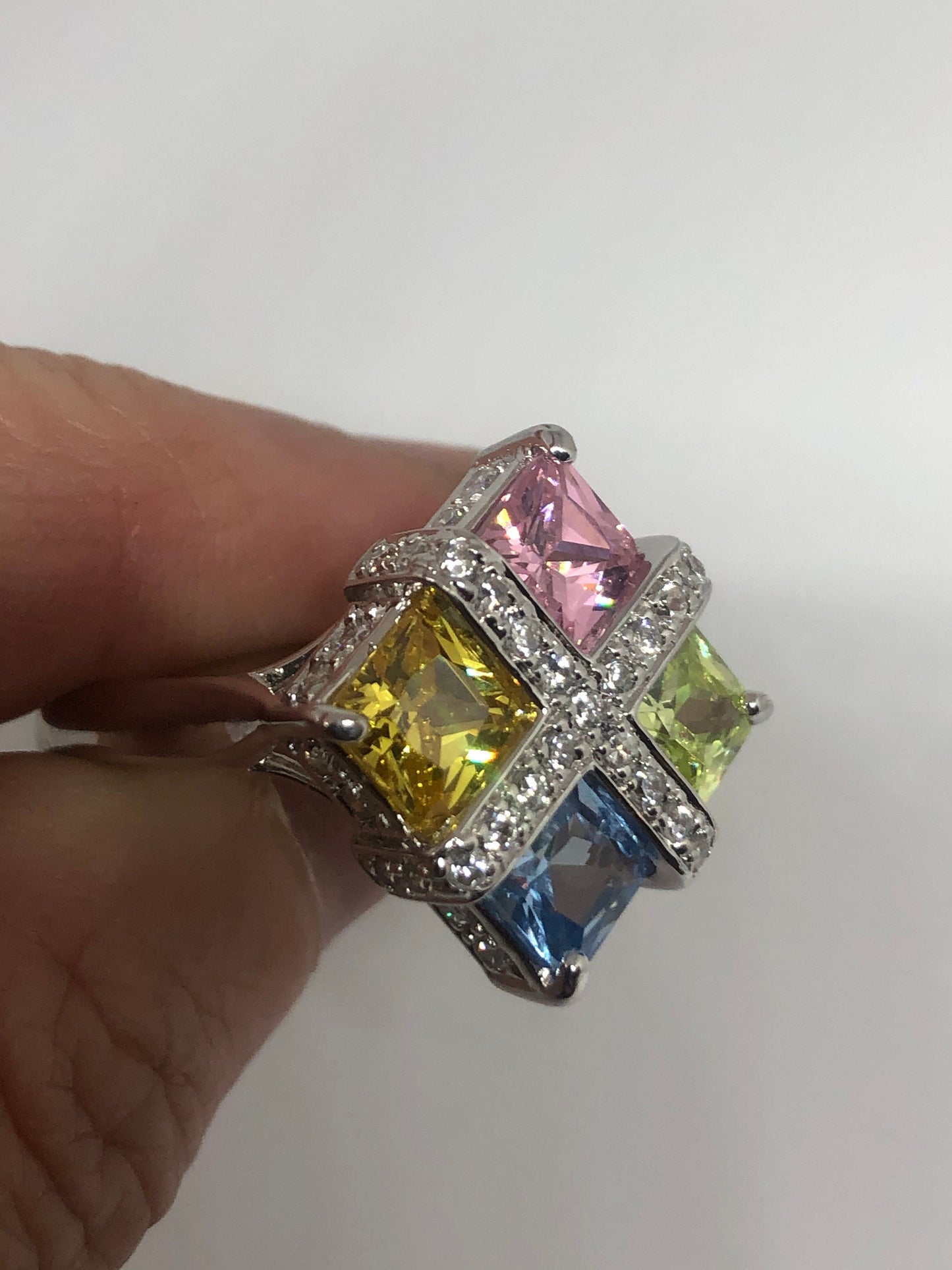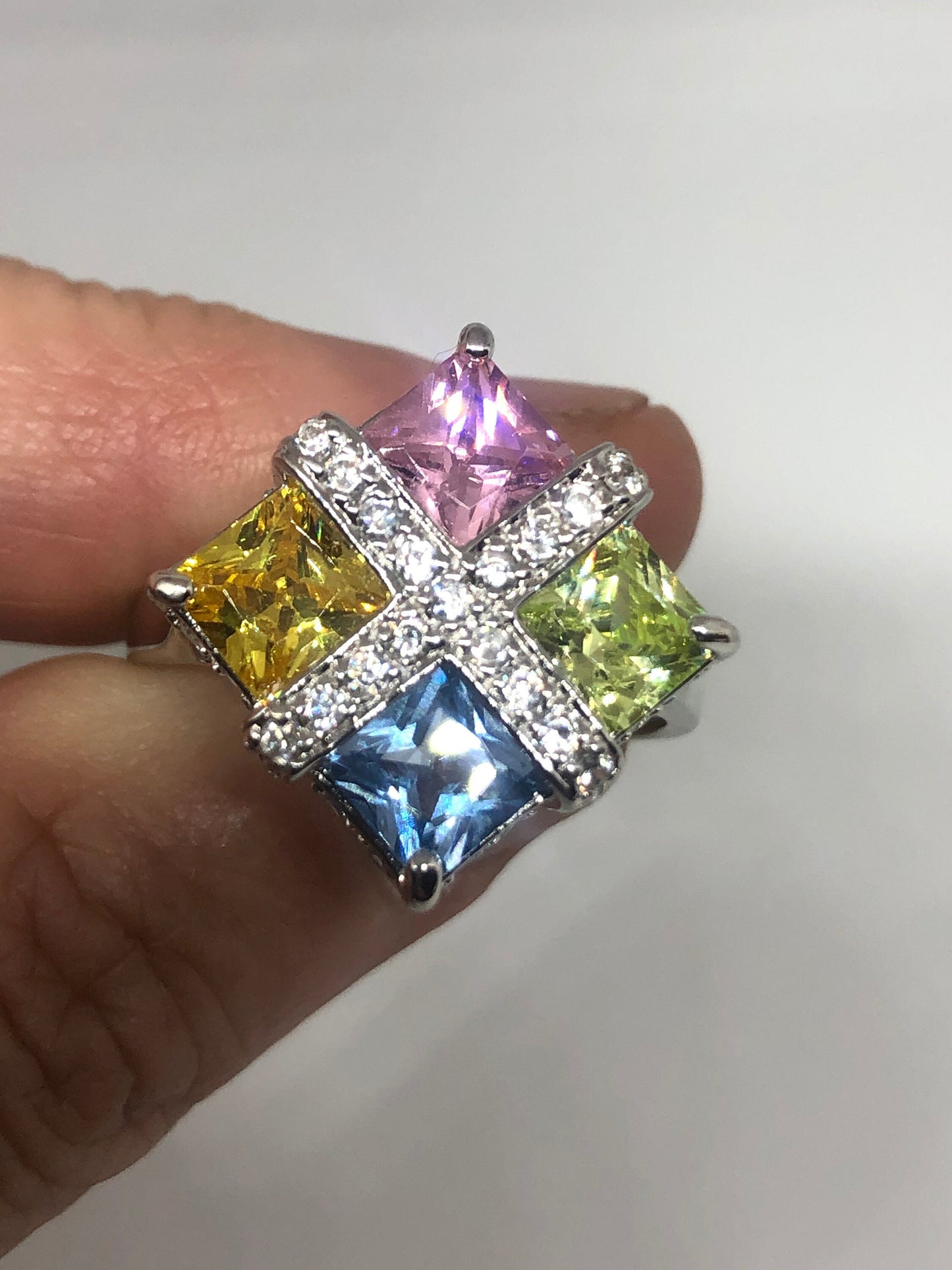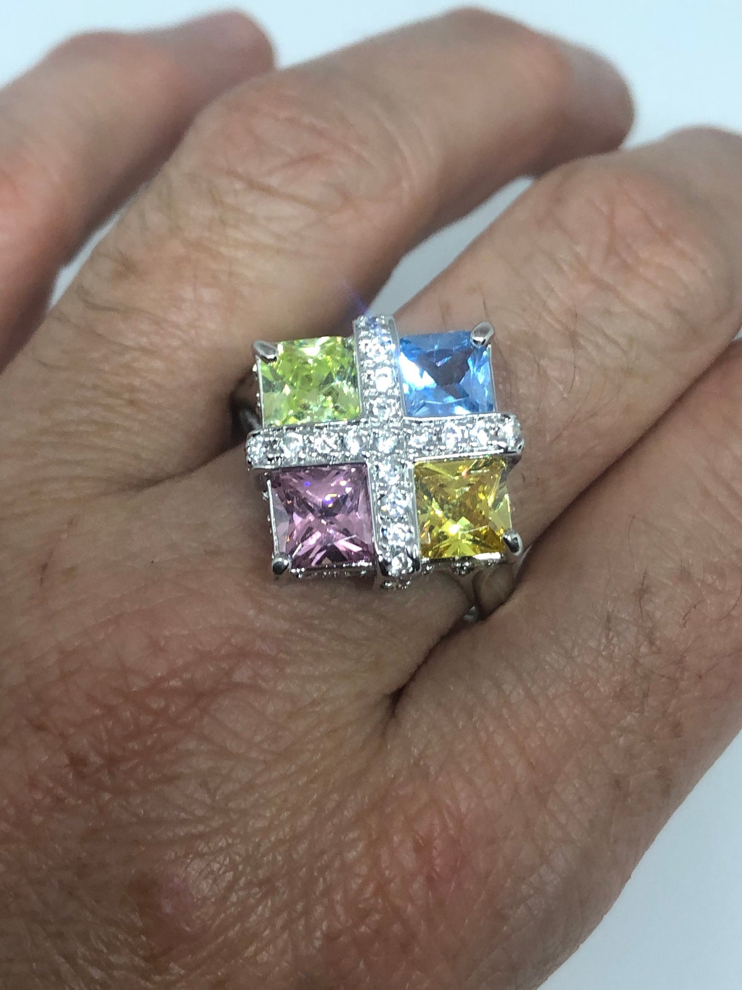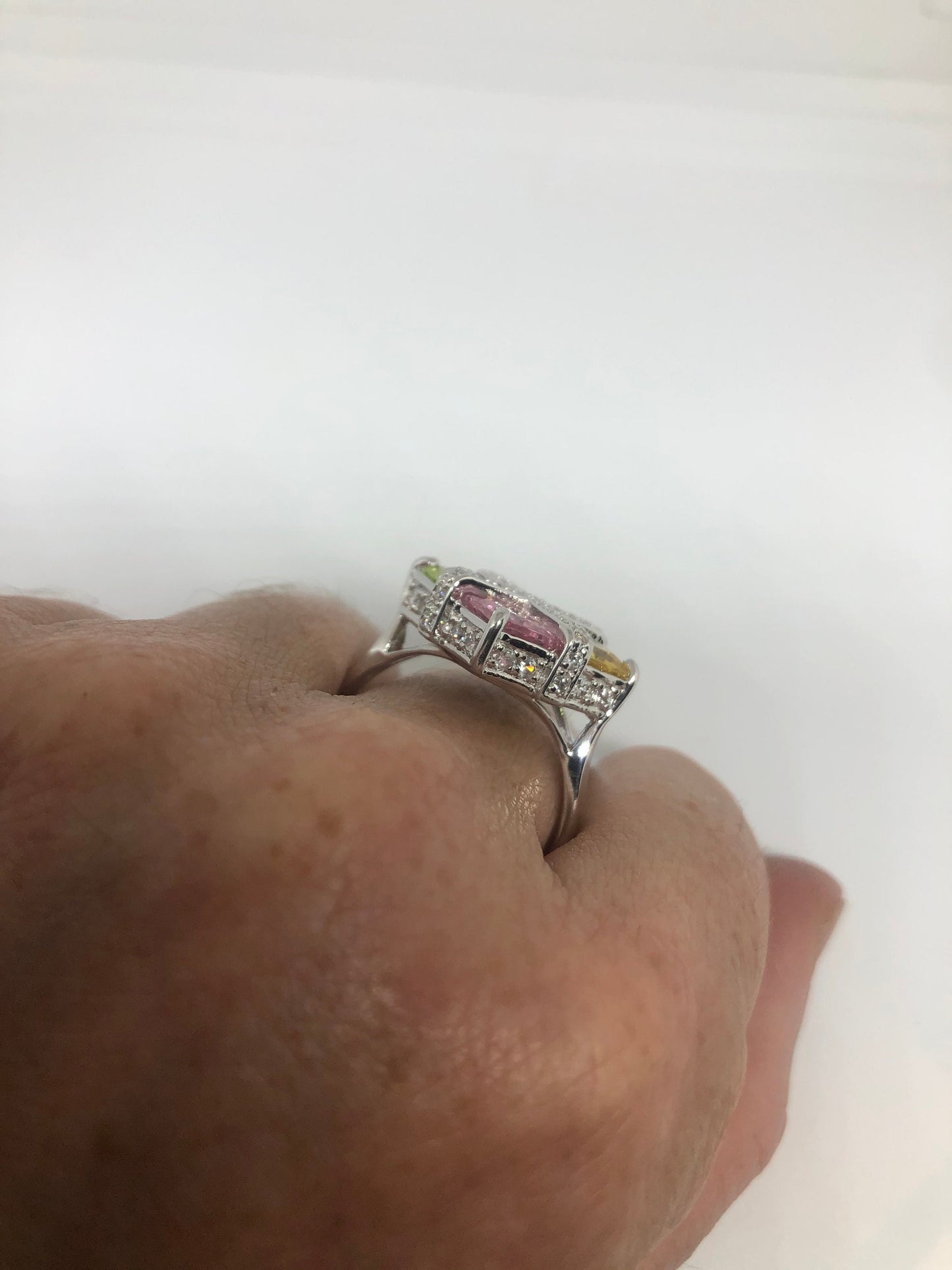 Vintage Mixed Stone 925 Sterling Silver Cocktail Ring Size 11.25
