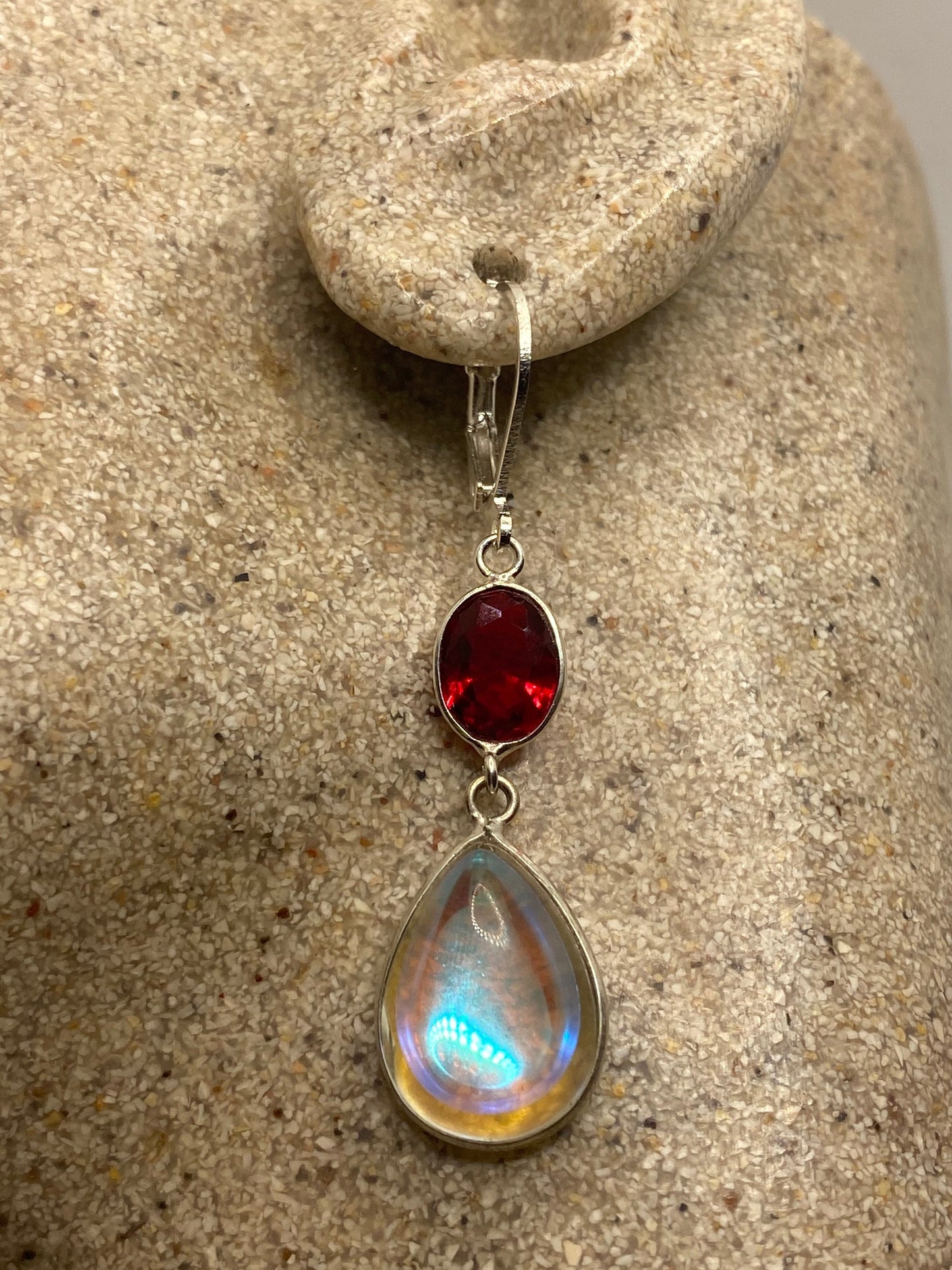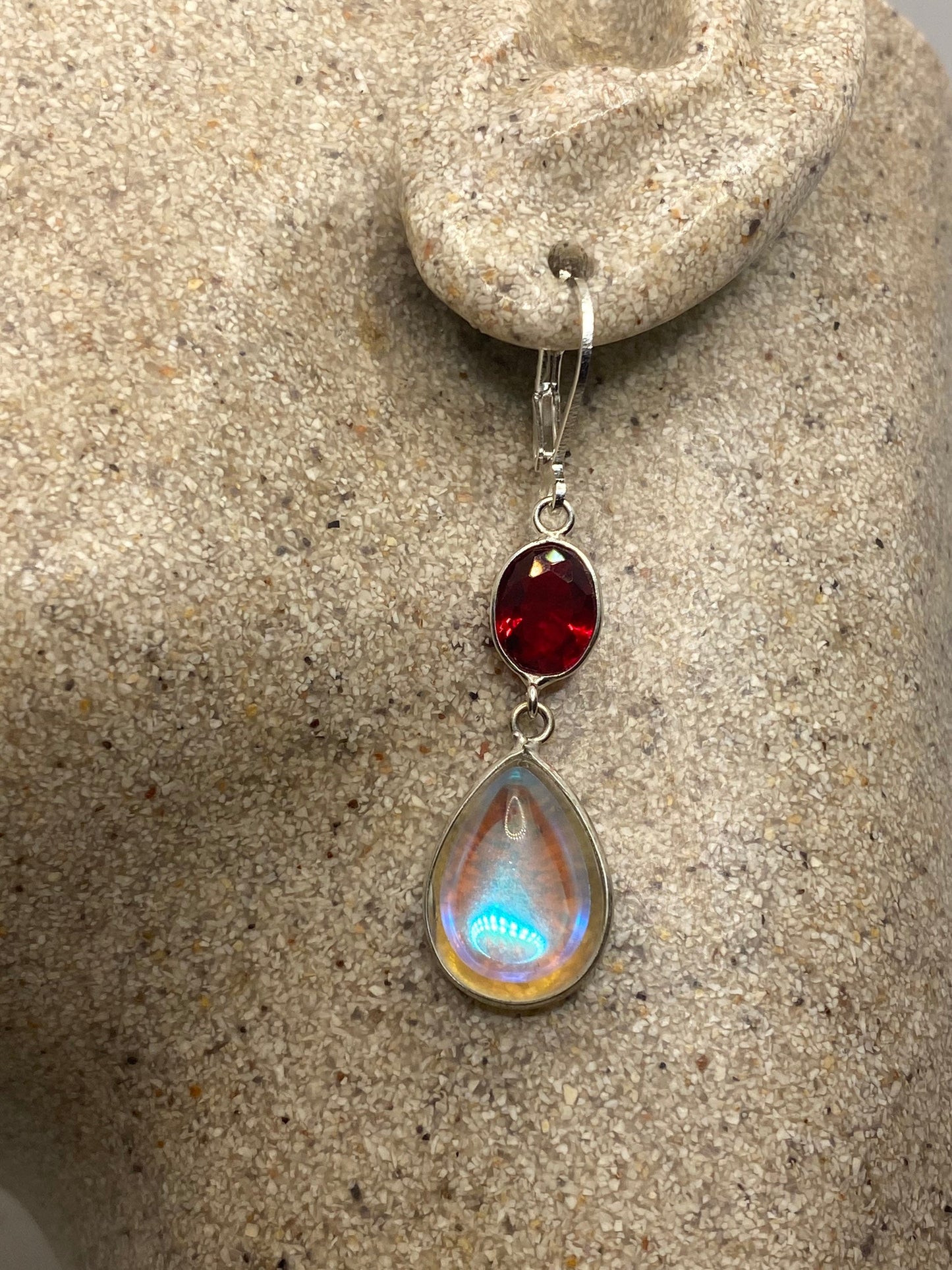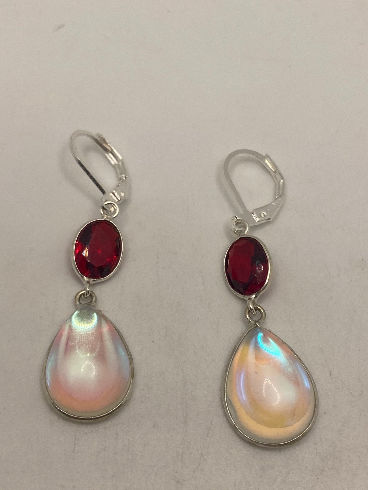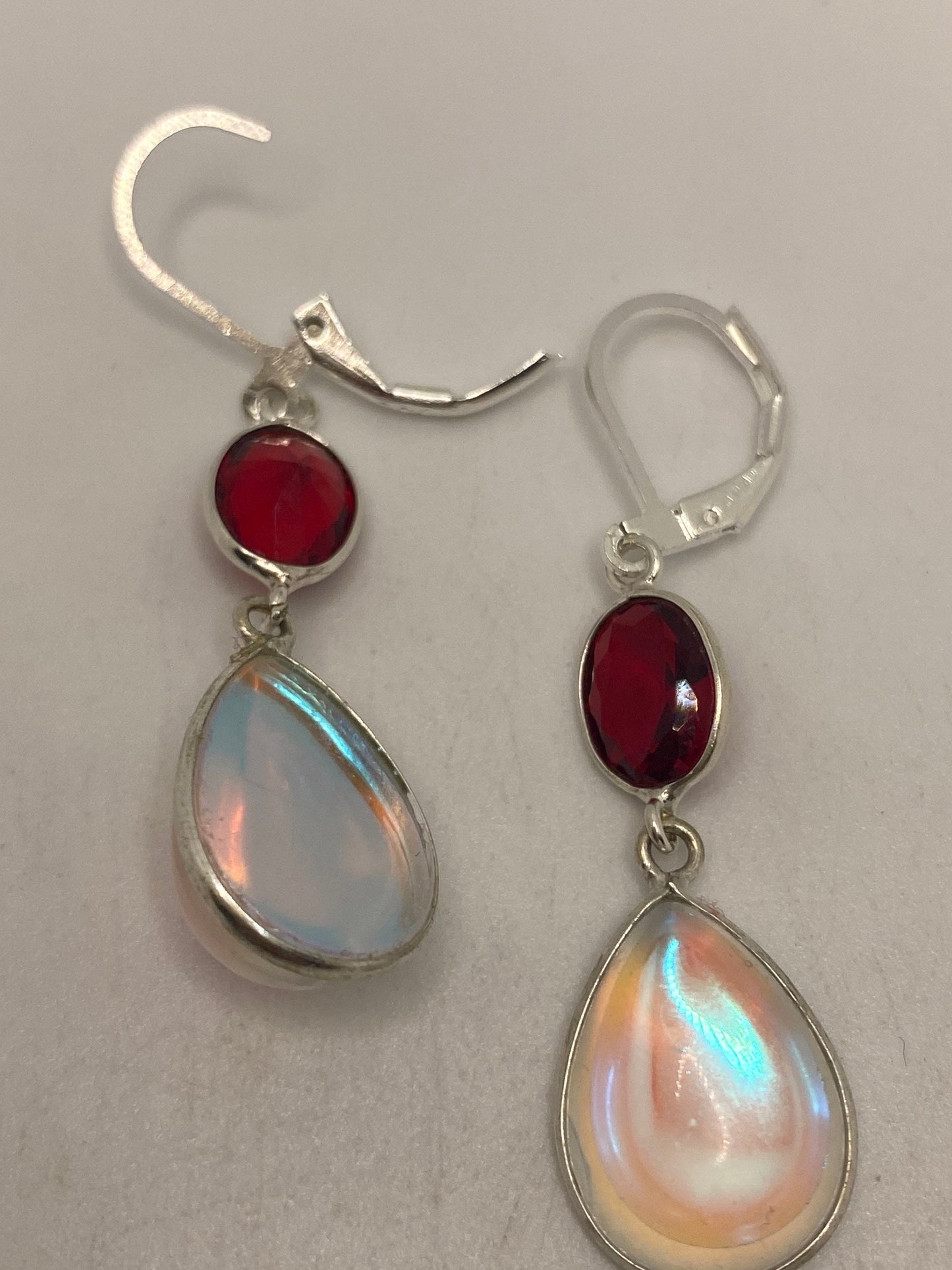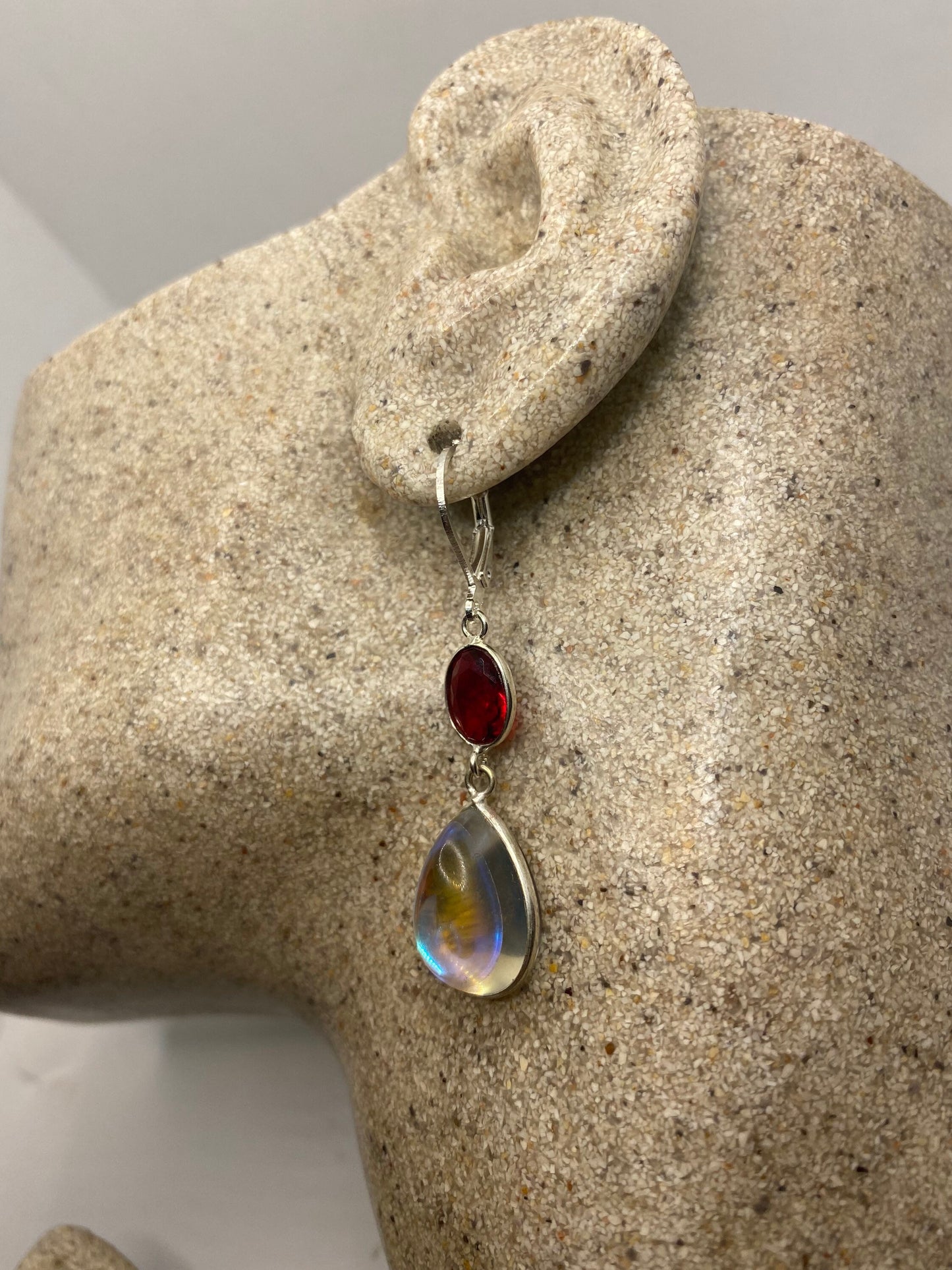 Vintage Opal Glass Silver Dangle Earrings Chandelier