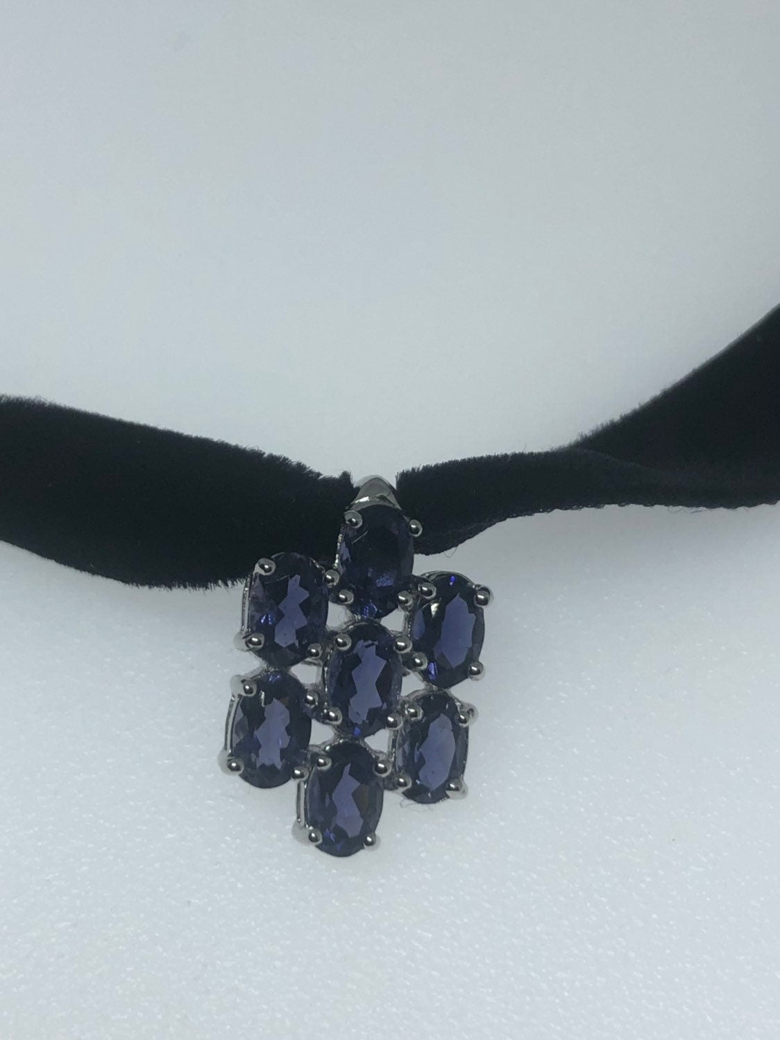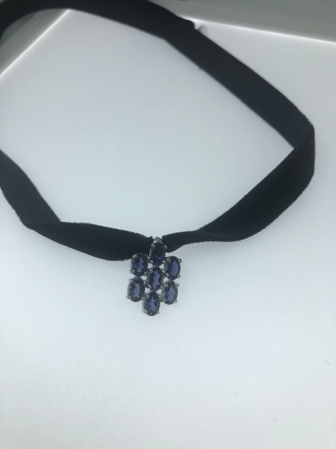 Vintage Pale Blue Genuine Iolite Antique 925 Sterling Silver Necklace