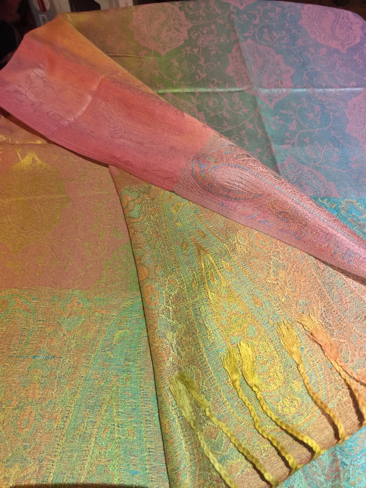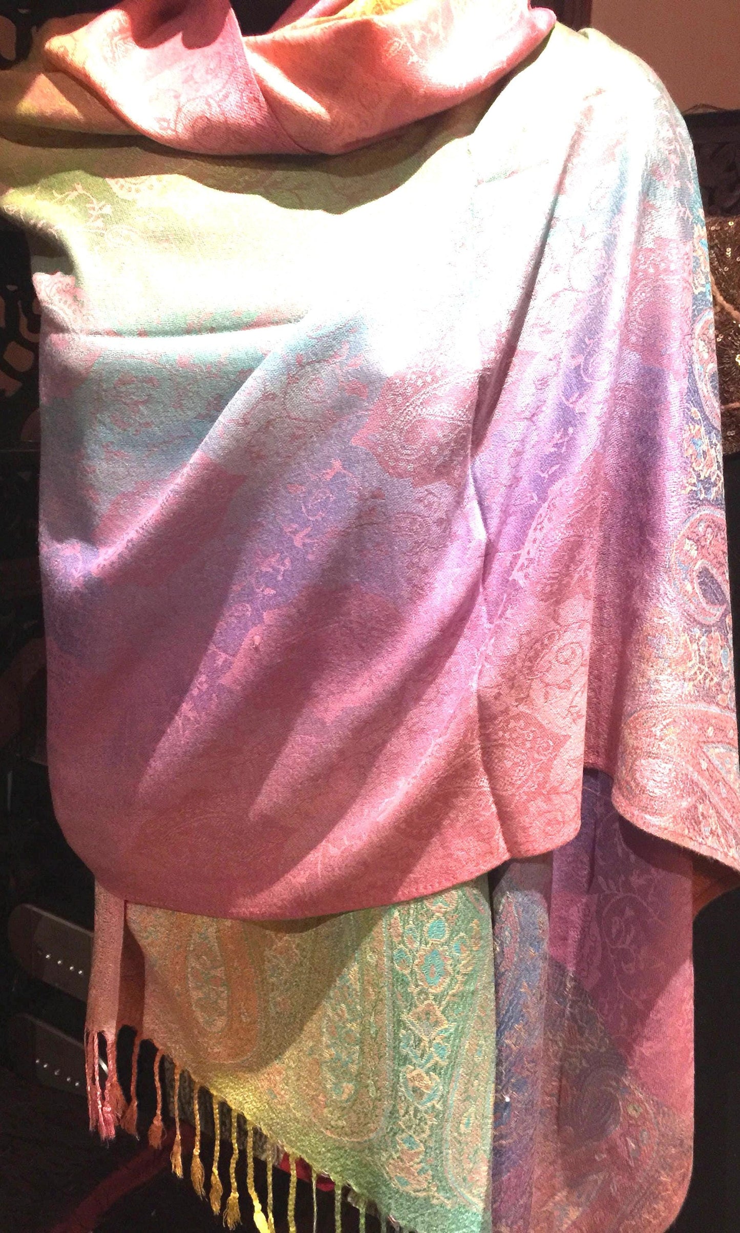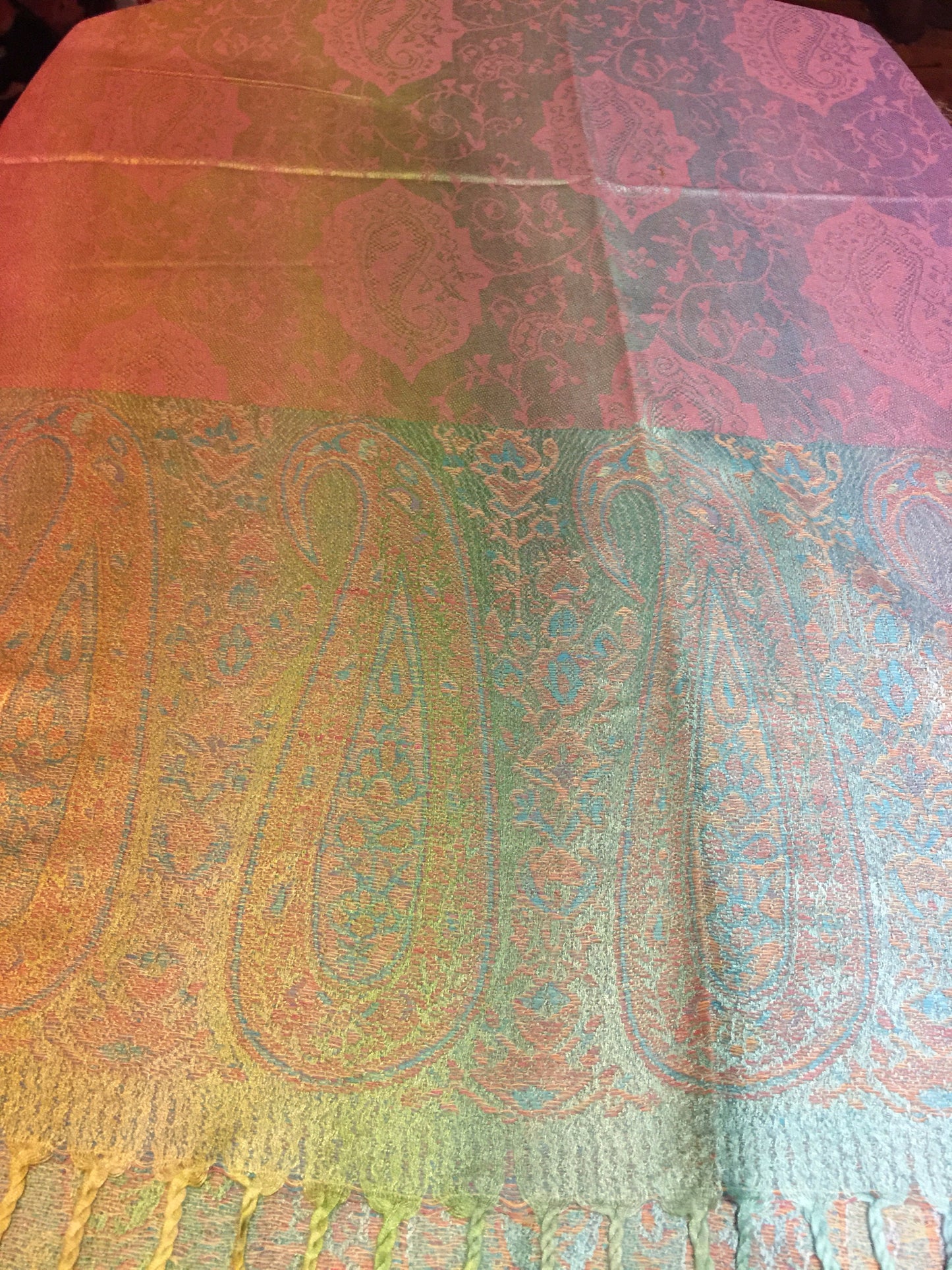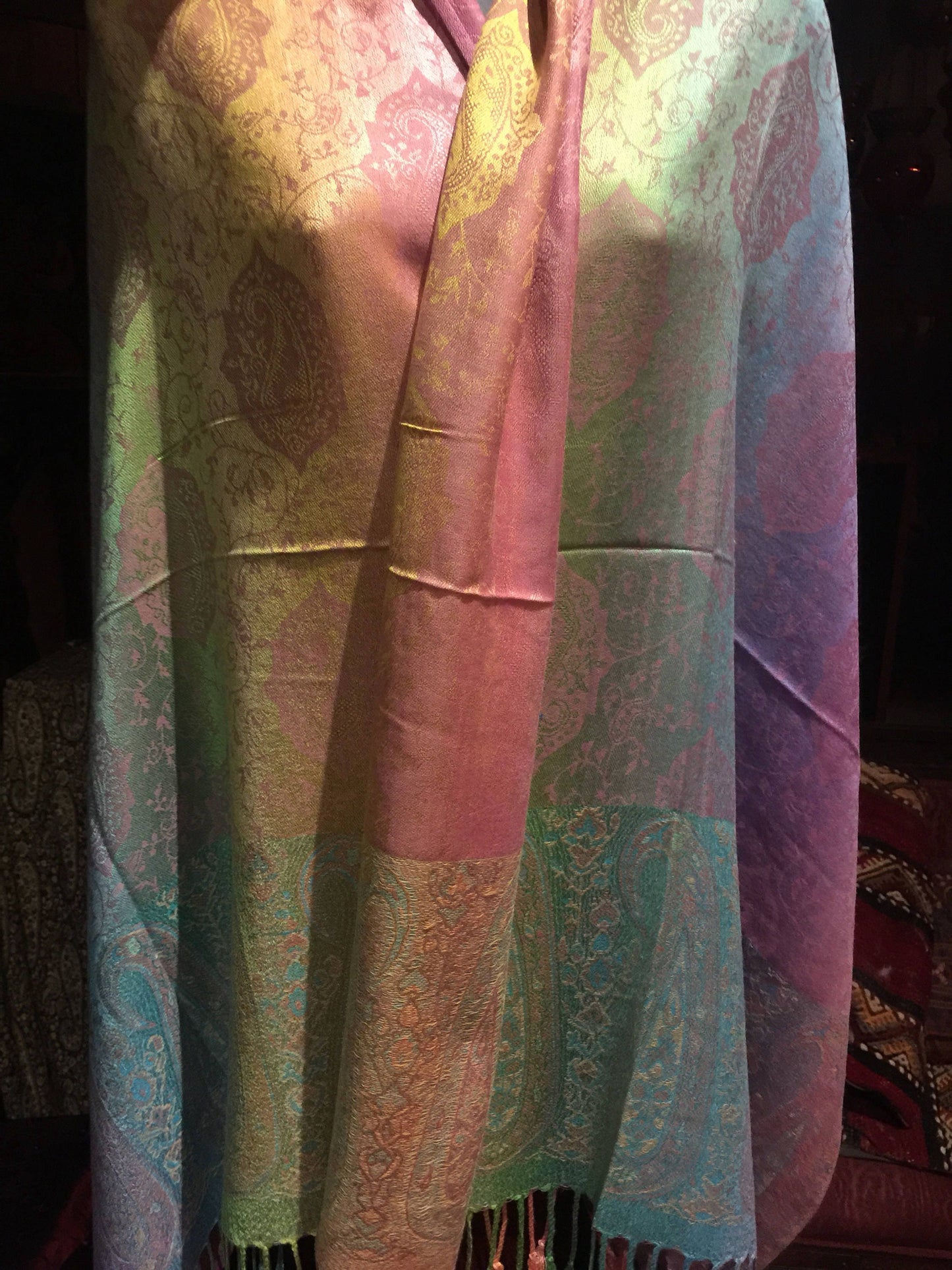 Vintage Pastel Rainbow pride Paisley Brocade Pashmina Scarf Wrap Shawl