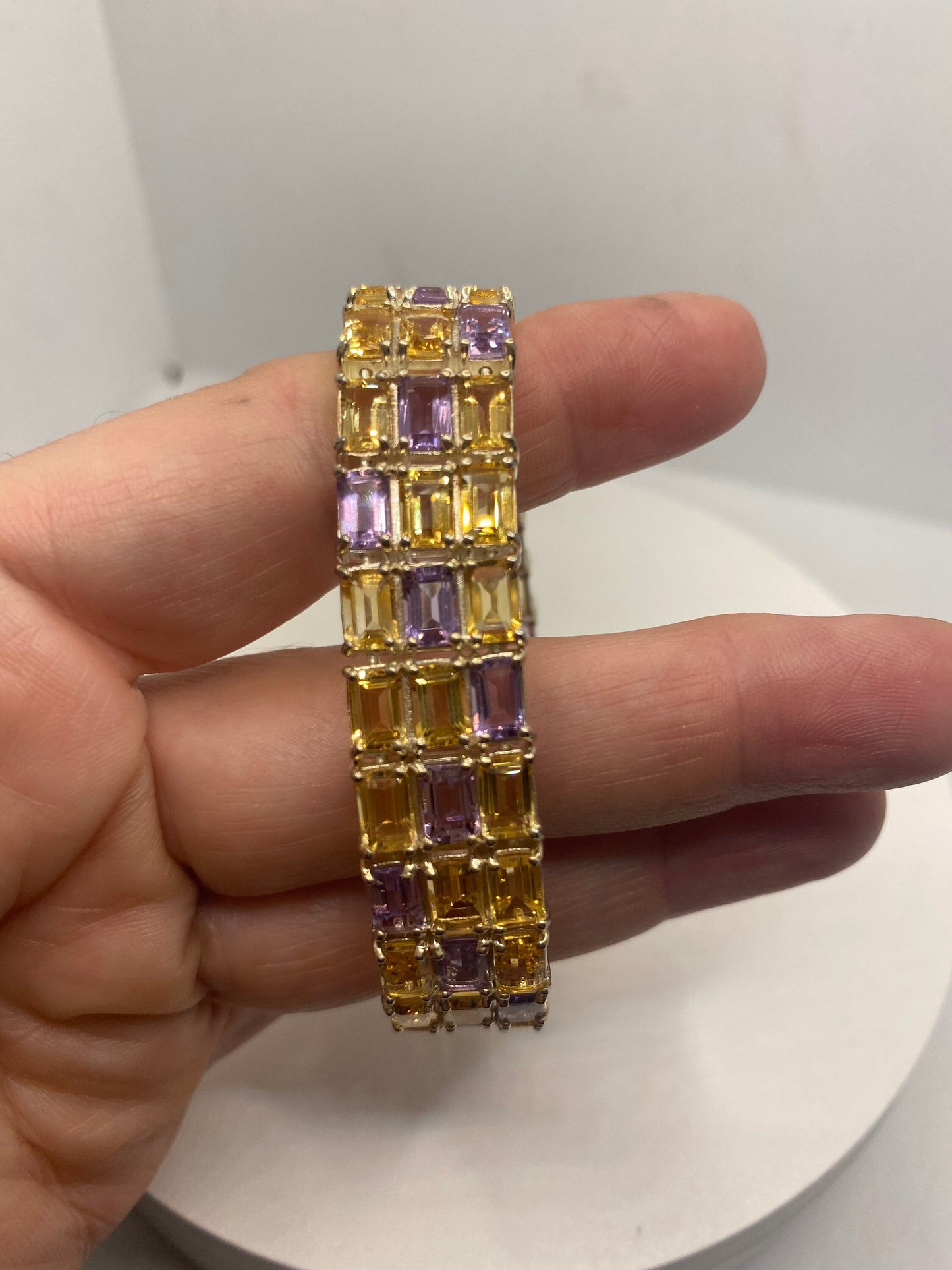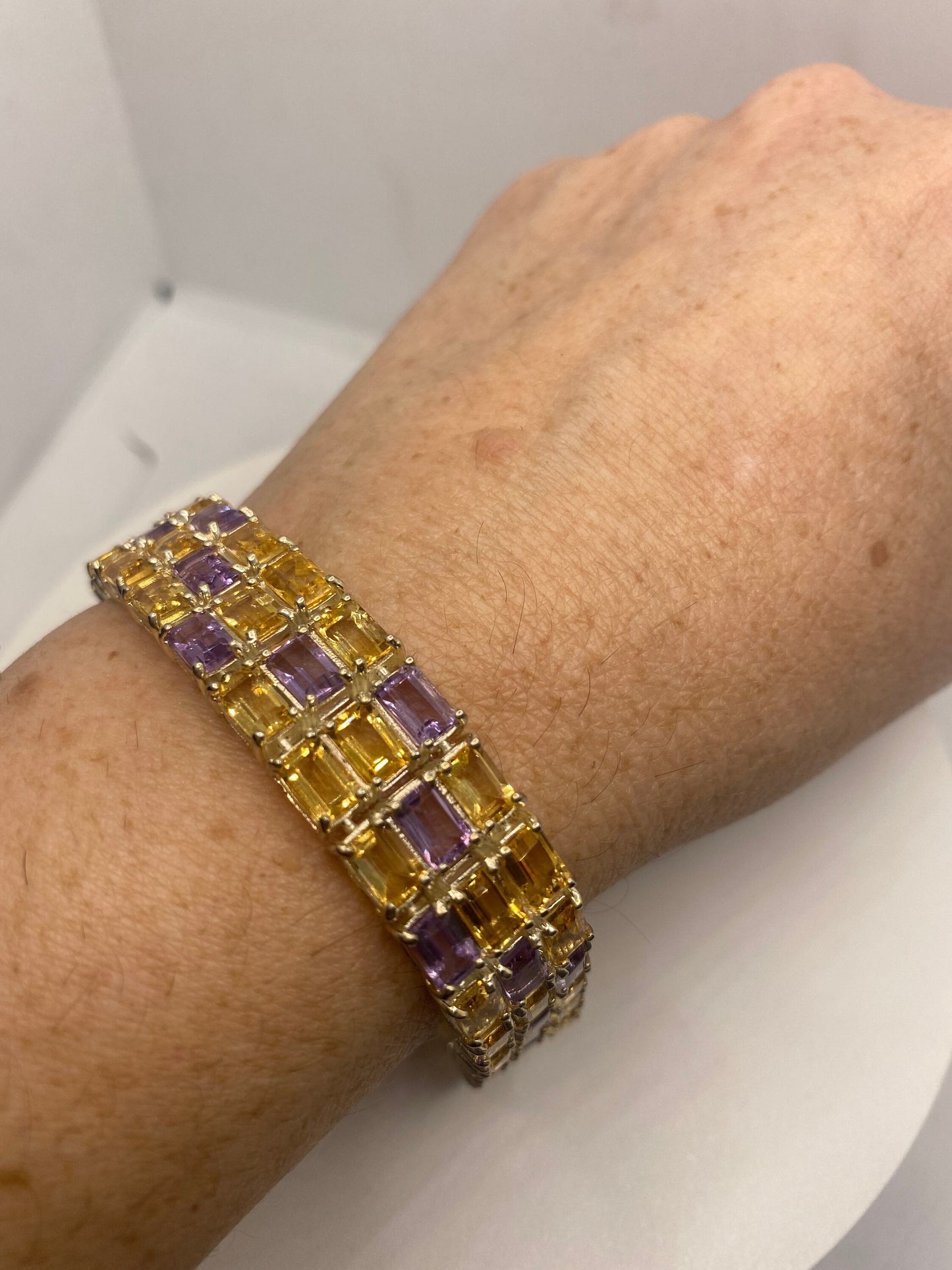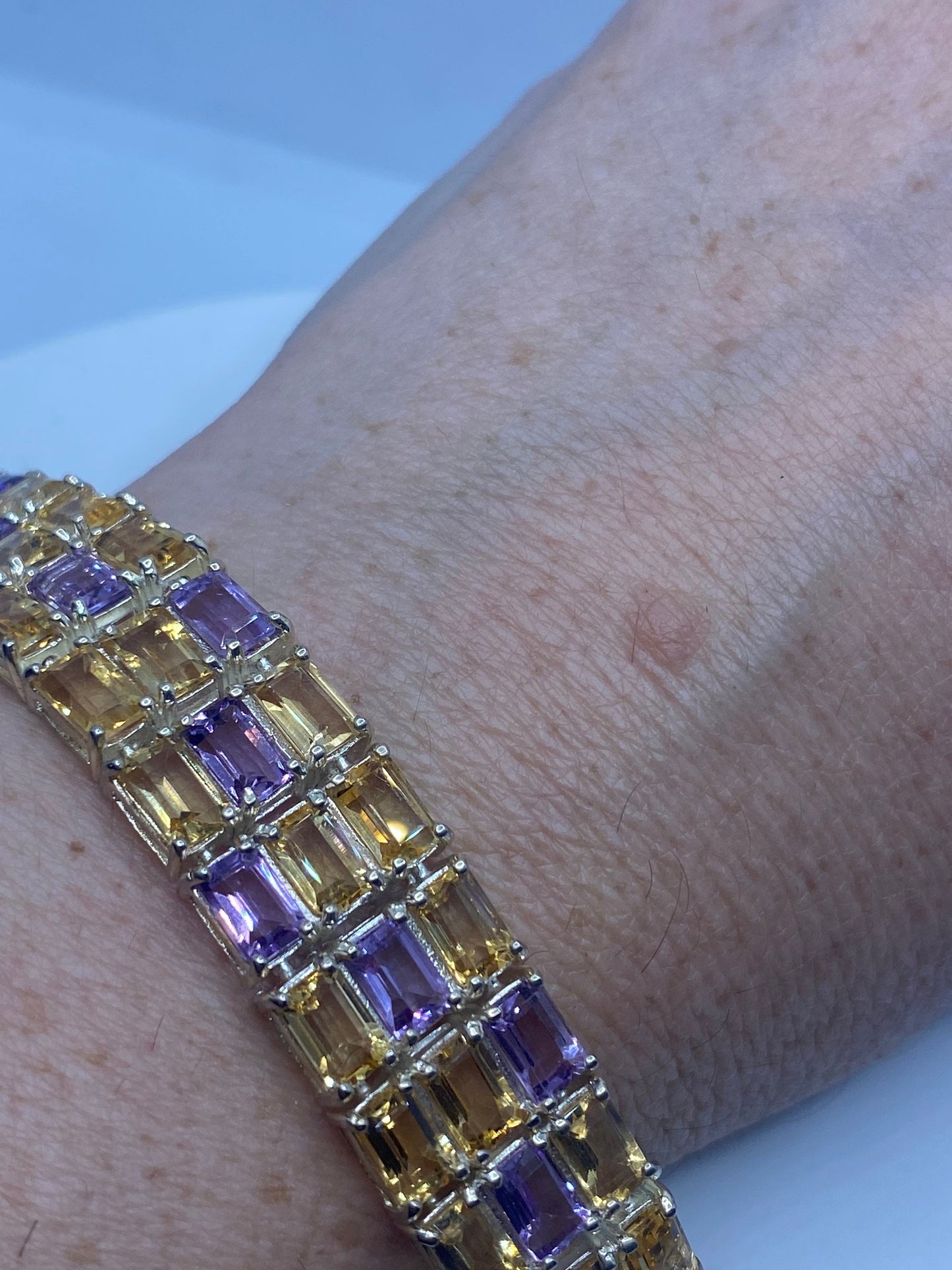 Vintage purple amethyst and citrine bracelet 925 sterling silver