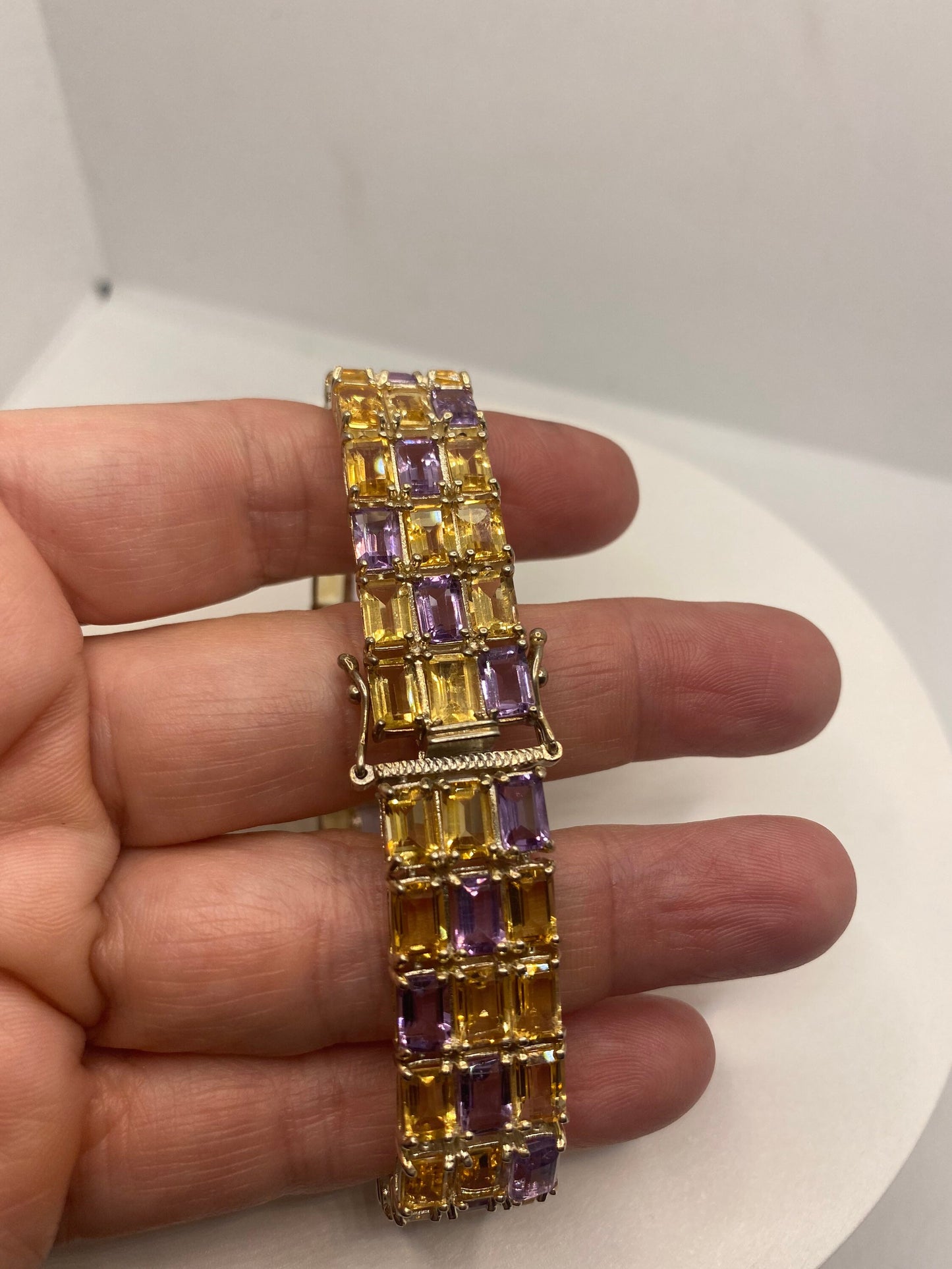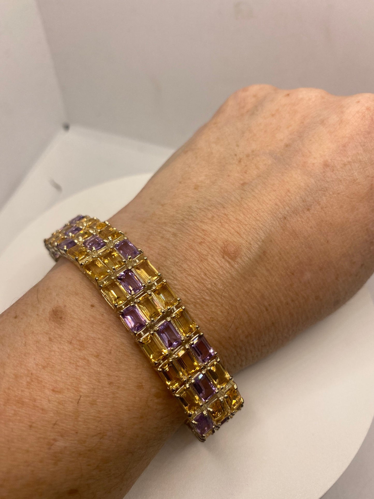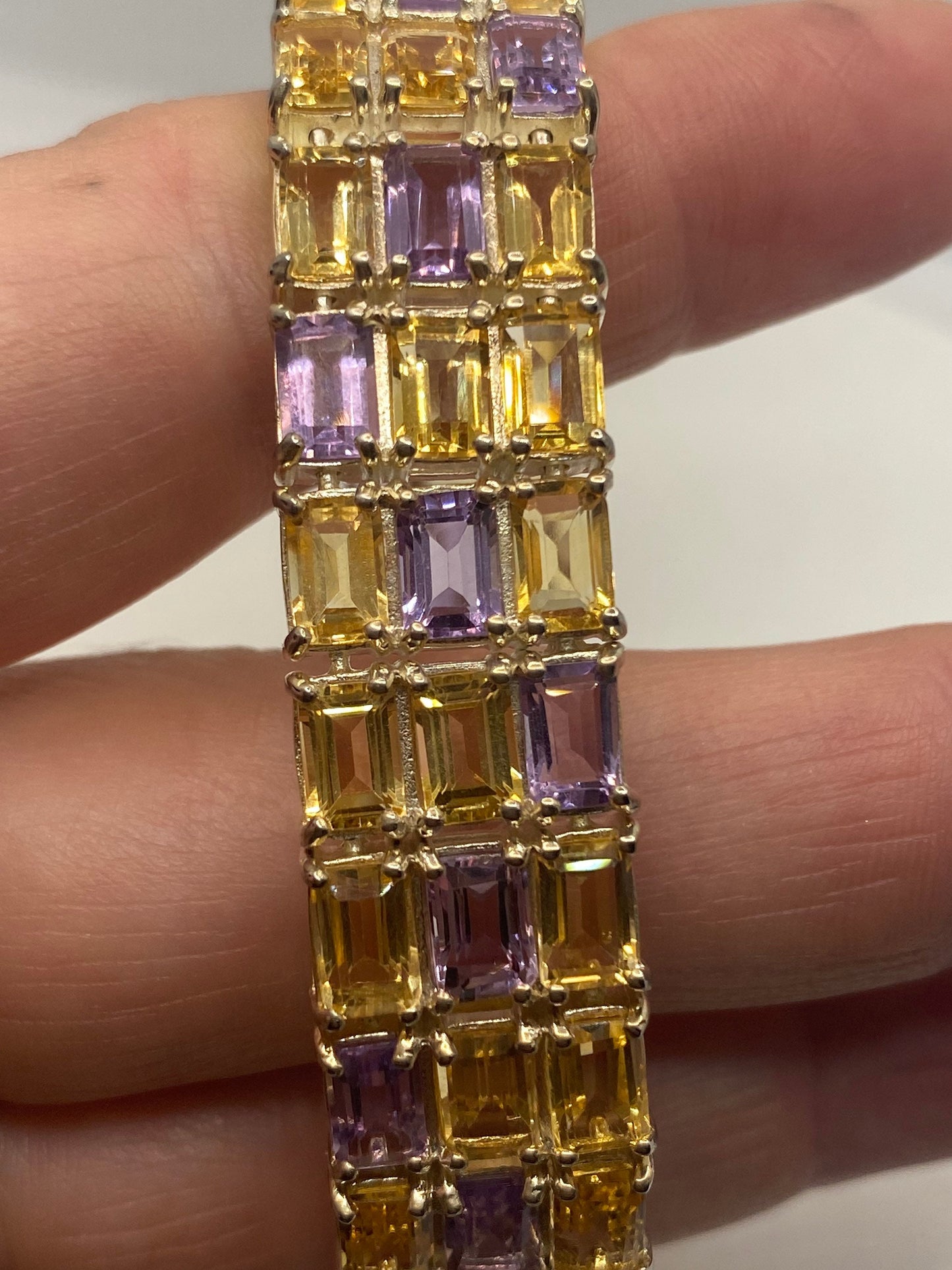Vintage purple amethyst and citrine bracelet 925 sterling silver