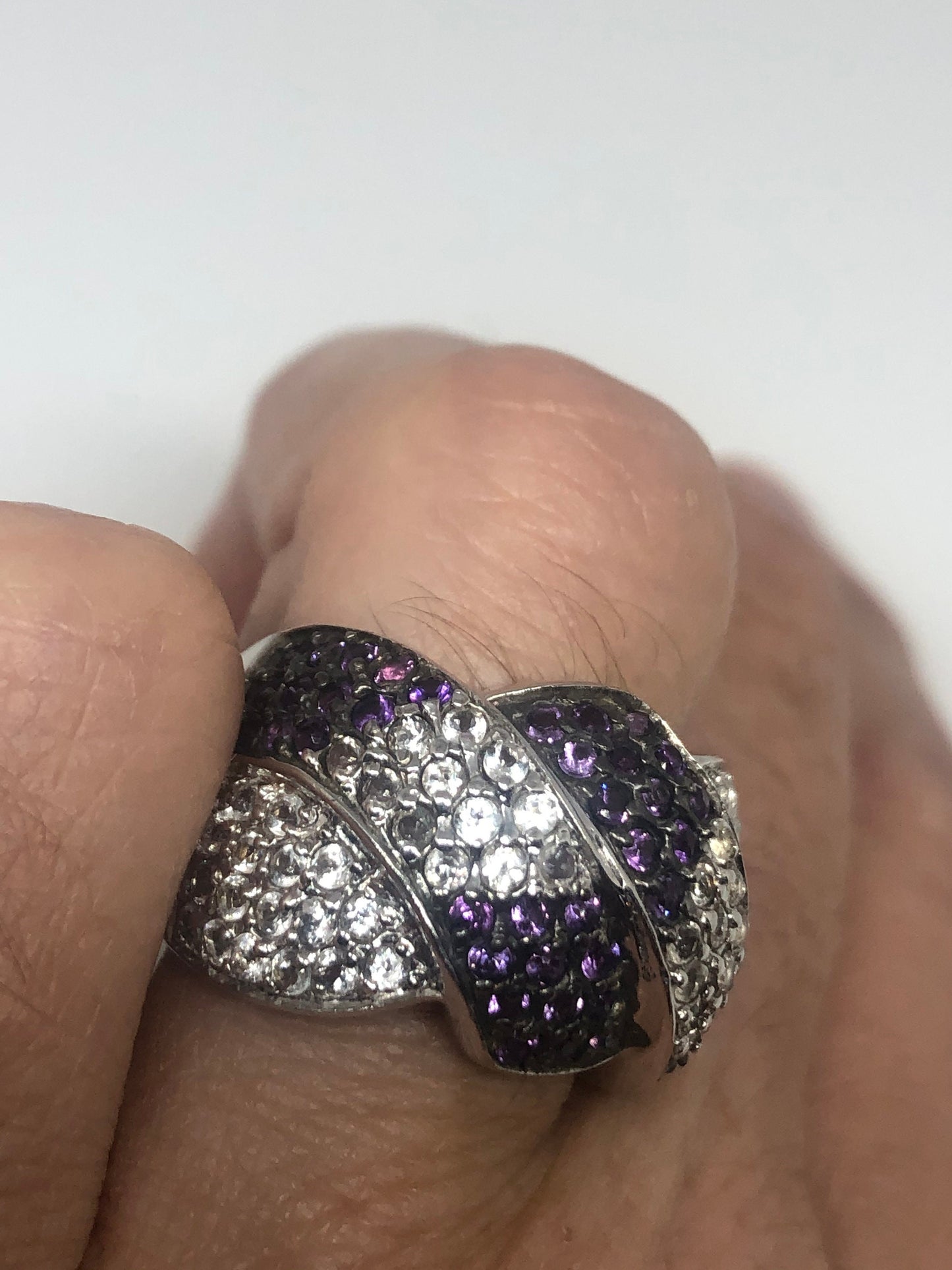 Vintage Purple Amethyst Ring 925 Sterling Silver Gothic Size 7