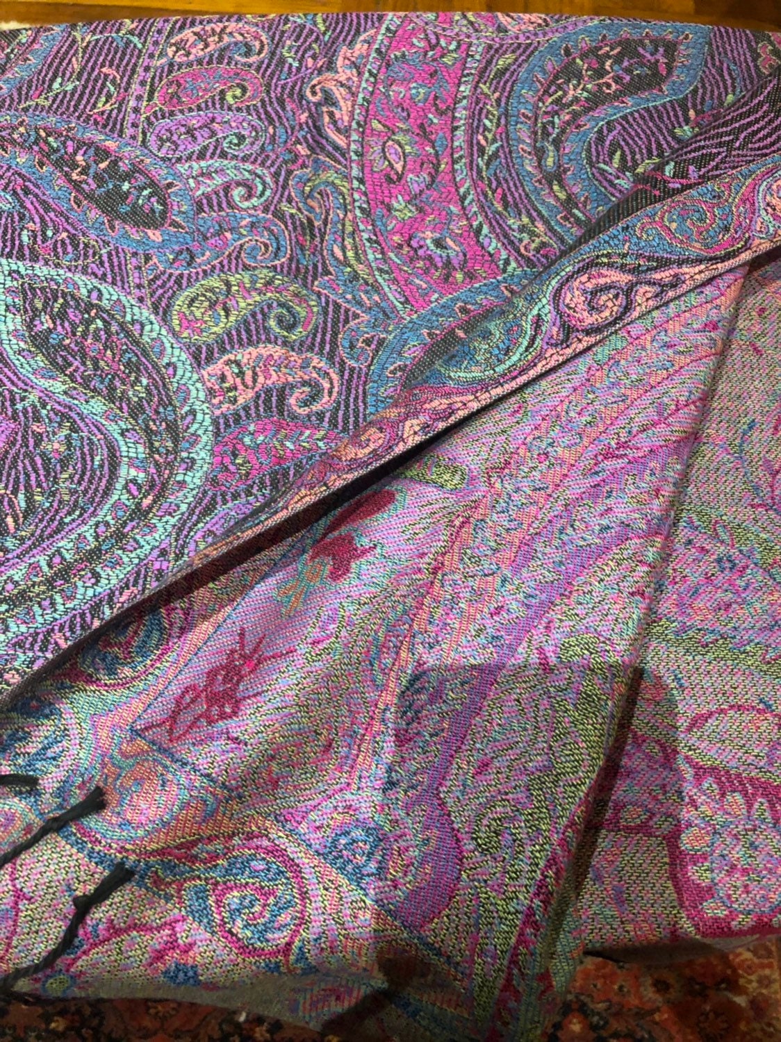 Vintage purple Paisley Brocade Pashmina Scarf Wrap