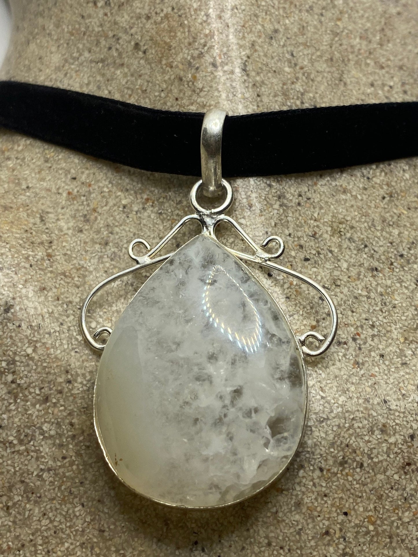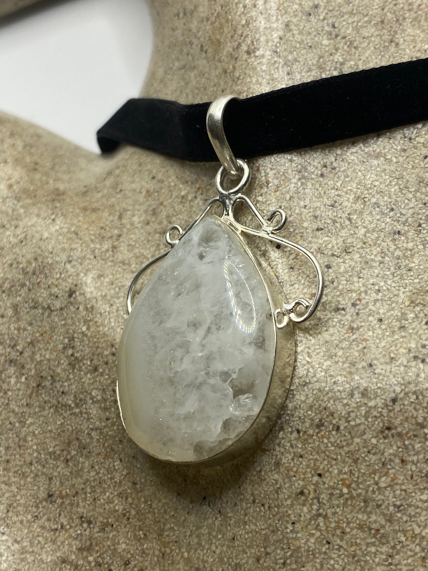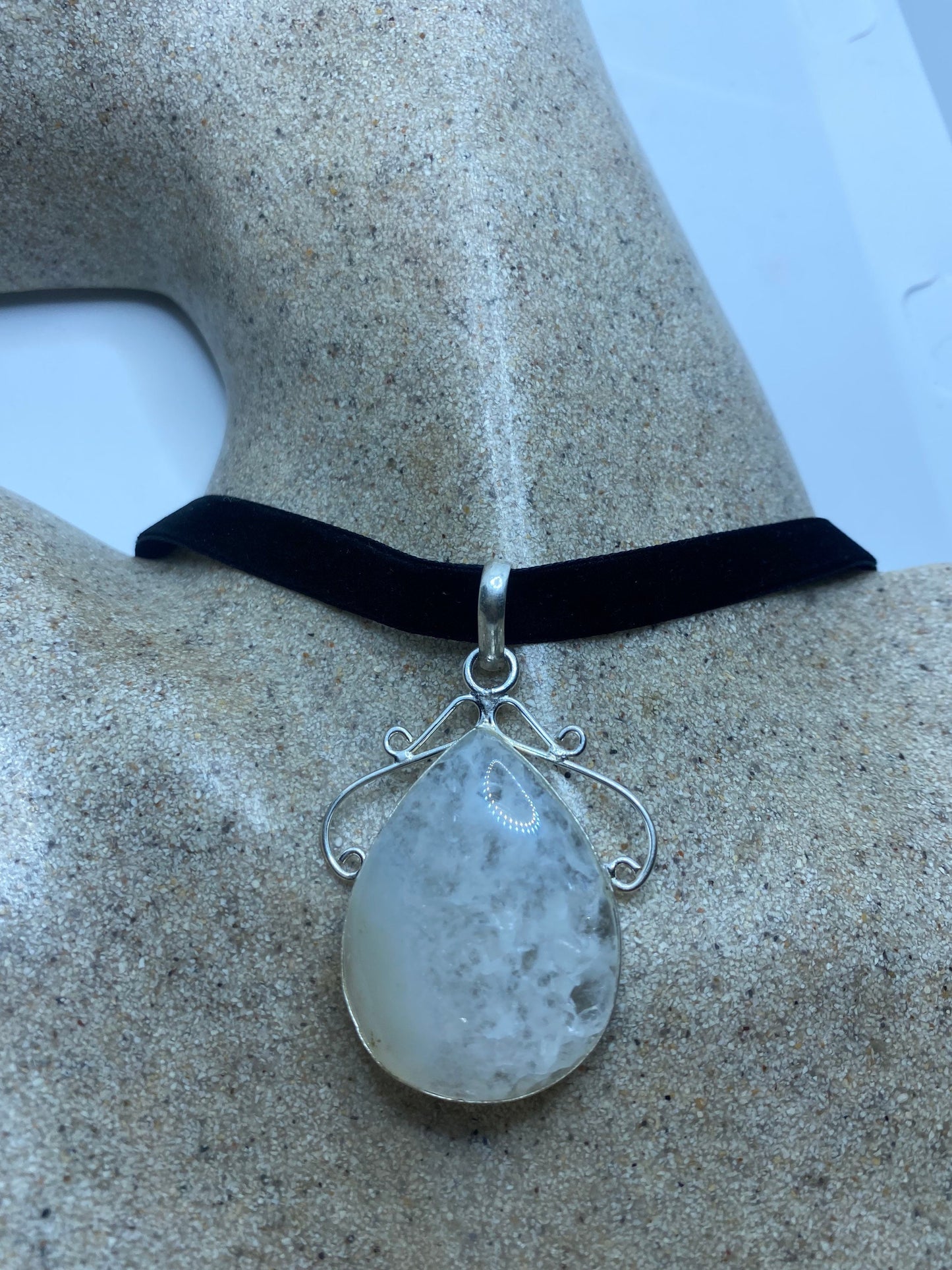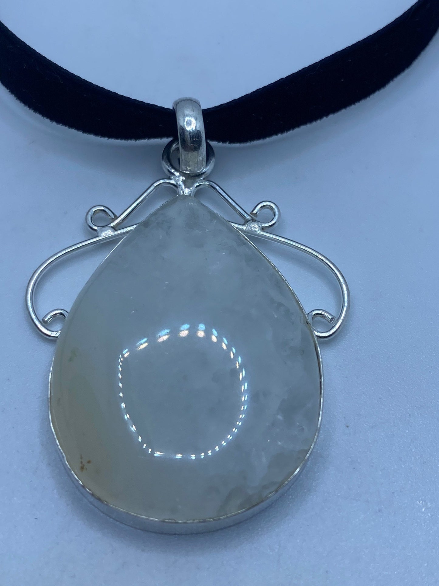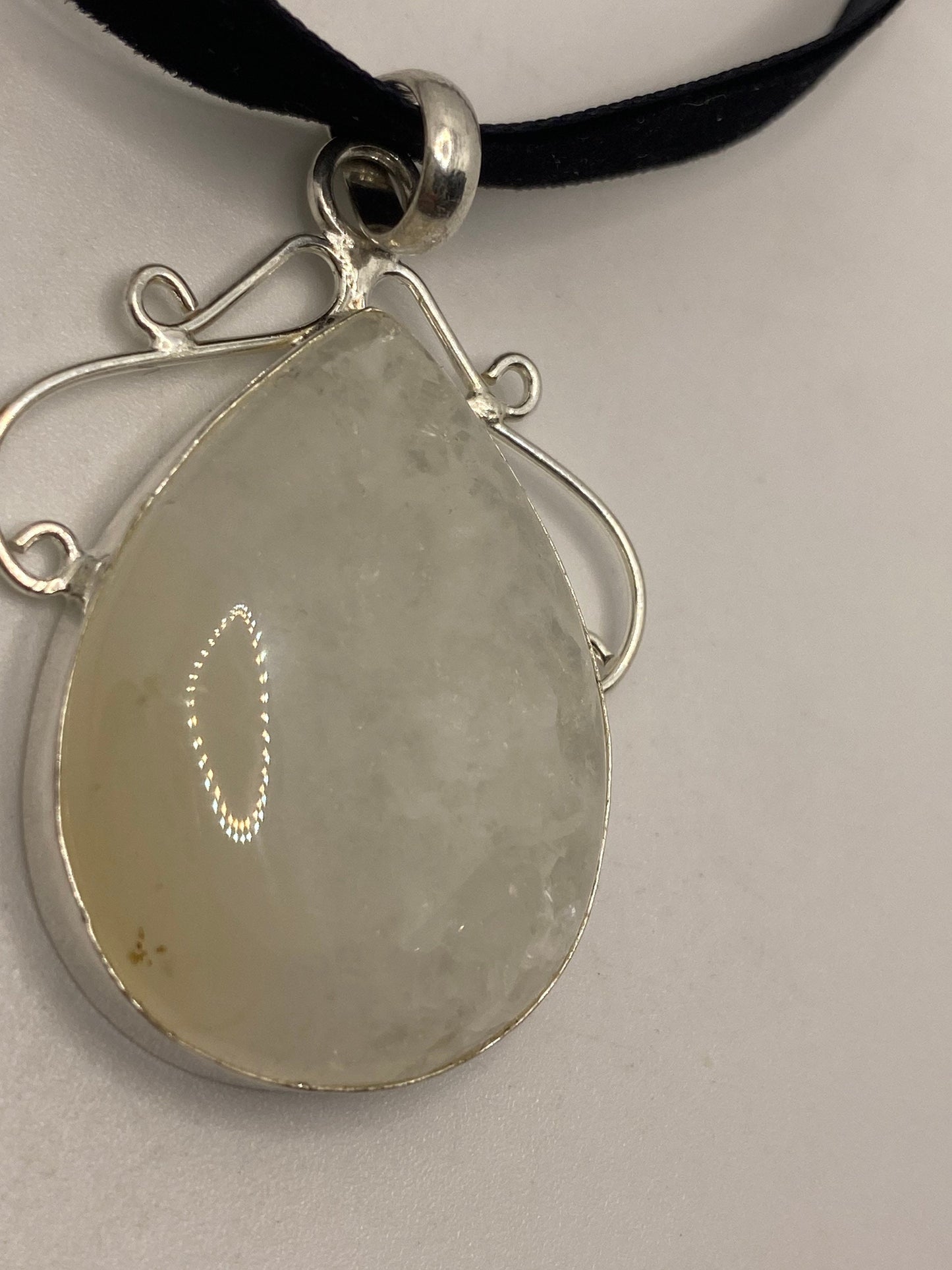 Lovely vintage Rainbow Moonstone clouded white stone pendant