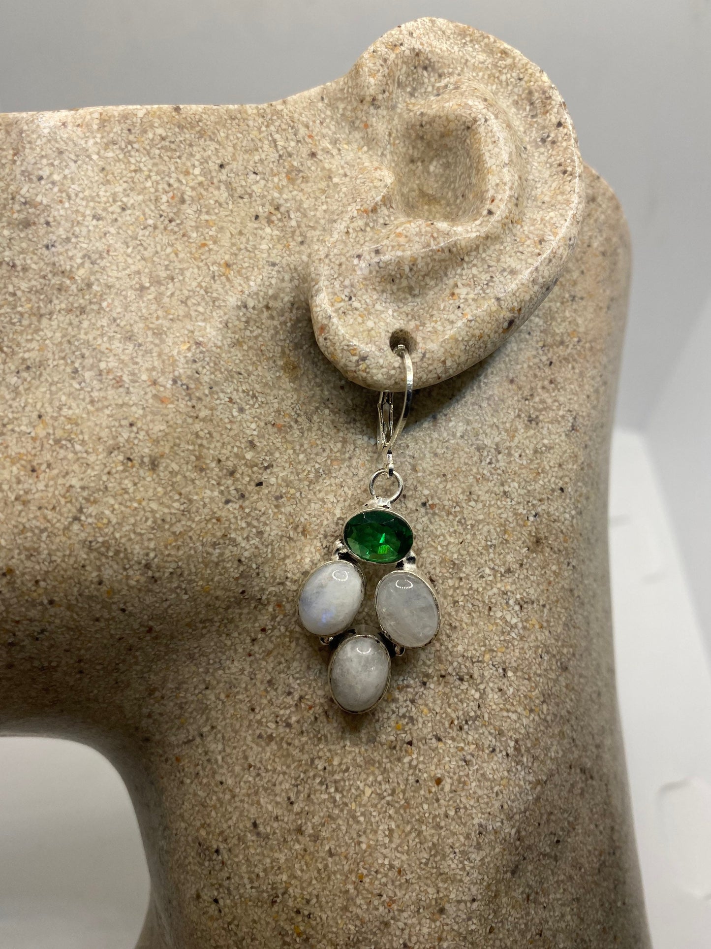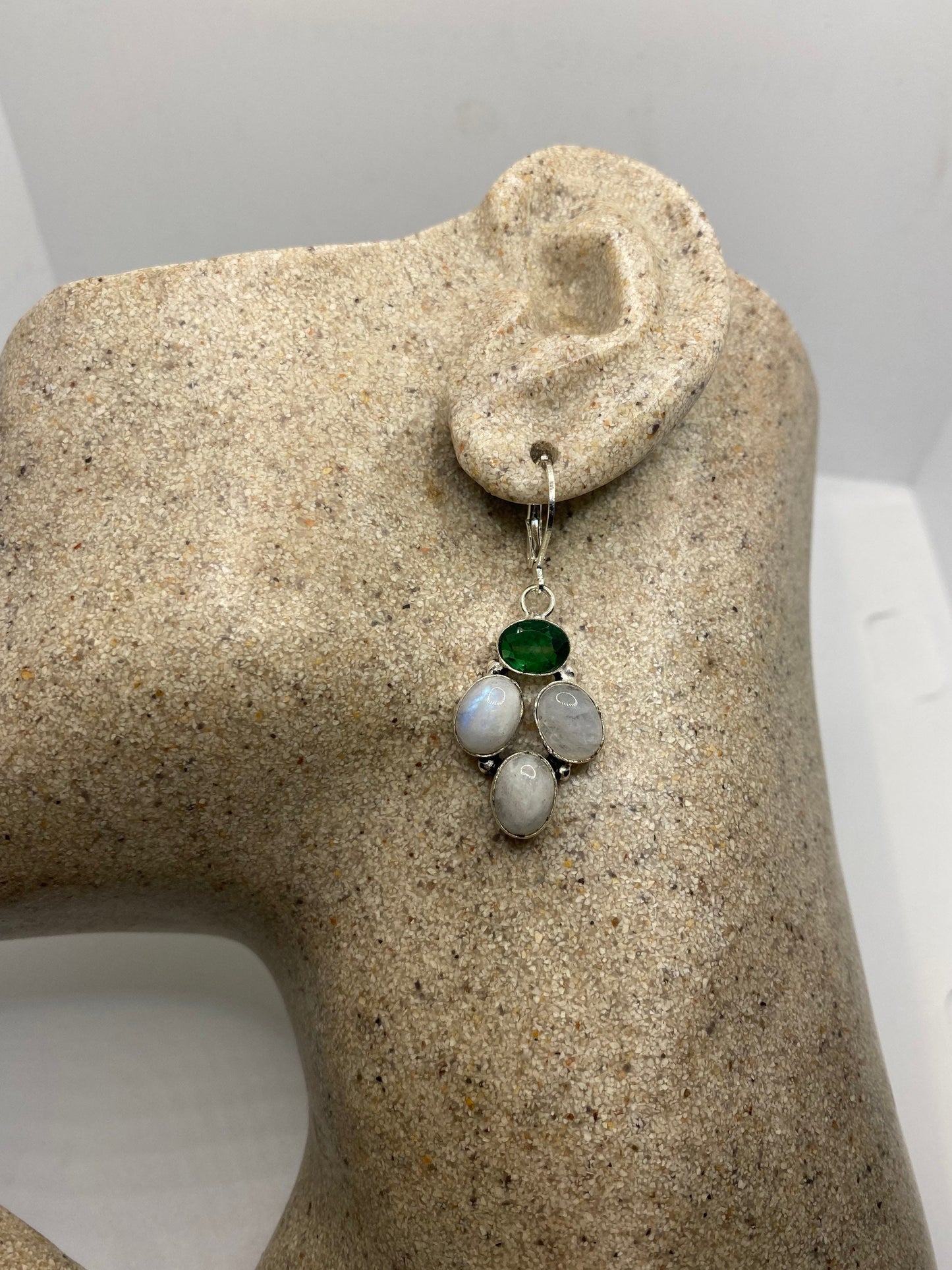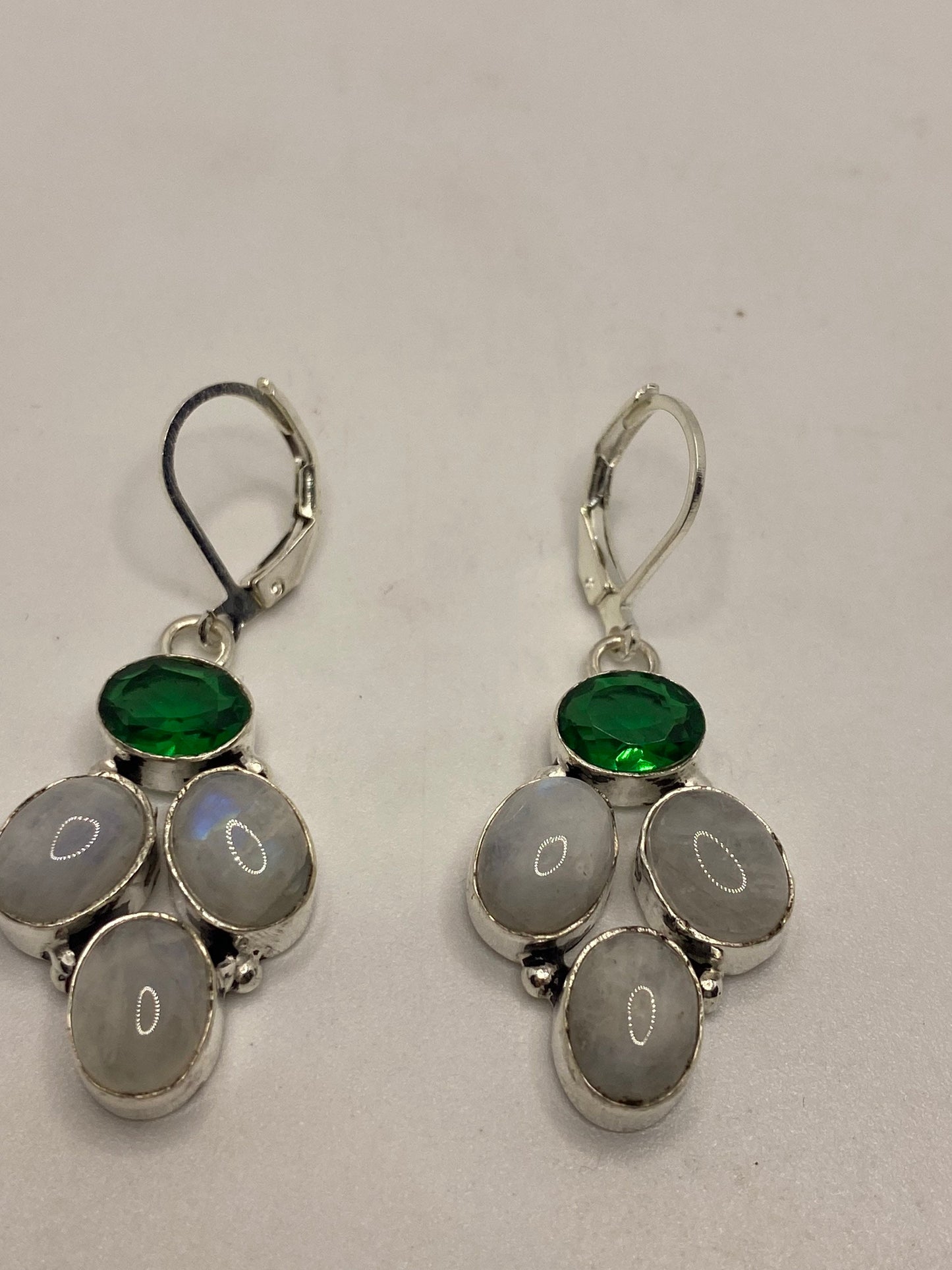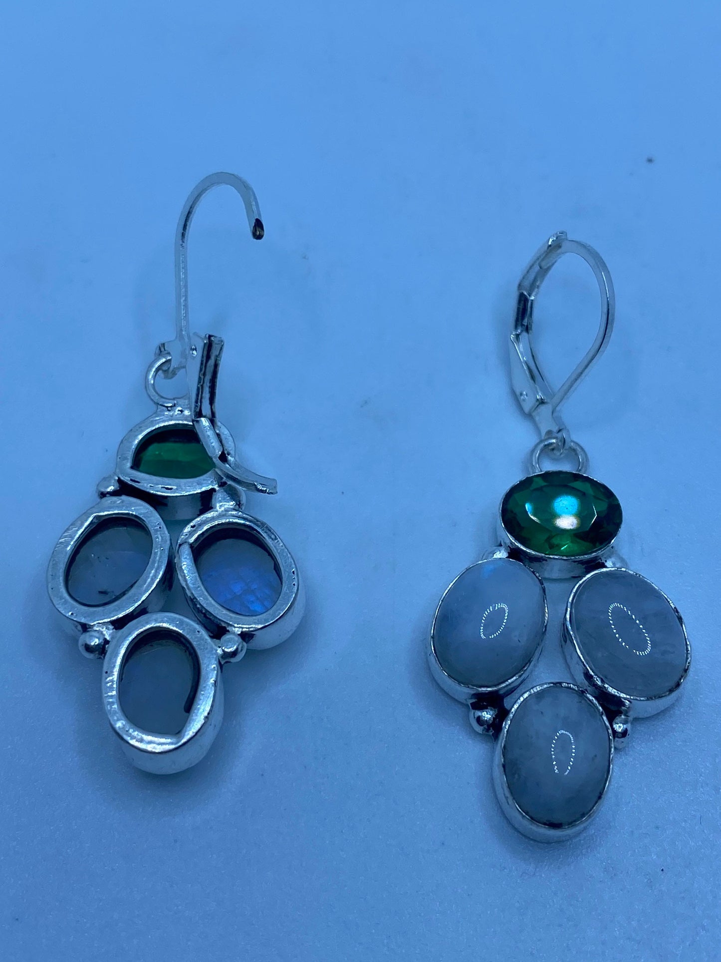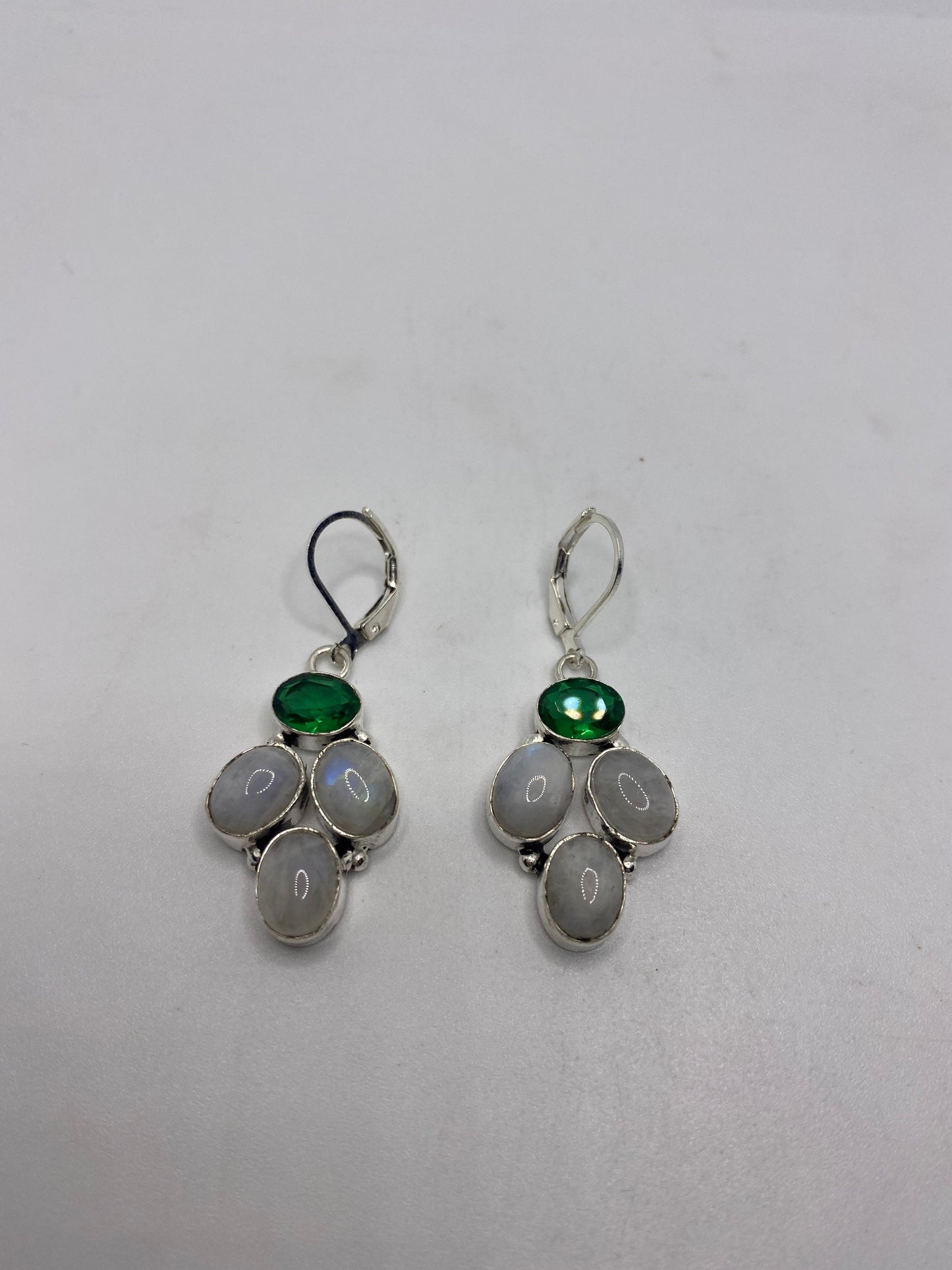 Vintage Rainbow Moonstone Sterling Silver Lever Back Dangle Earrings