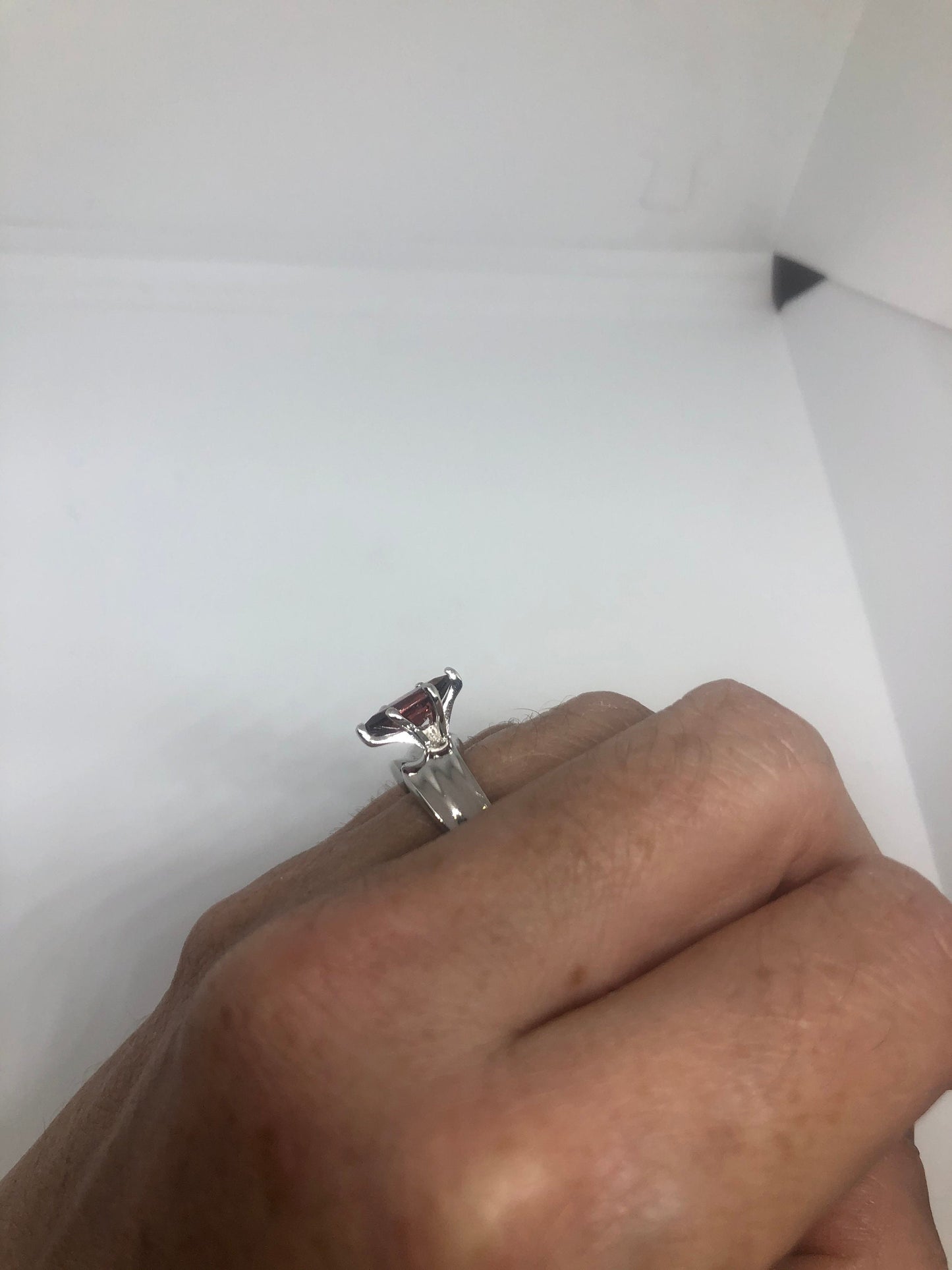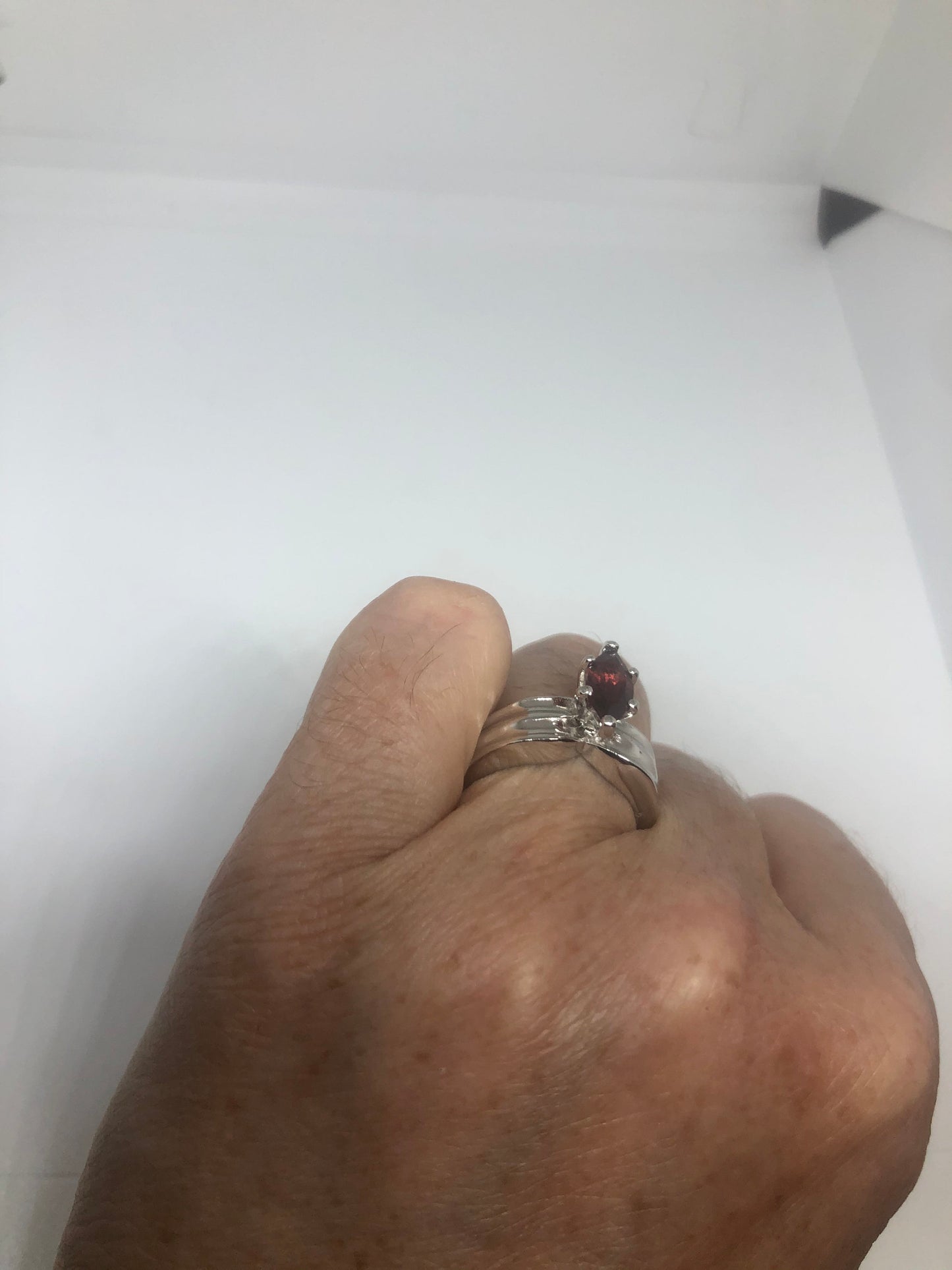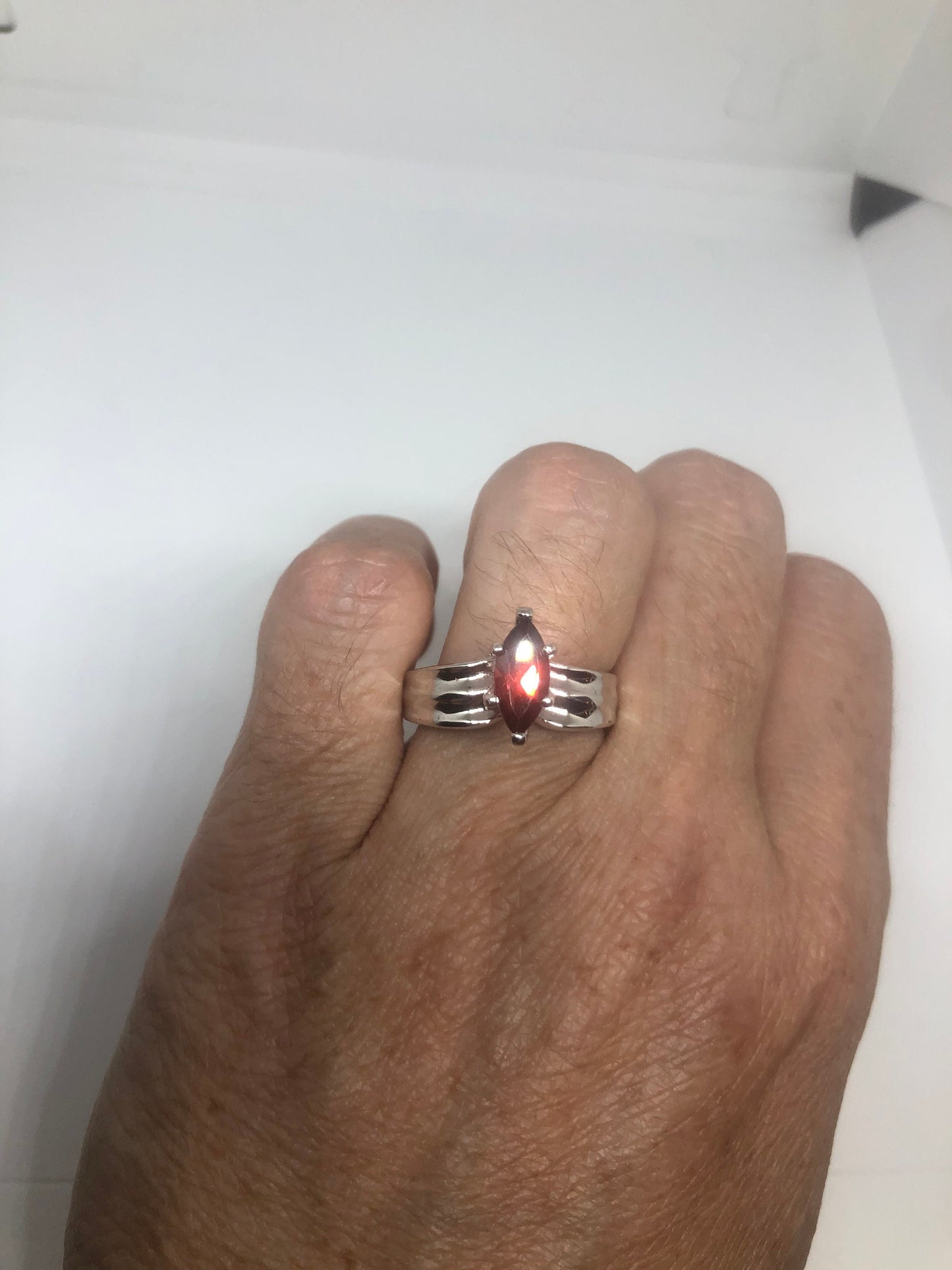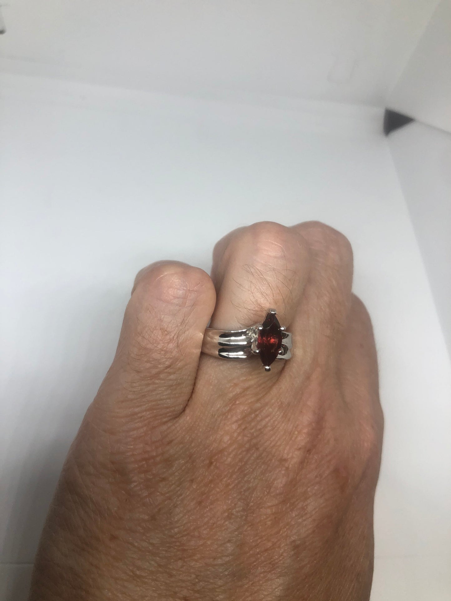 Vintage Red Bohemian Garnet Ring 925 Sterling Silver Cocktail Statement