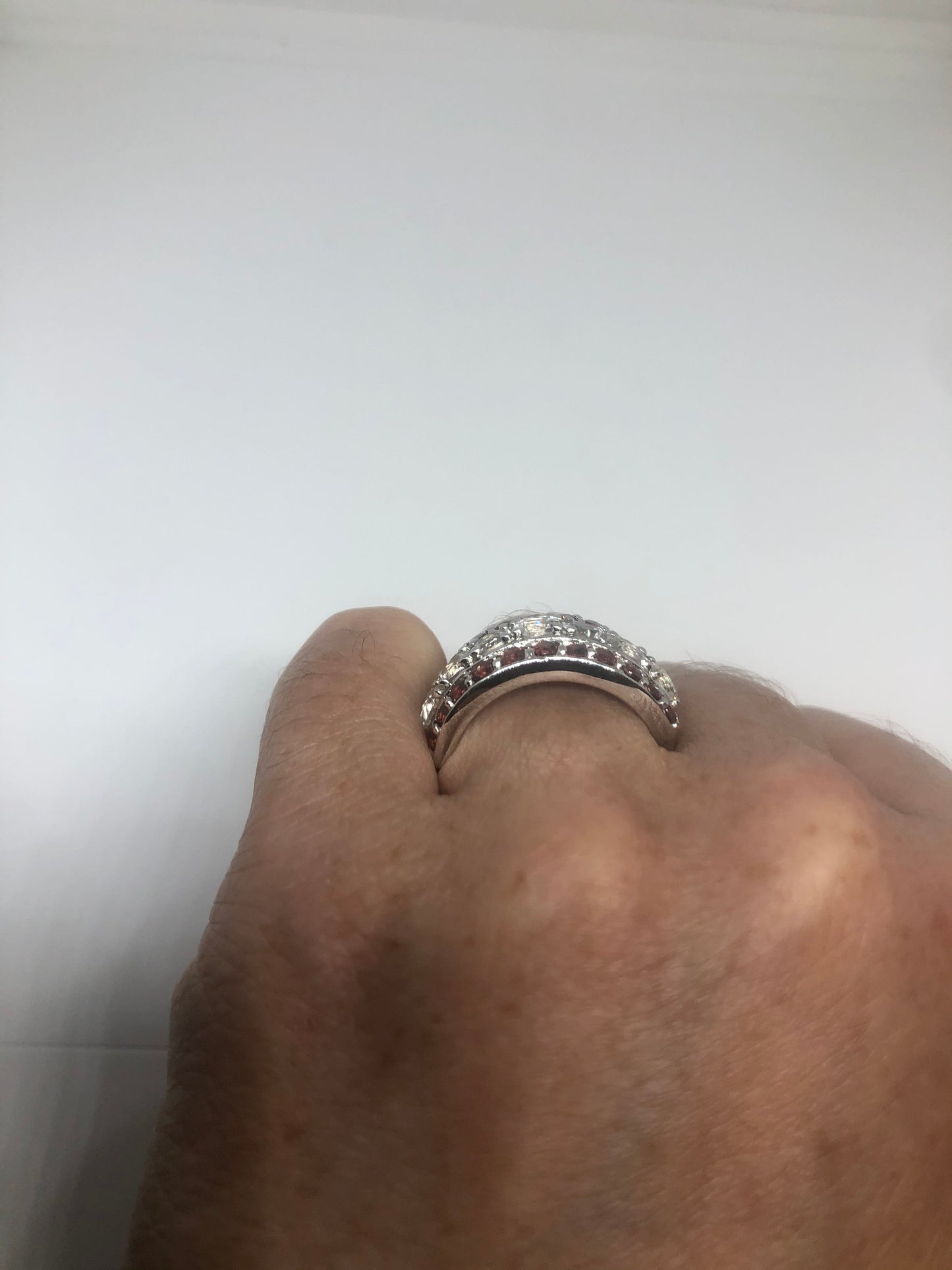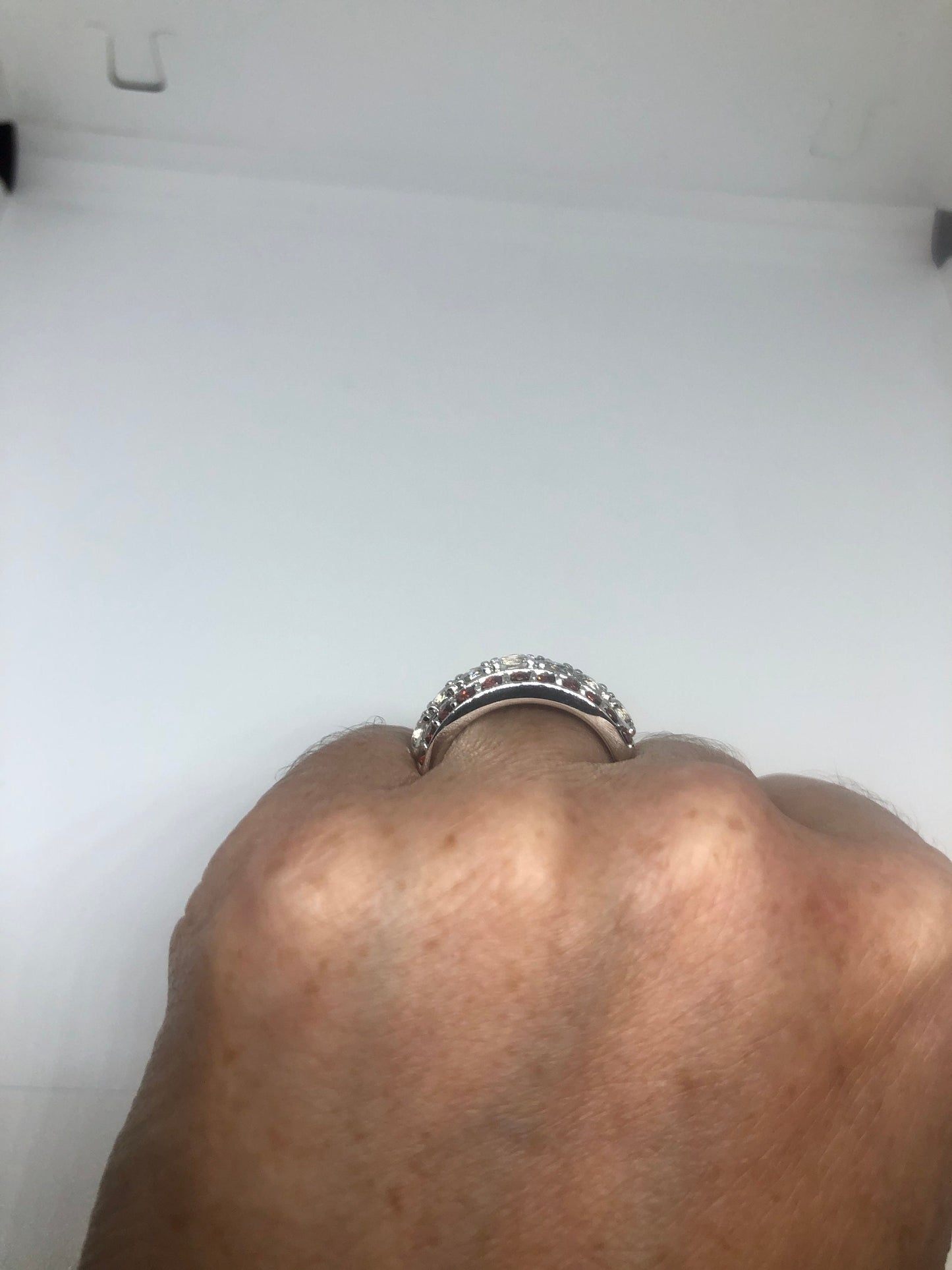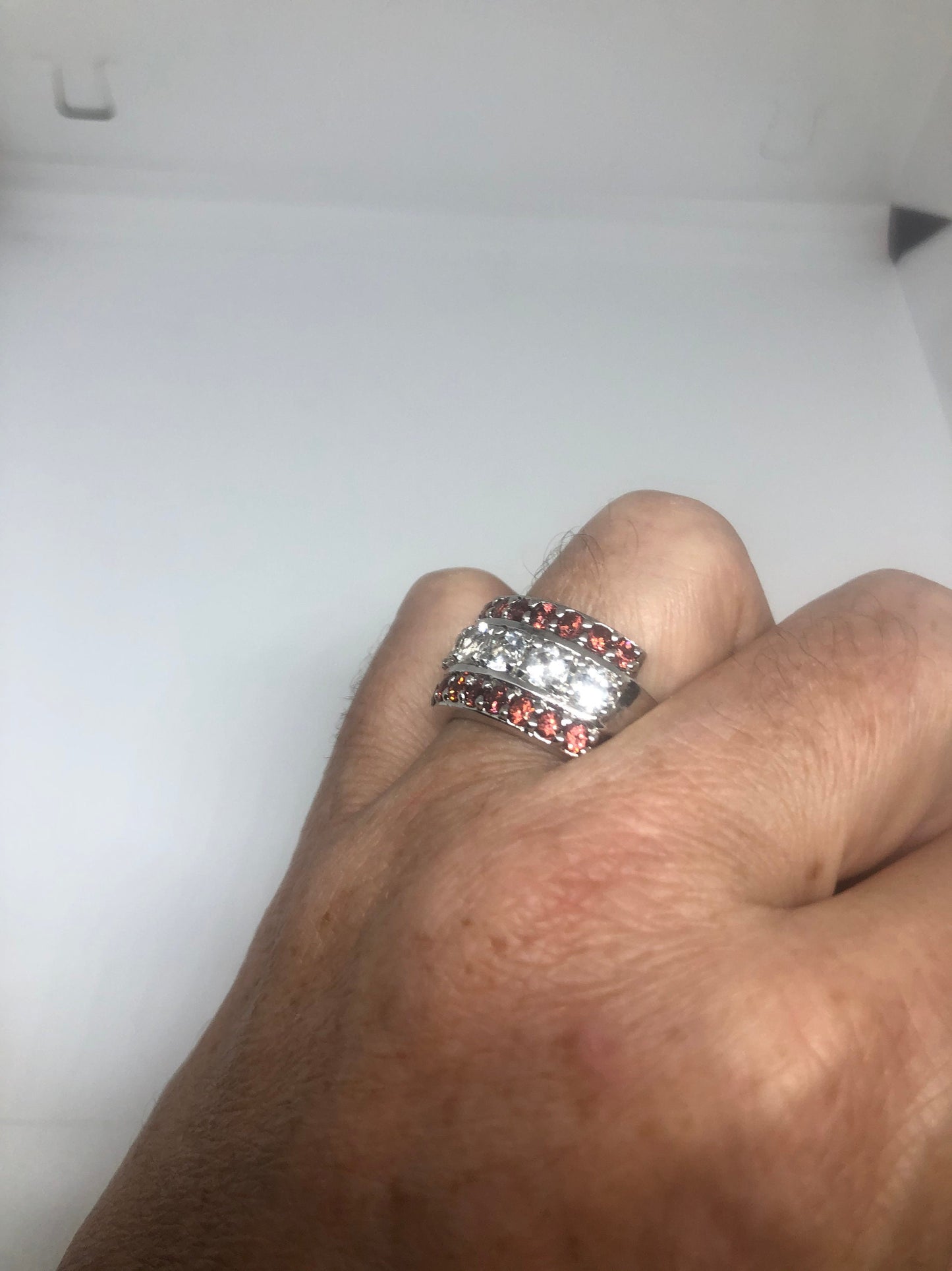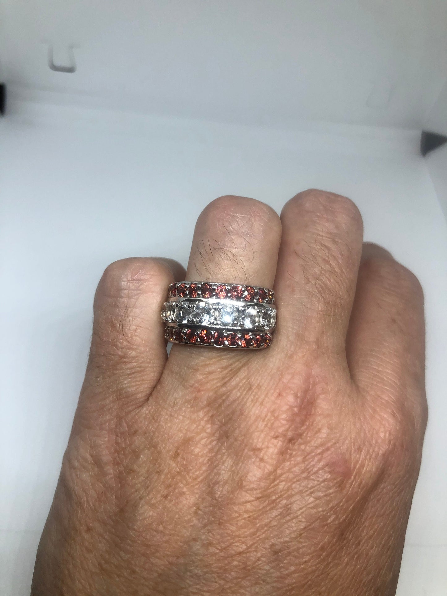 Vintage Red Bohemian Garnet Ring White Sapphire 925 Sterling Silver Cocktail Statement