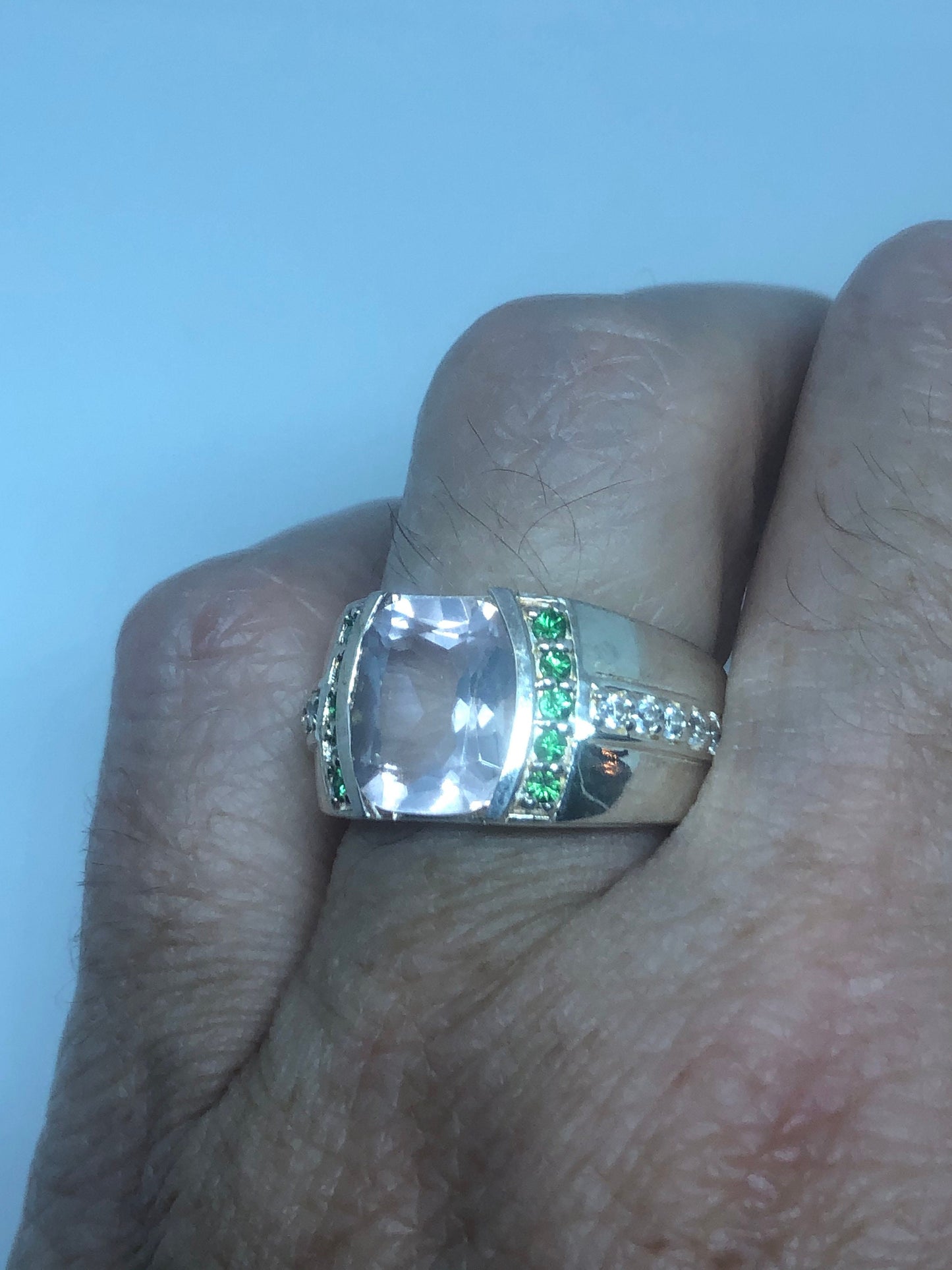 Vintage Rose Quartz 925 Sterling Silver Ring