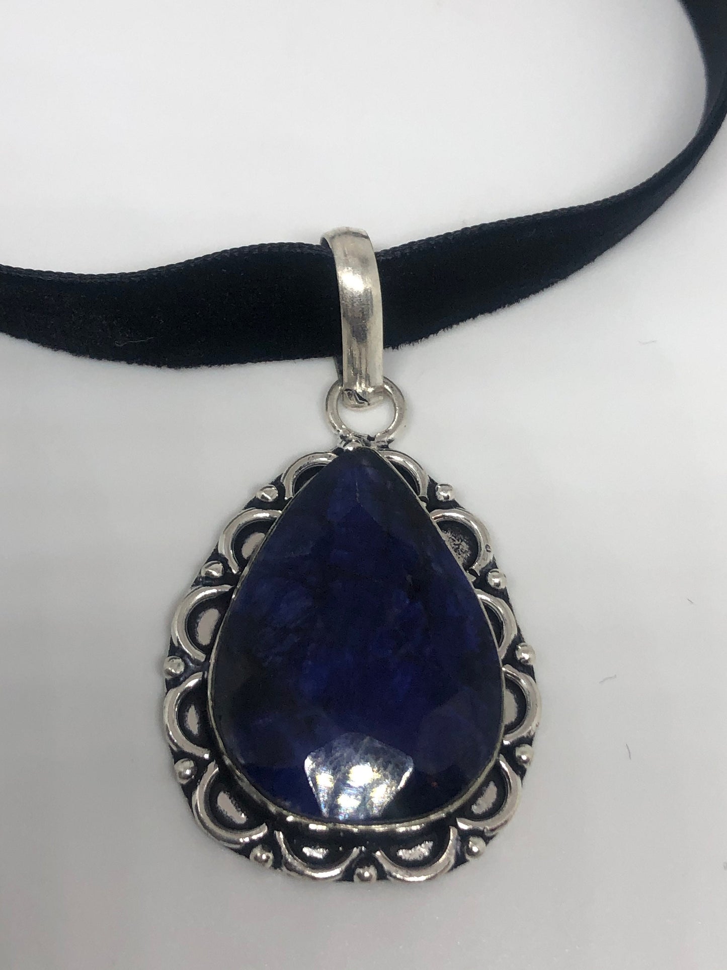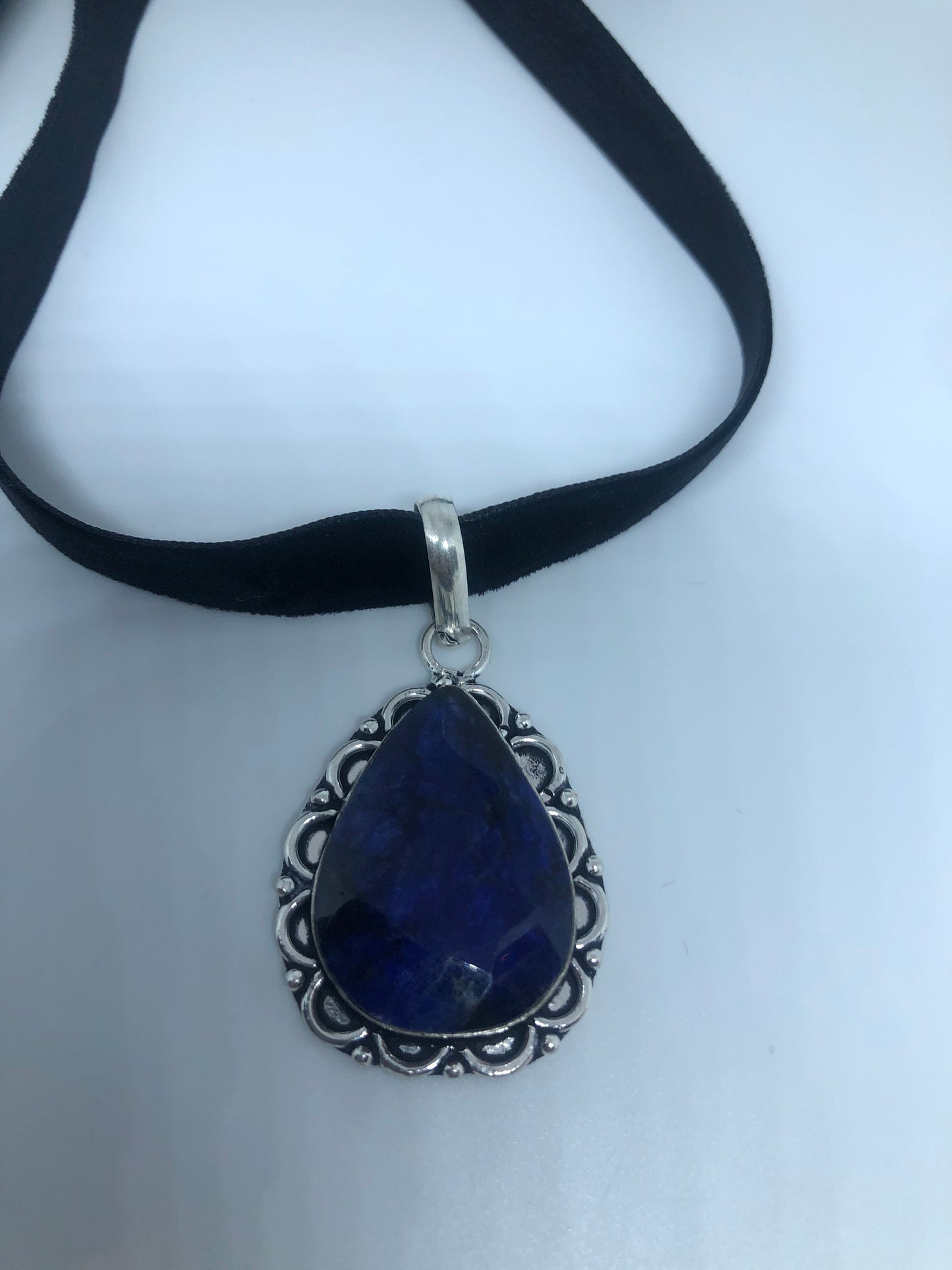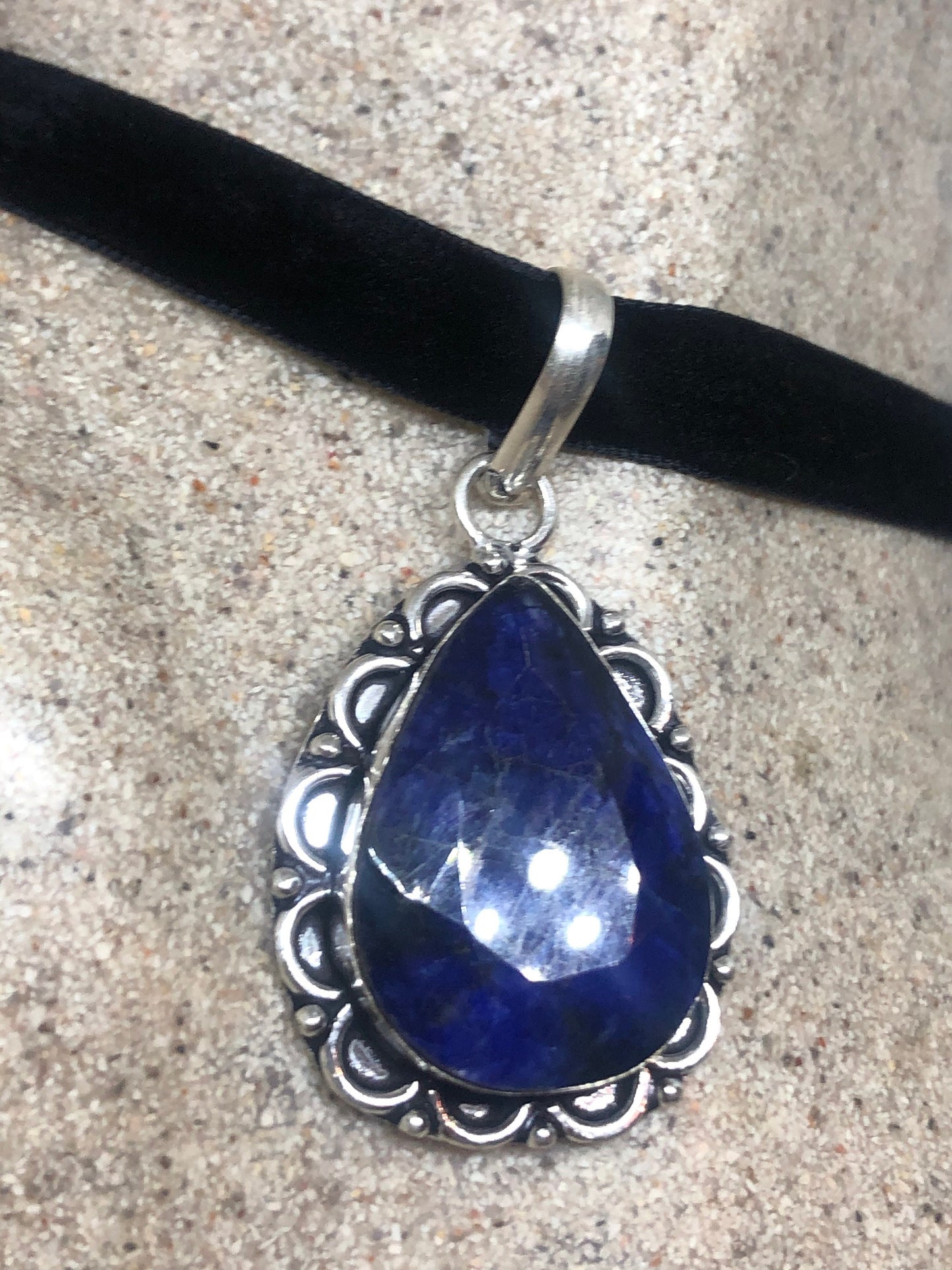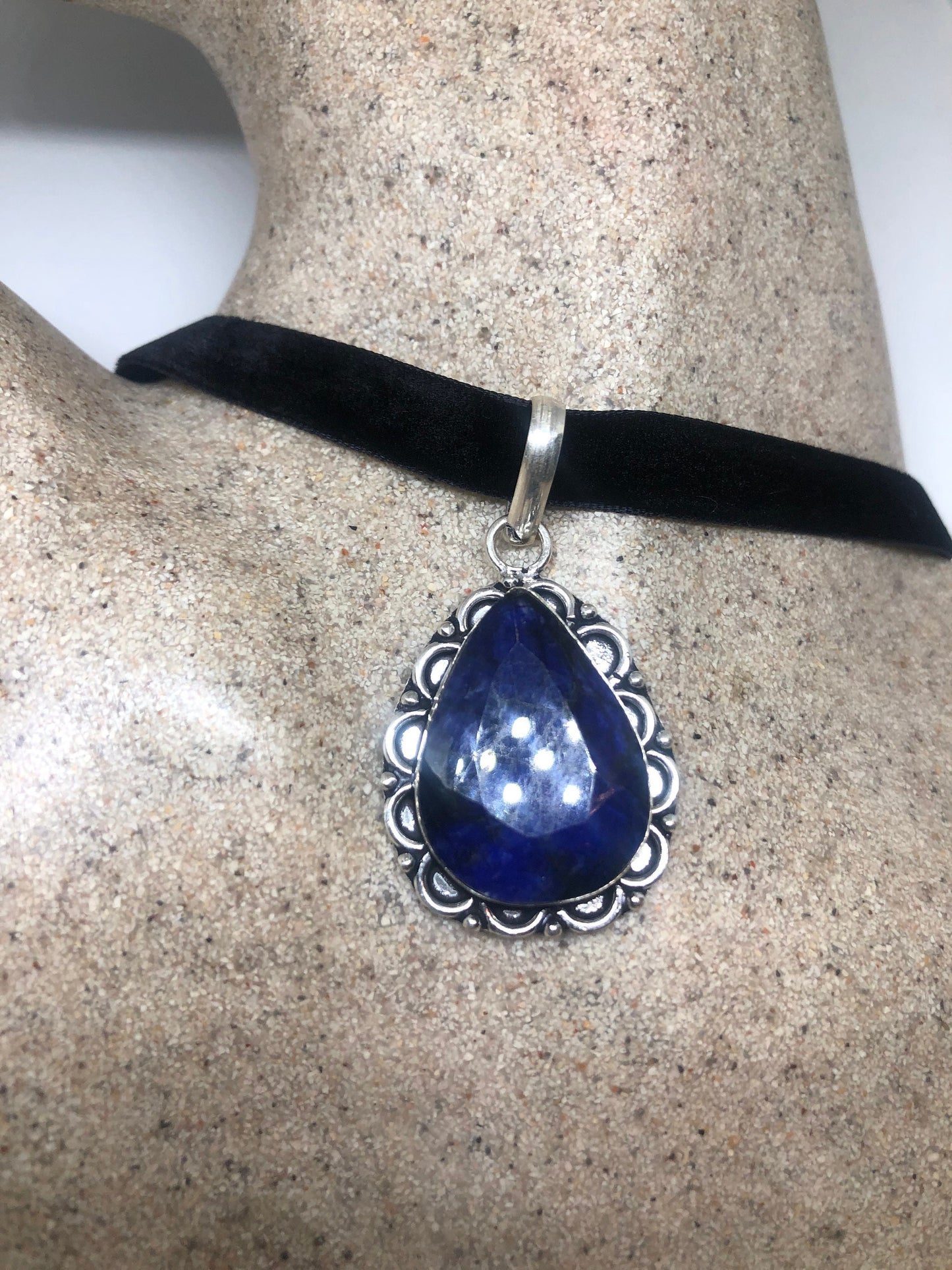 Vintage Tibetan Blue Lapis Lazuli Boho Choker Black Velevet Ribbon Necklace.
