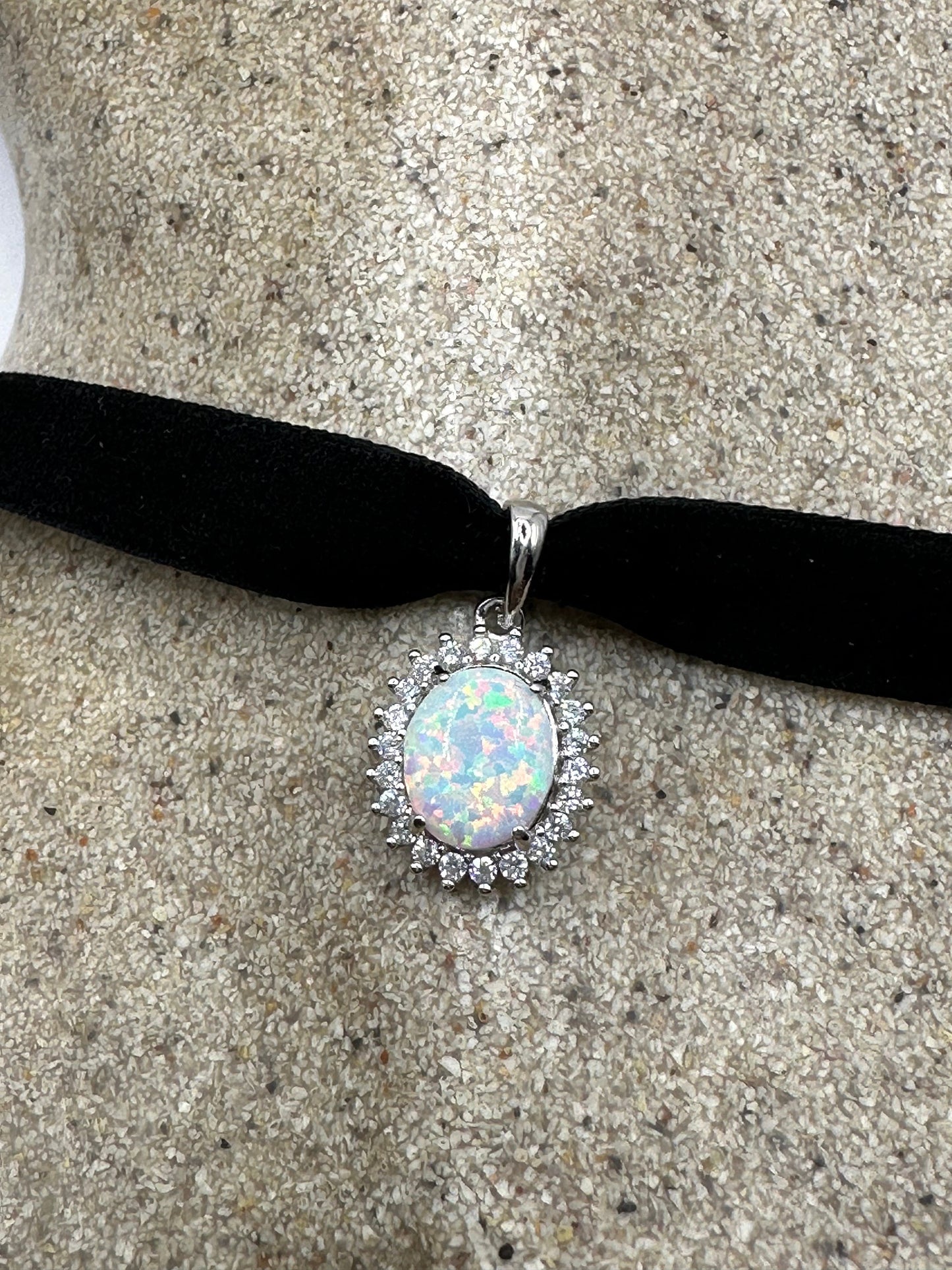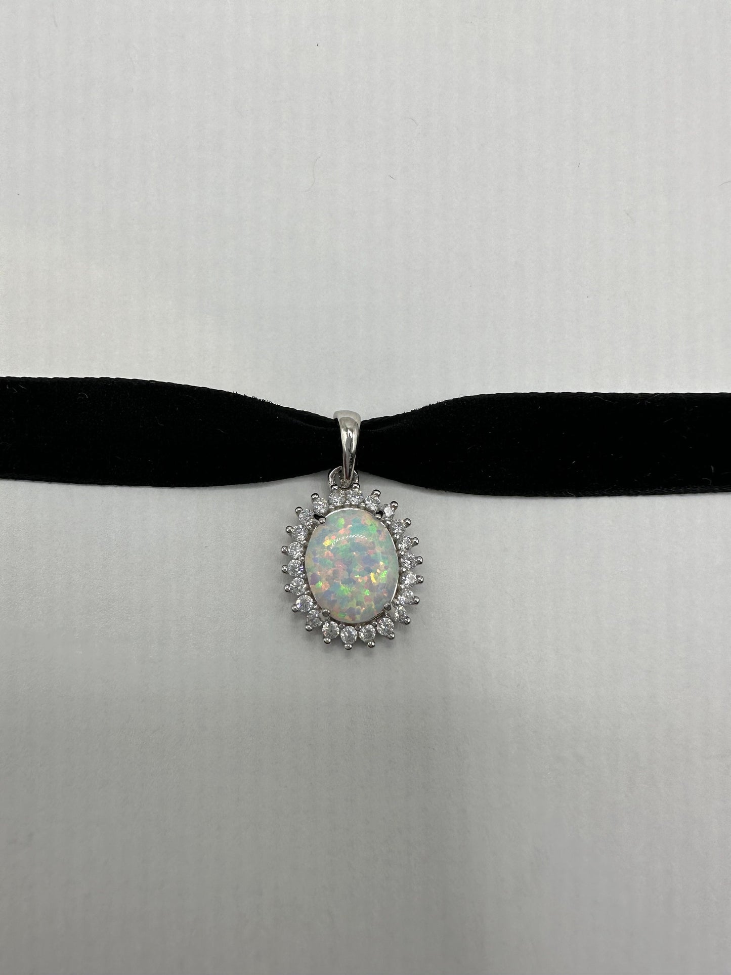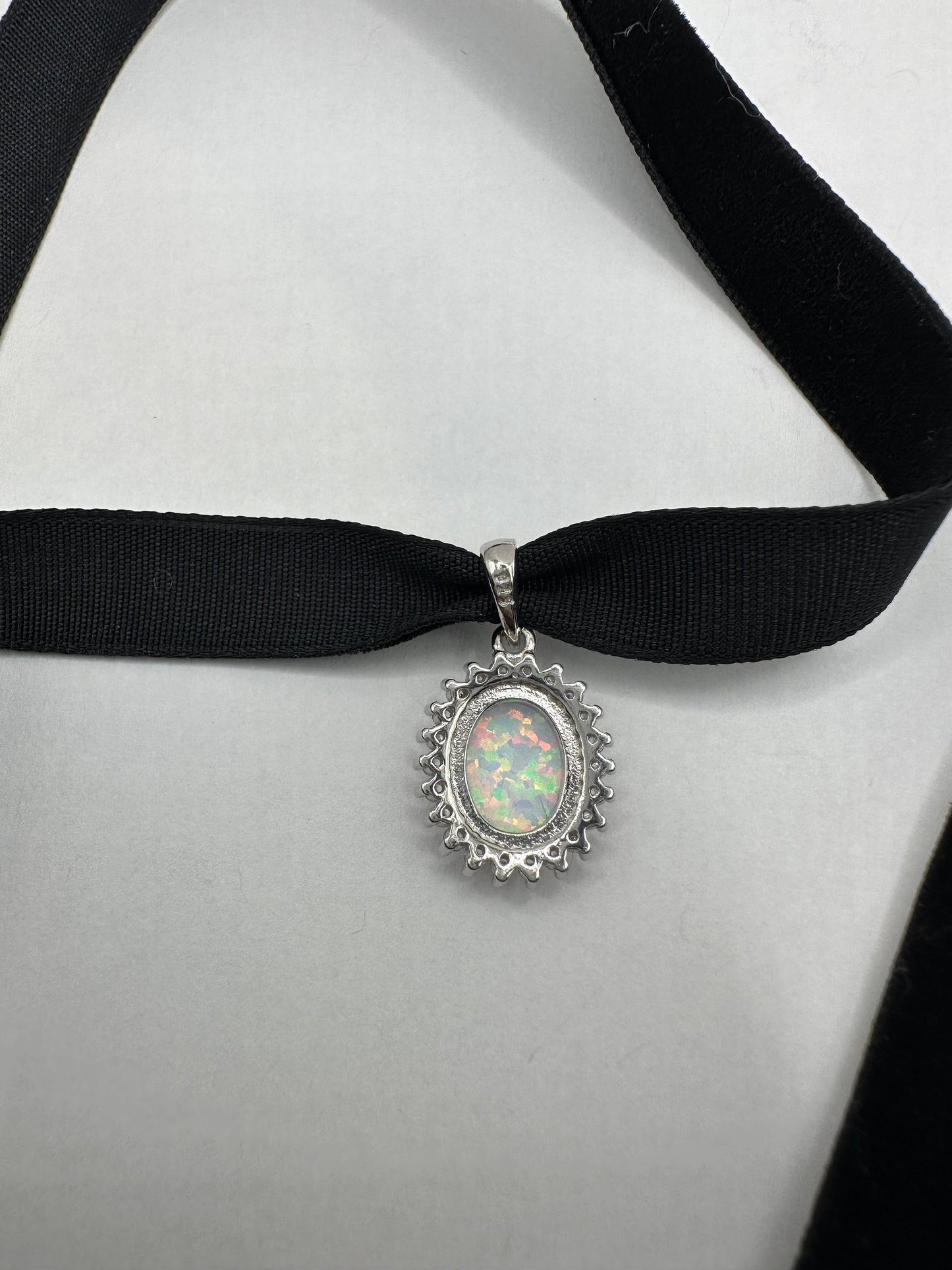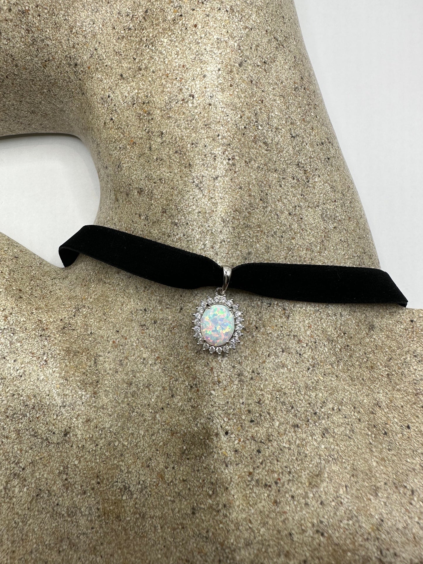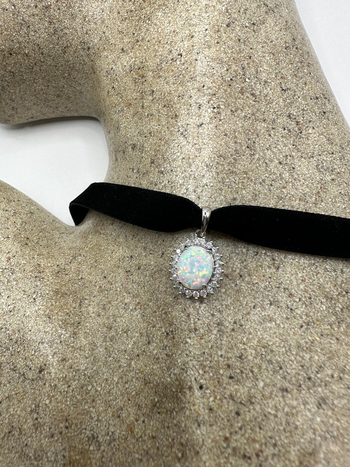 Vintage White Opal Choker 925 Sterling Silver Pendant Necklace