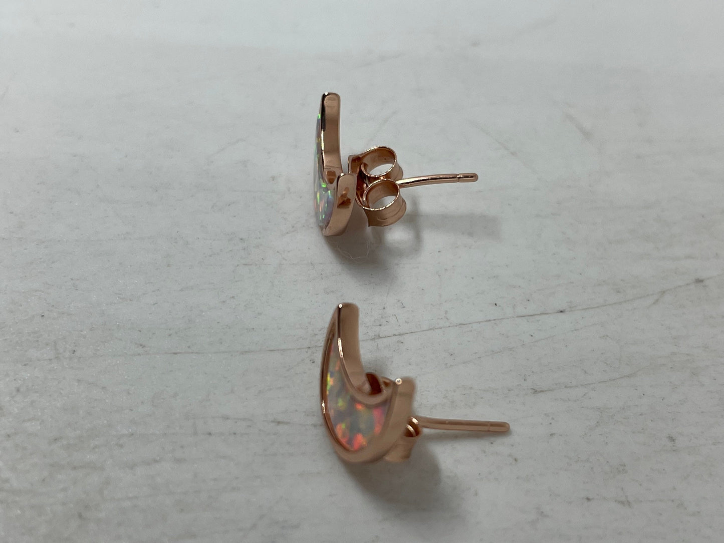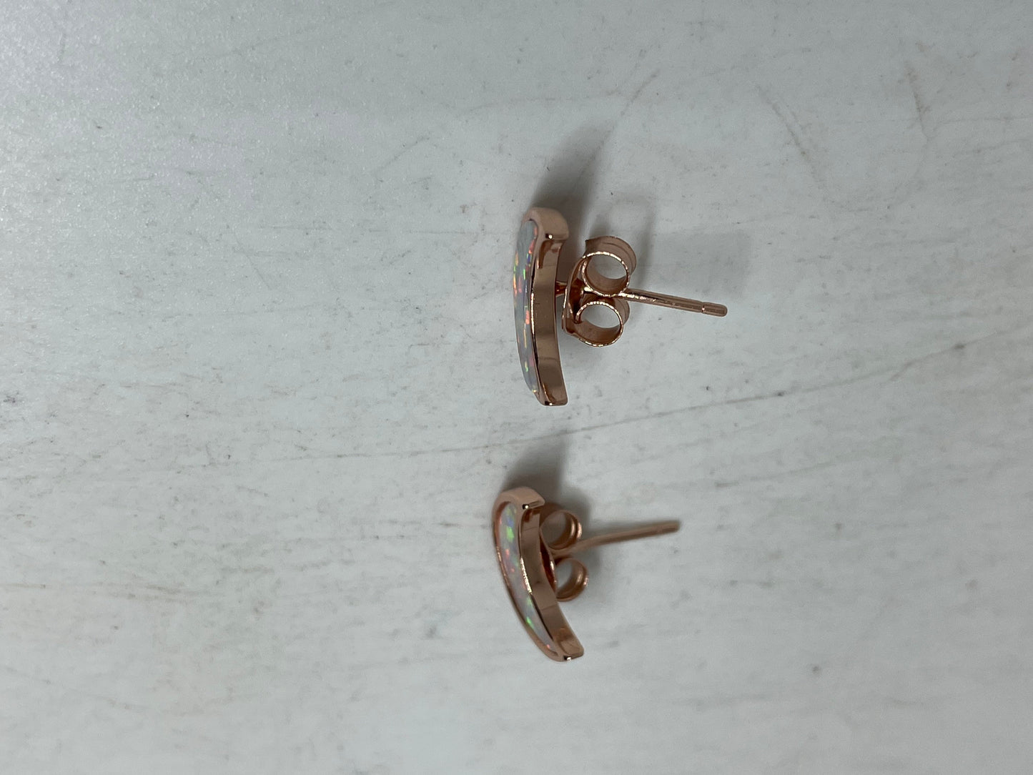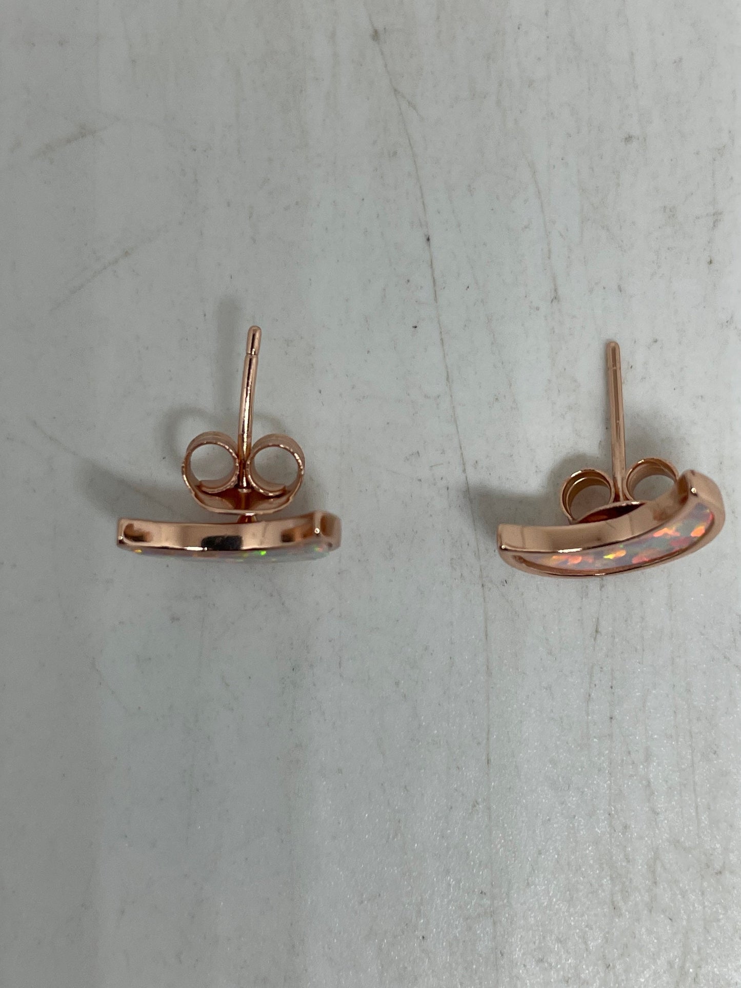 Vintage White Opal Earrings Rose Golden 925 Sterling Silver Stud Button