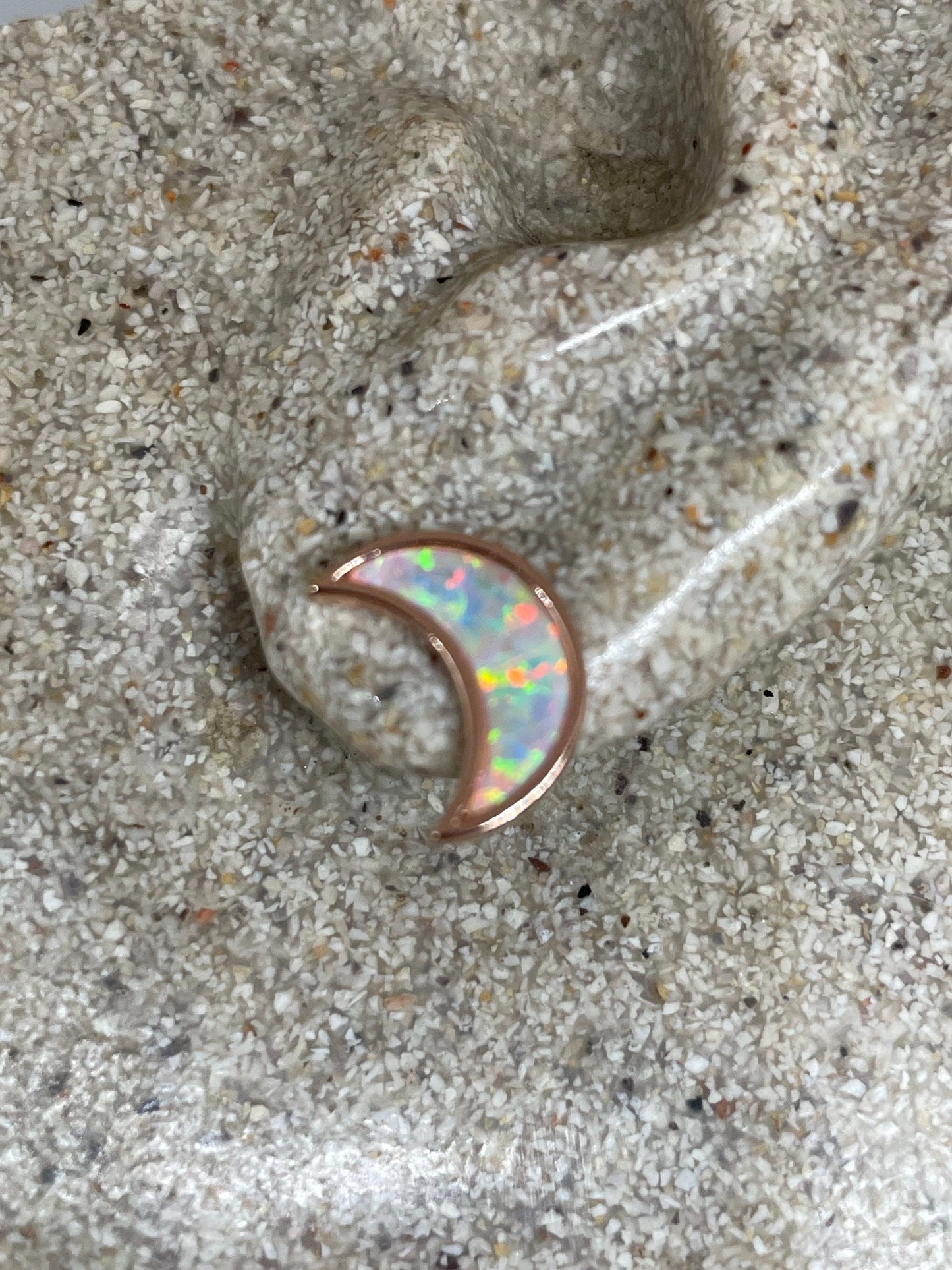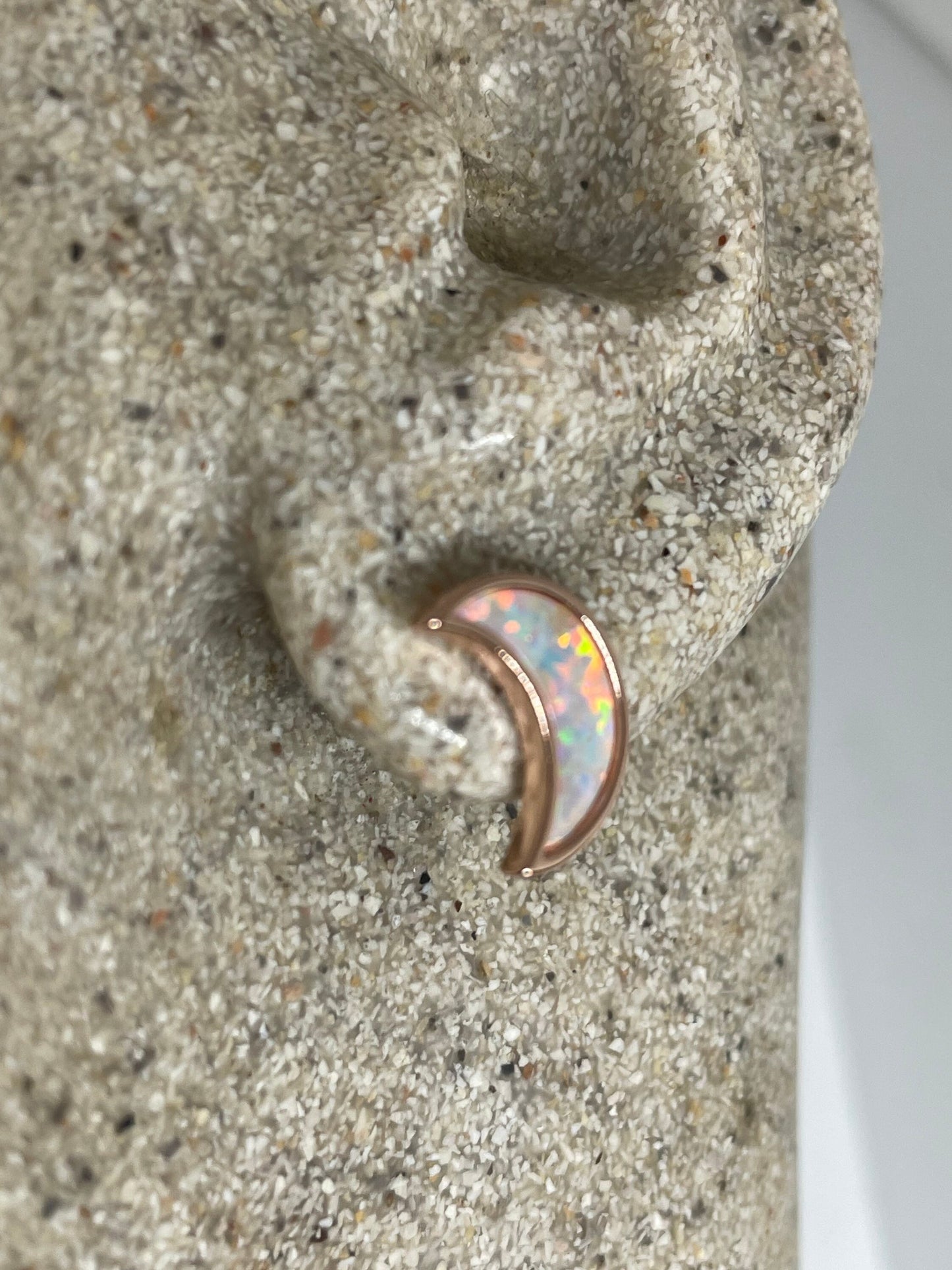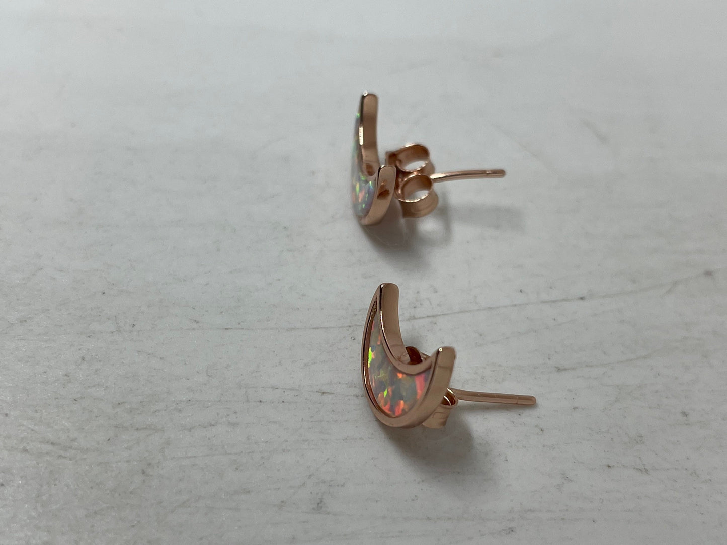 Vintage White Opal Earrings Rose Golden 925 Sterling Silver Stud Button