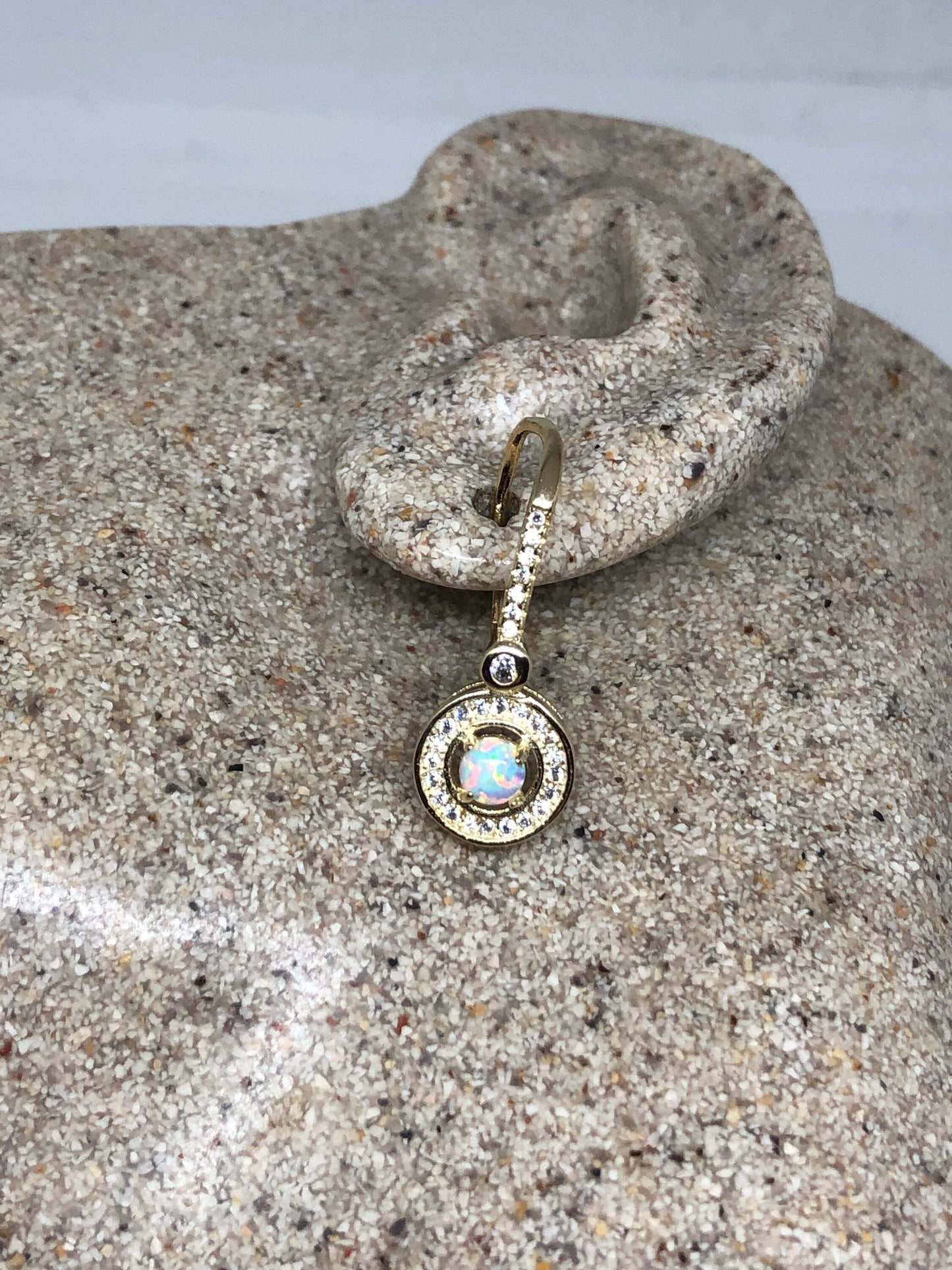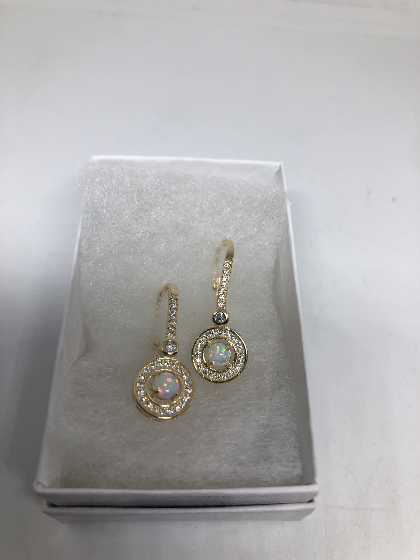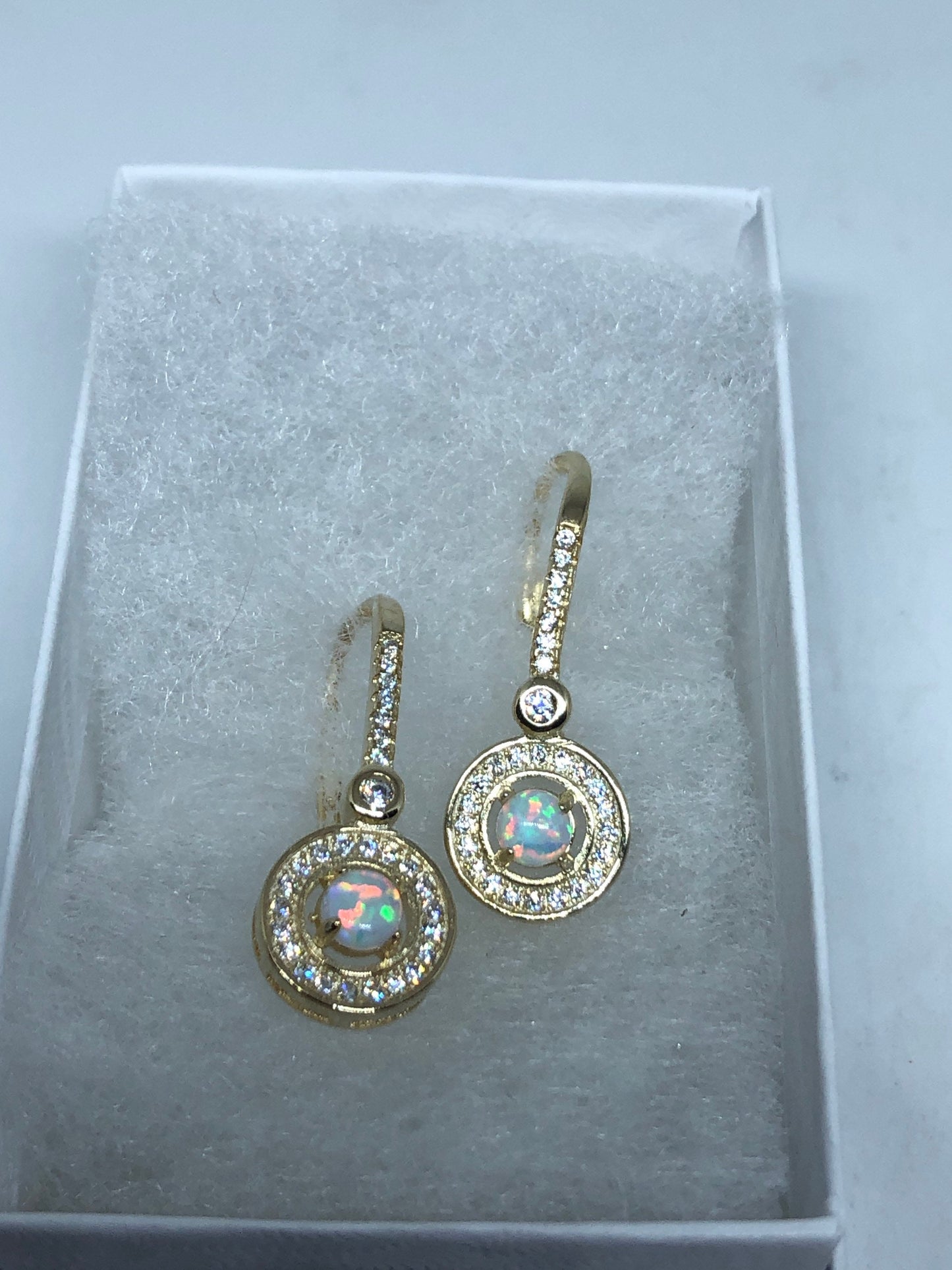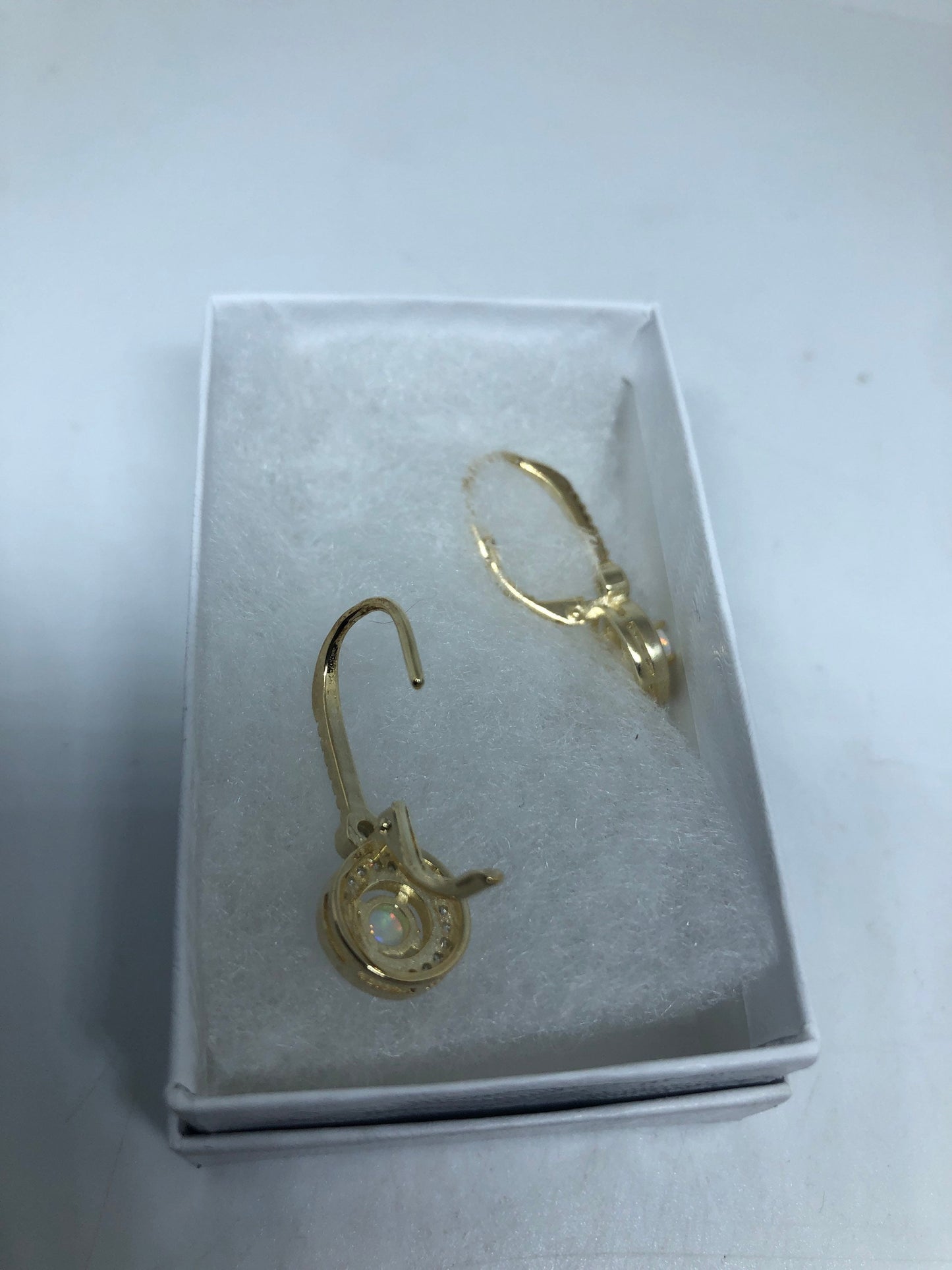Vintage White Opal Earrings white sapphire 925 Sterling Silver lever back dangle