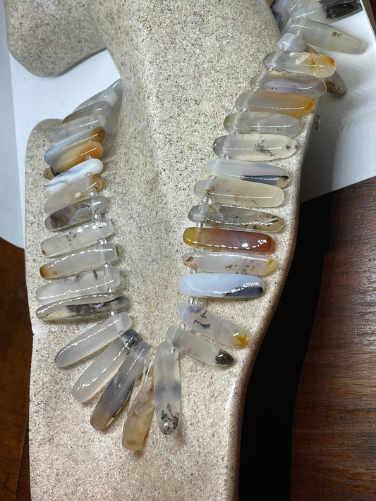 35-38 Inch Hand Knoted Vintage Mixed color White Onyz agate beaded Necklace