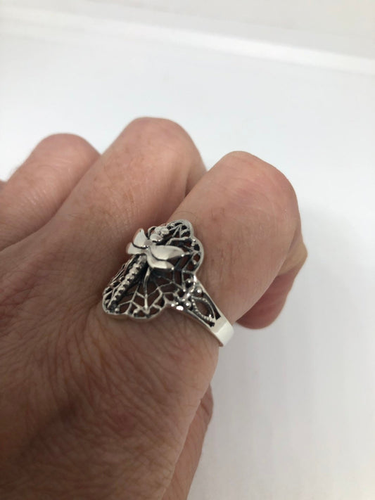 Vintage Dragonfly Ring 925 Sterling Silver Antiqued Filigree