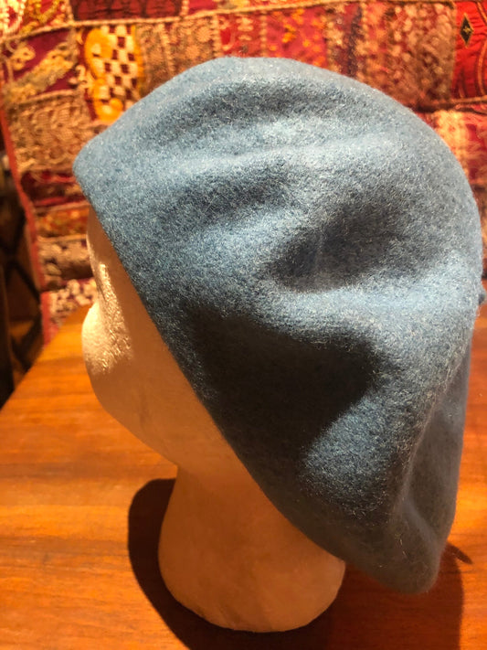 Vintage Teal Blue Wool Felt 11 in Beret Hat