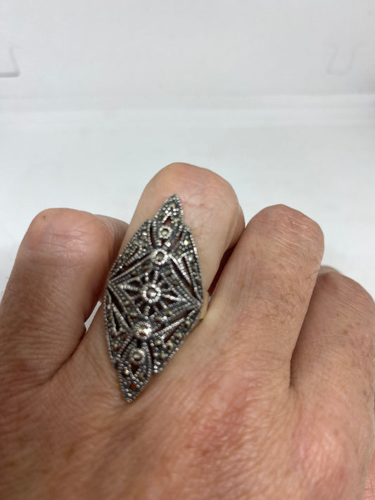 Vintage Swiss Marcasite Setting 925 Sterling Silver Cocktail Ring