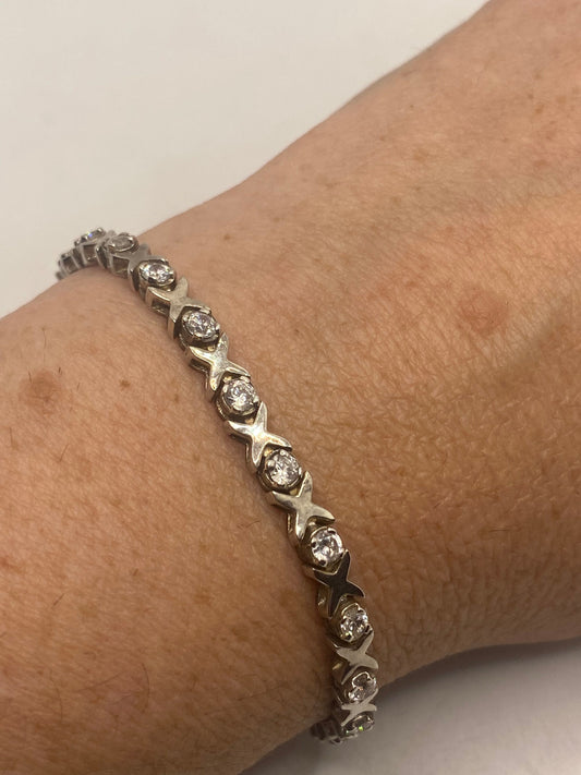 Vintage White Sapphire Bracelet 925 Sterling Silver Tennis