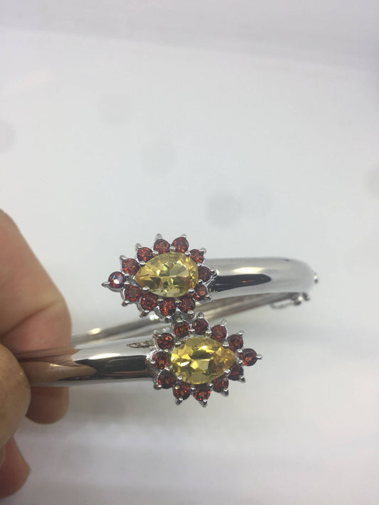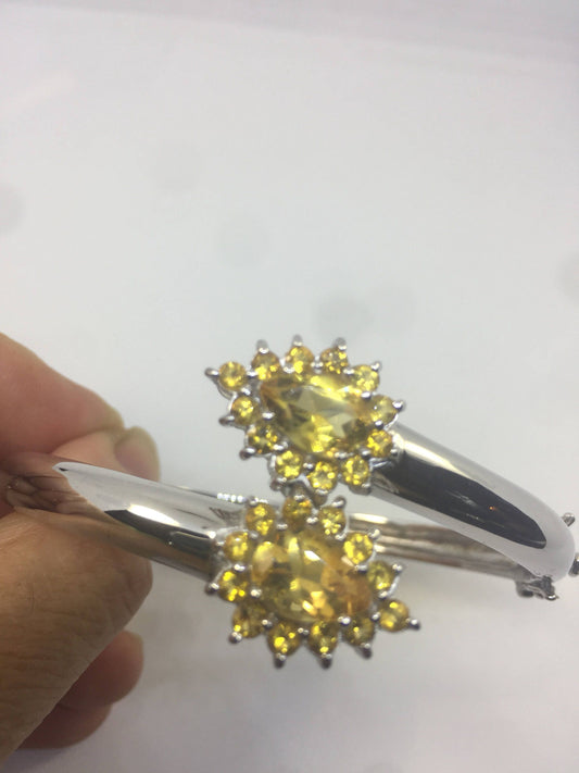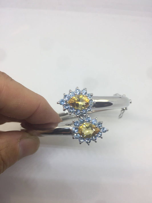 Genuine Citrine Gemstone 925 Sterling Silver Bangle Bracelet