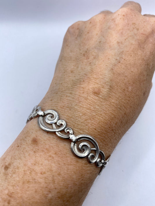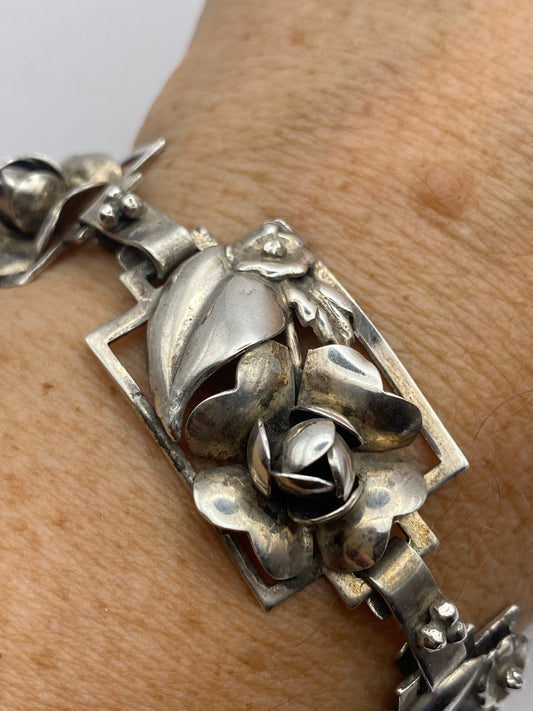 Vintage 925 Sterling Silver Filigree Flower Bracelet