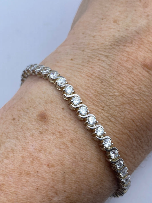 Vintage White Sapphire 925 Sterling Silver Tennis Bracelet