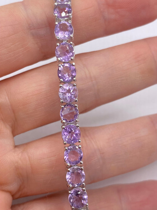Vintage Amethyst Tennis Bracelet 925 Sterling Silver Purple Deco