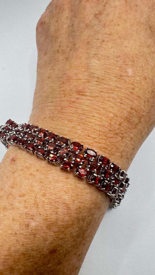Vintage Bohemian Red Garnet Bracelet 925 Sterling Silver