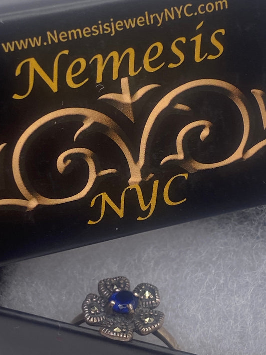 Vintage Blue Iolite Marcasite 925 Sterling Silver Ring Size 7