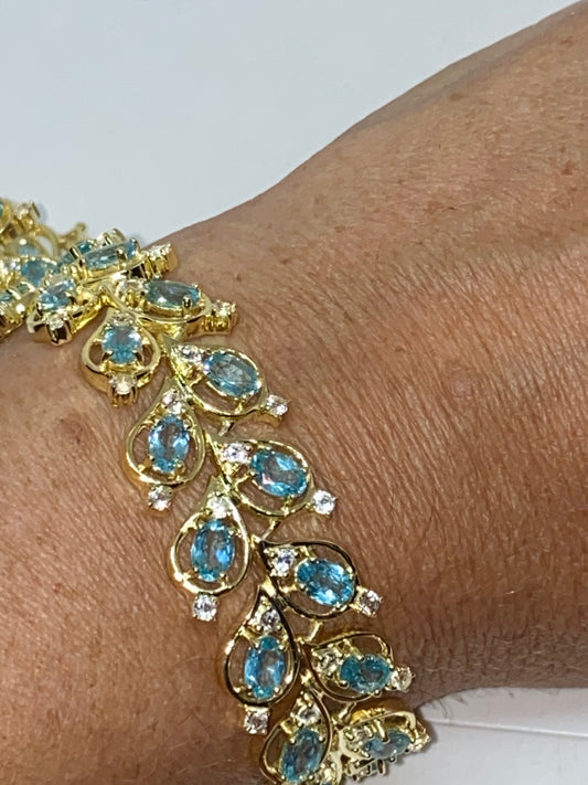 Vintage Blue Topaz Golden 925 Sterling Silver Tennis Bracelet